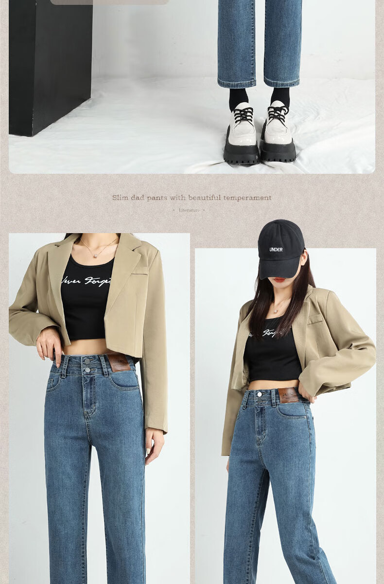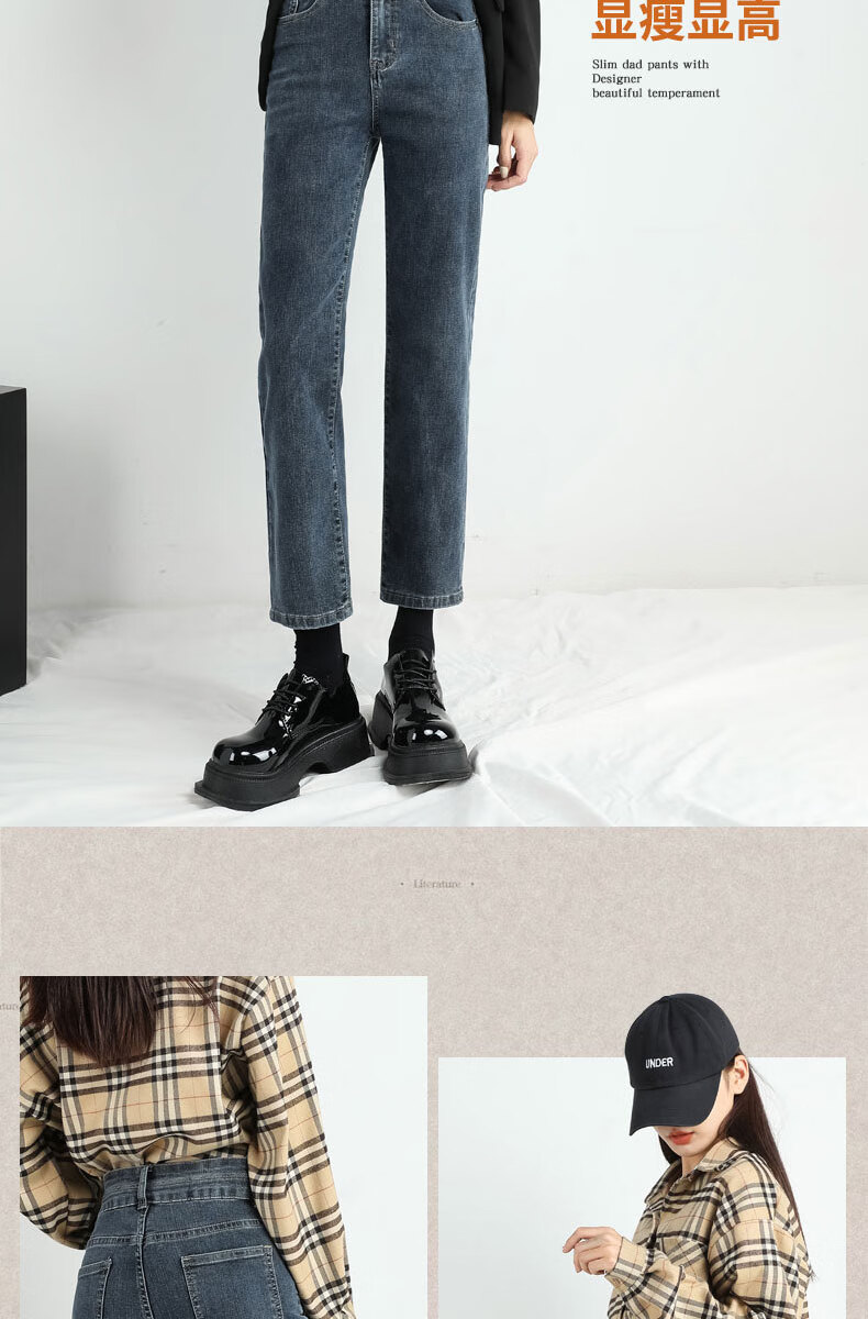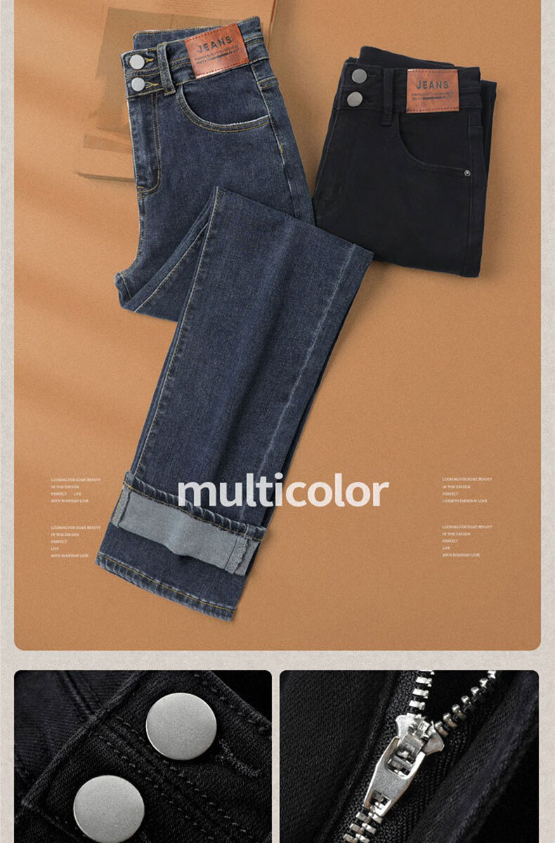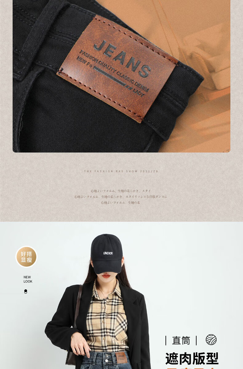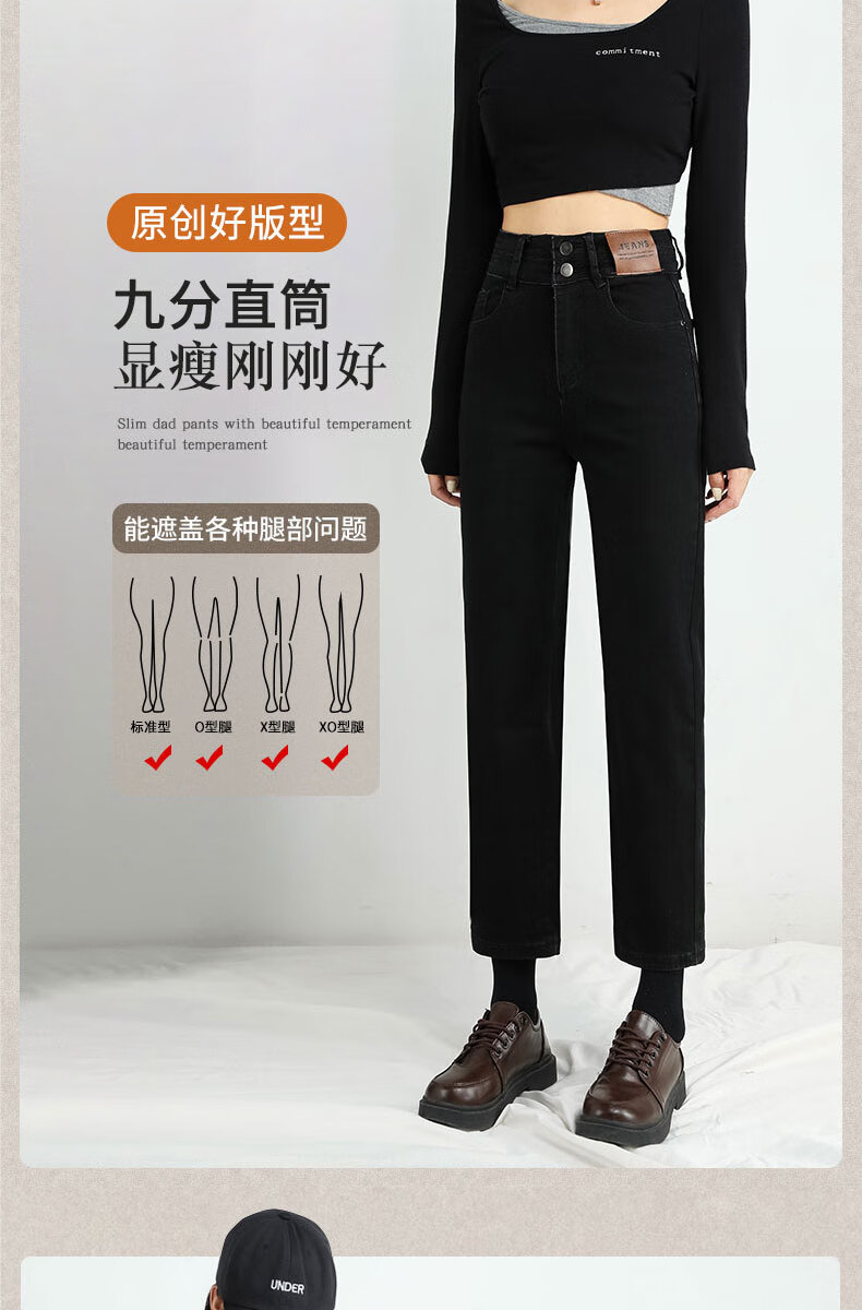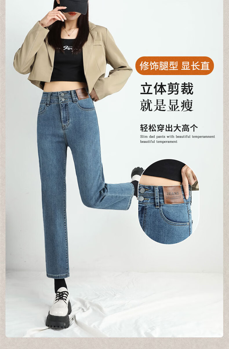 浪莎牛仔裤女春秋季高腰宽松垂感直筒裤女九分窄版烟管裤子女士牛仔裤 黑色 -春秋款 L (推荐110-125斤)