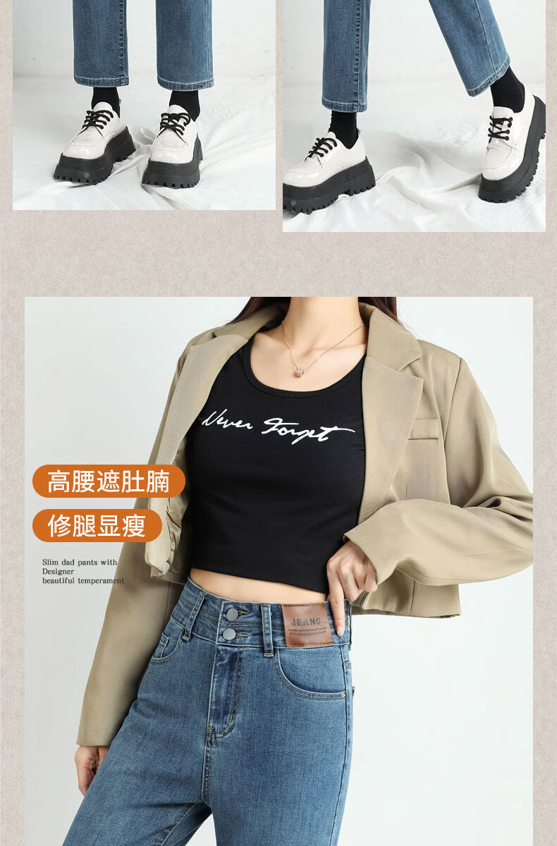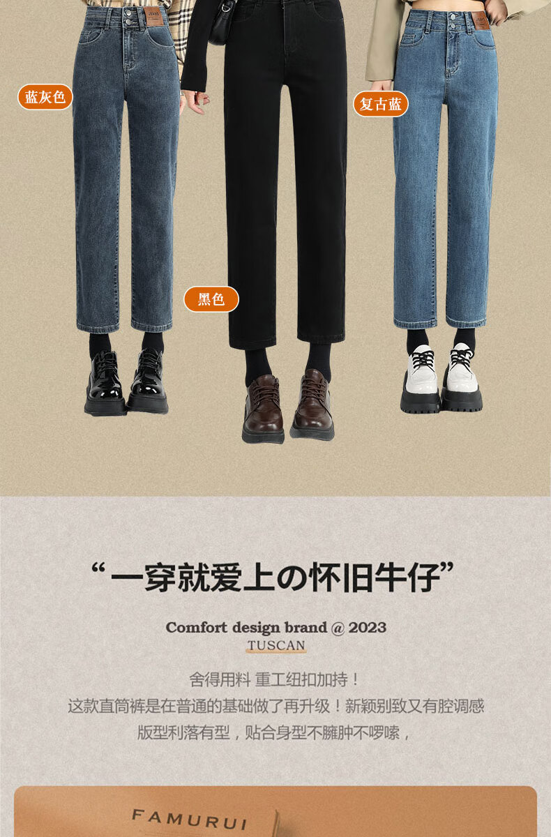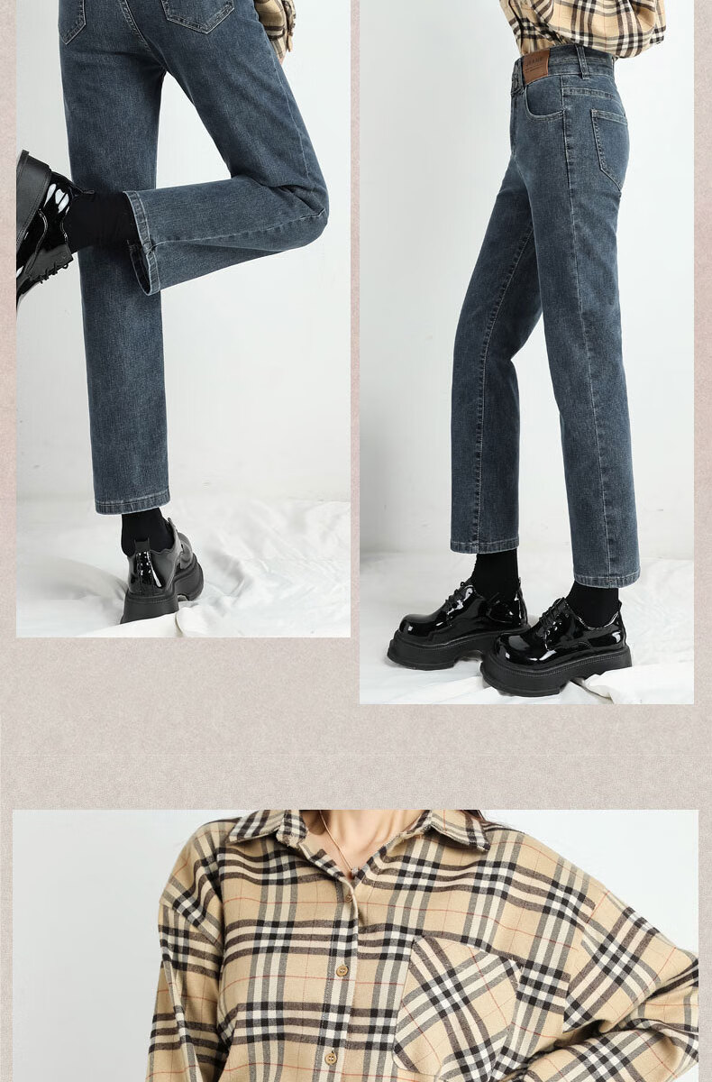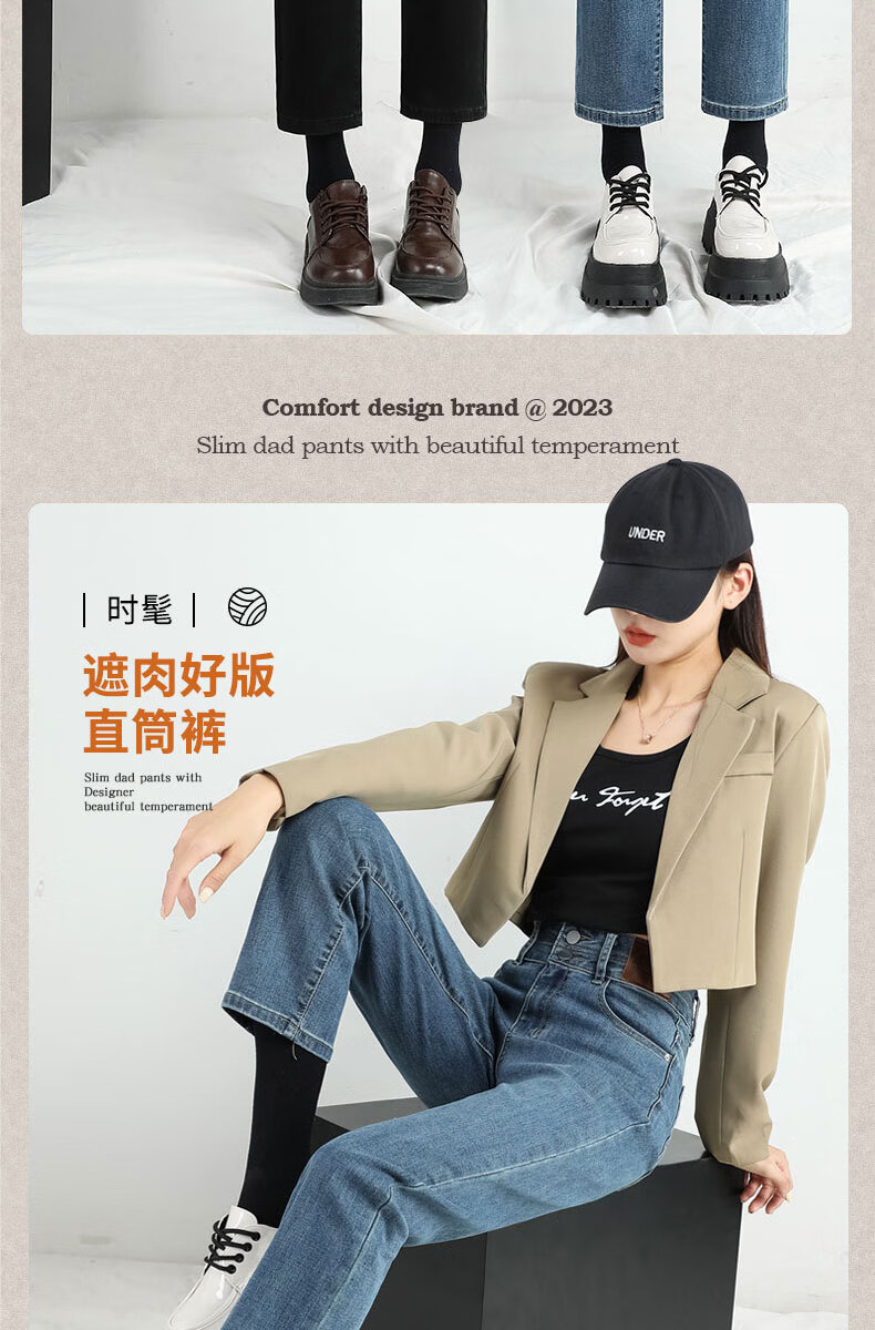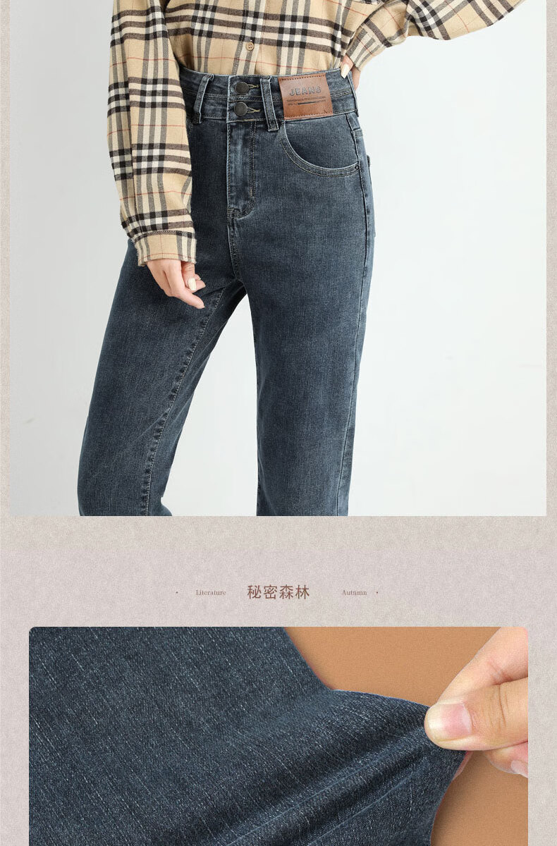浪莎牛仔裤女春秋季高腰宽松垂感直筒裤女九分窄版烟管裤子女士牛仔裤 黑色 -春秋款 L (推荐110-125斤)