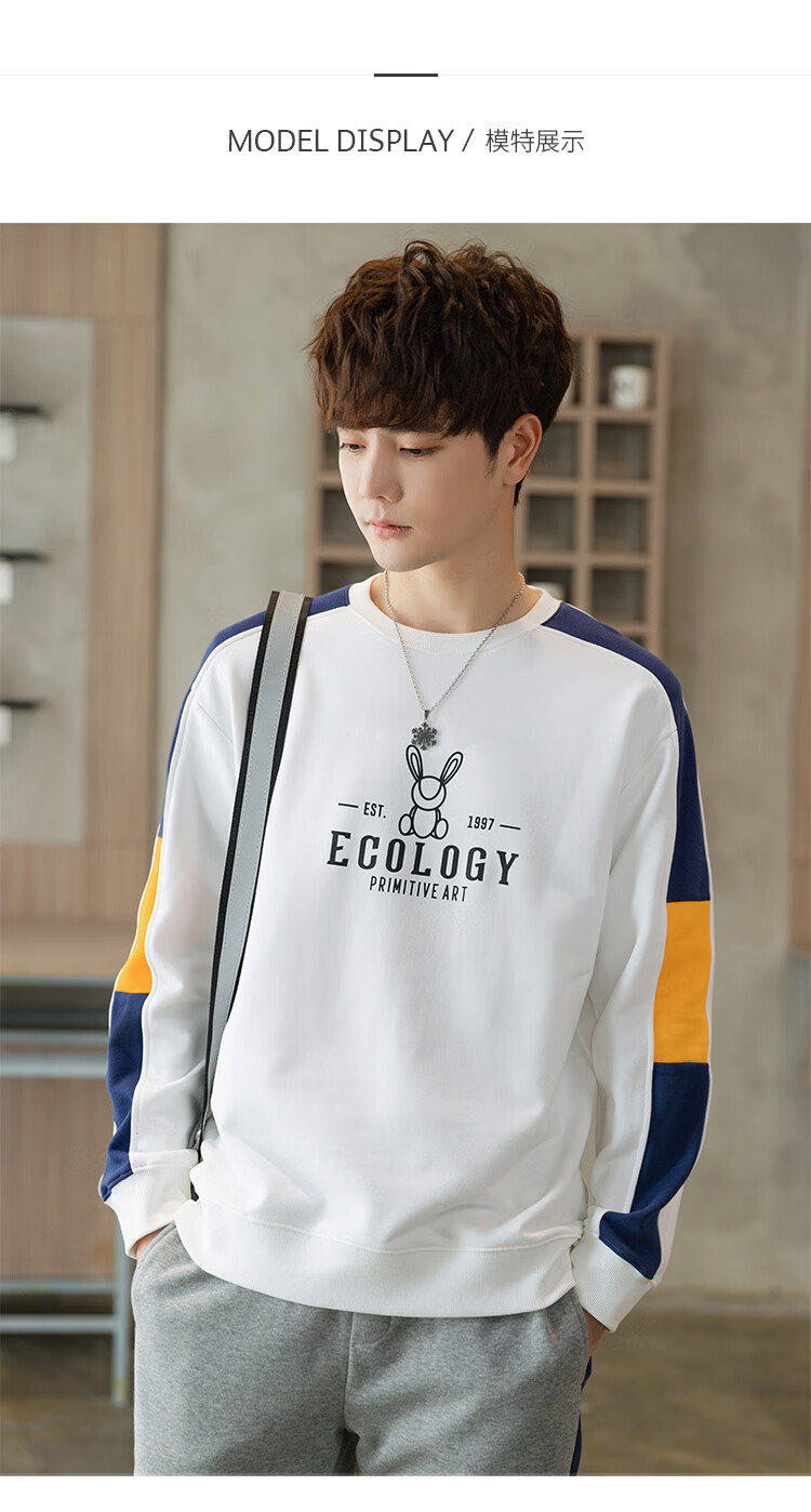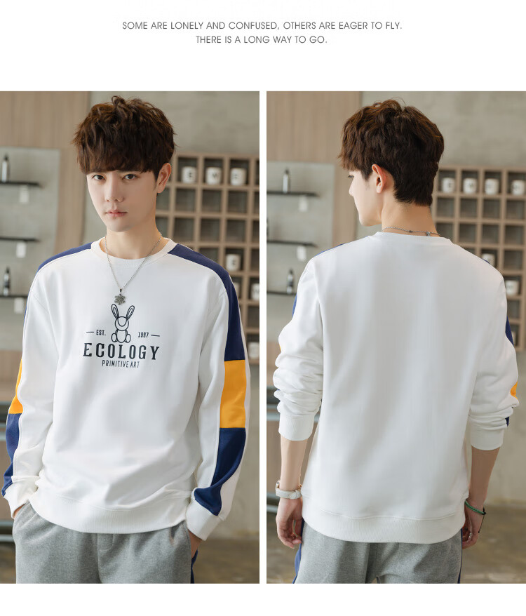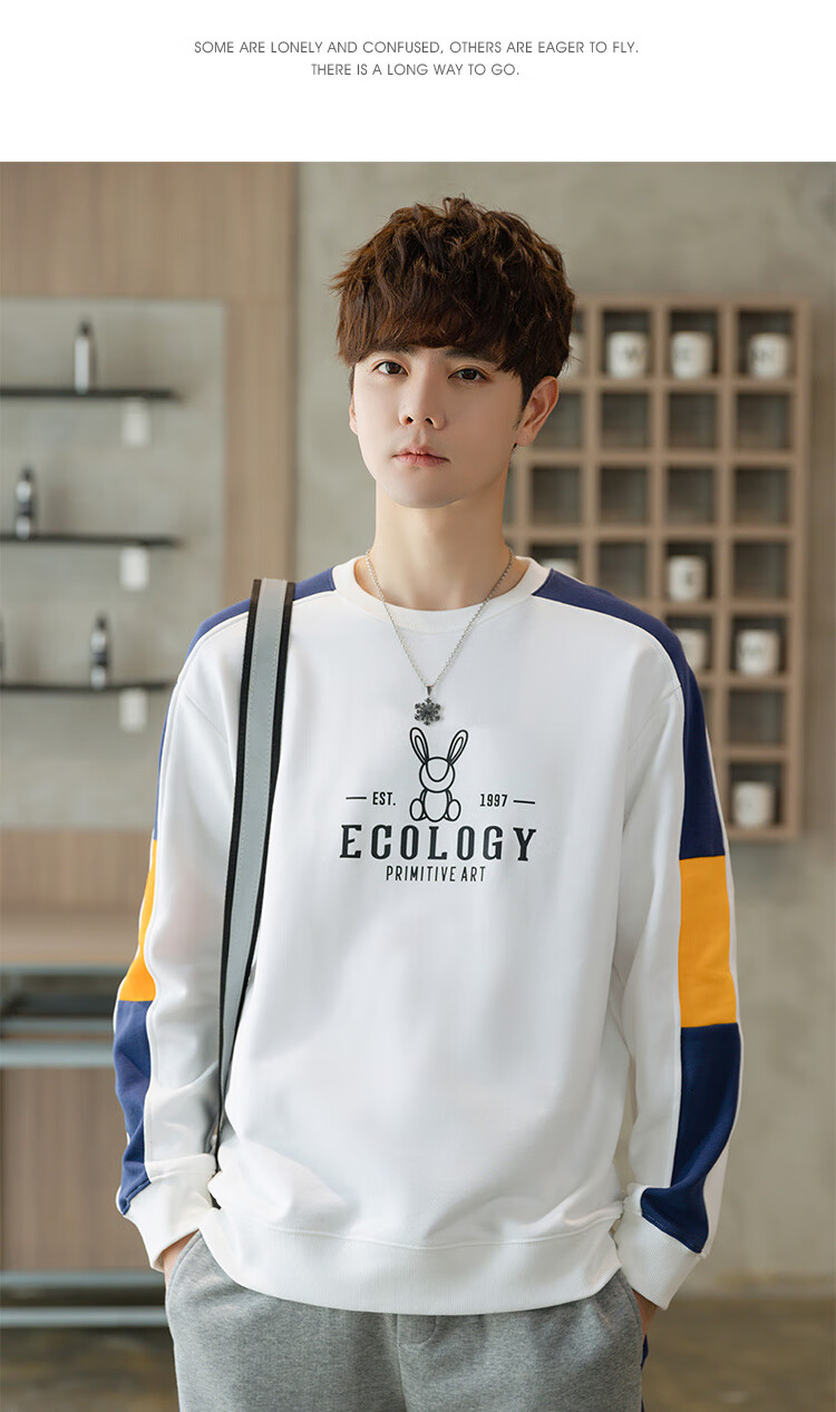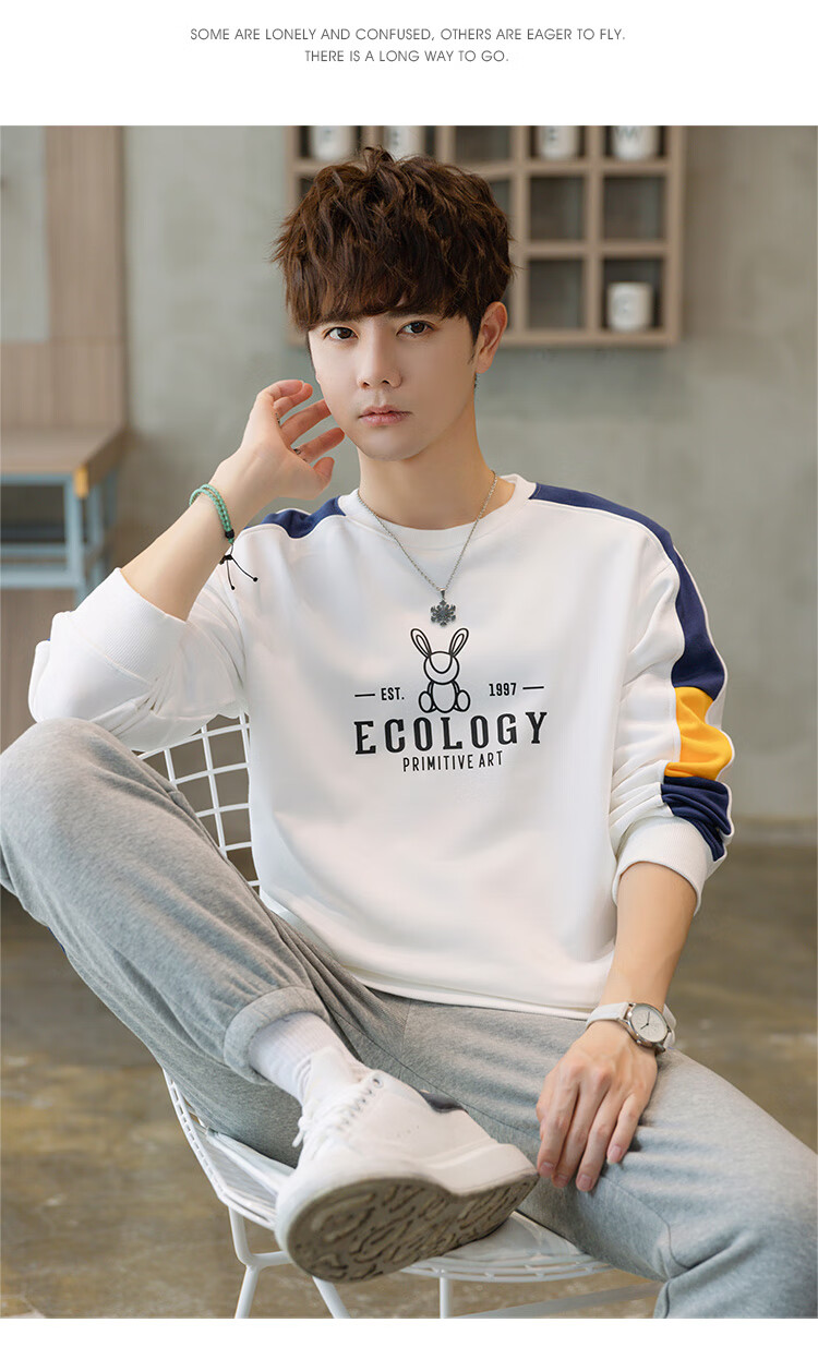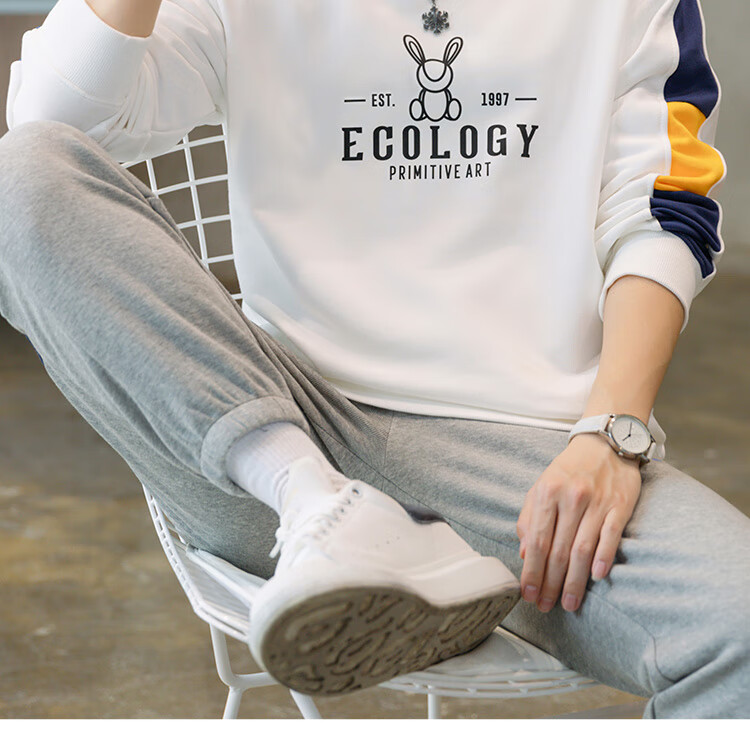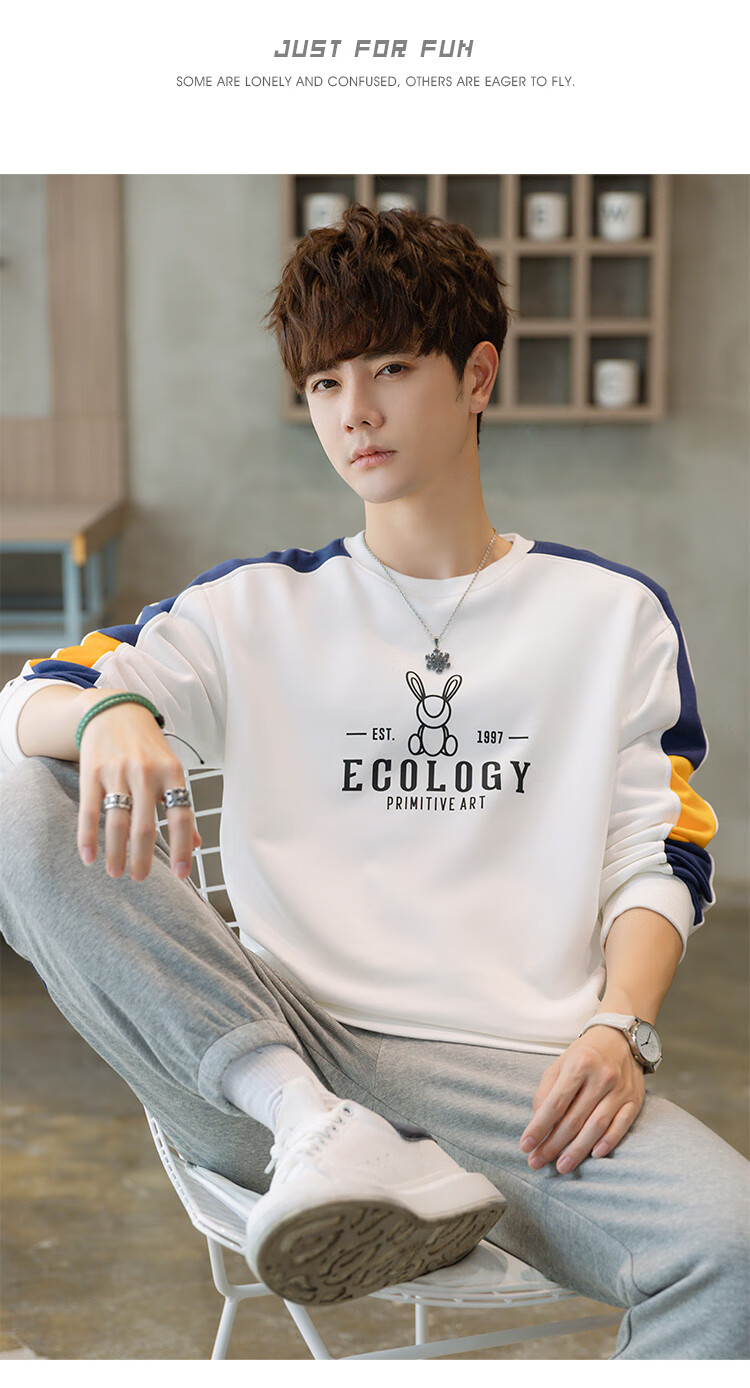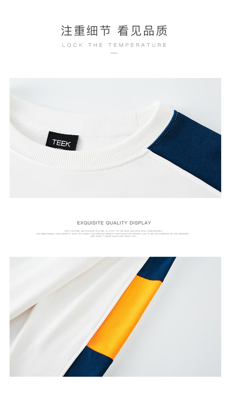 TEEK春秋款圆领中山卫衣男装外套上衣 男士秋冬季新款休闲套头衫衣服 YD18B白色 2XL