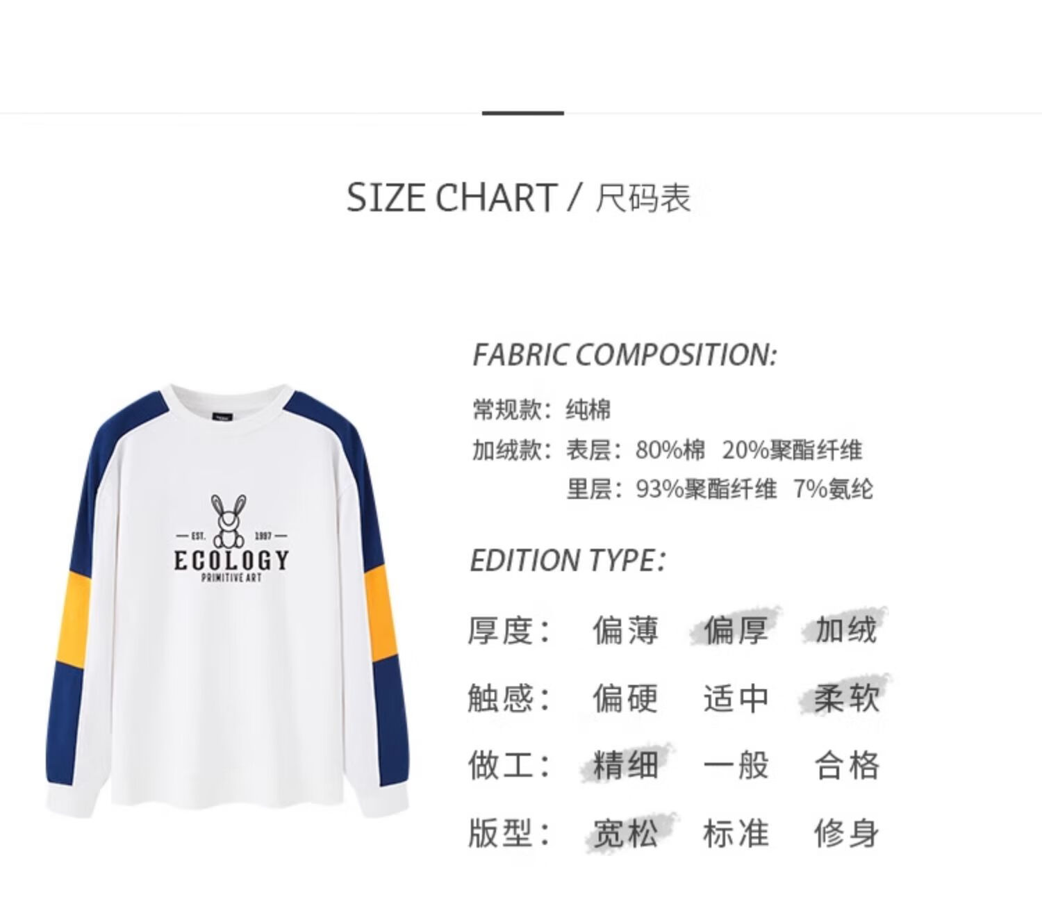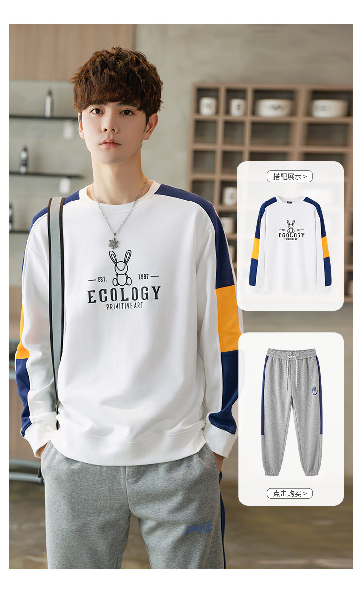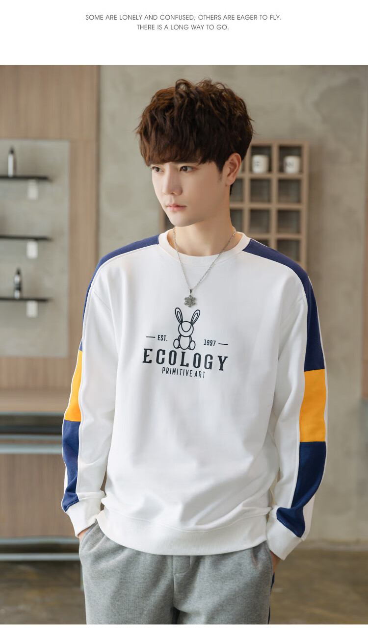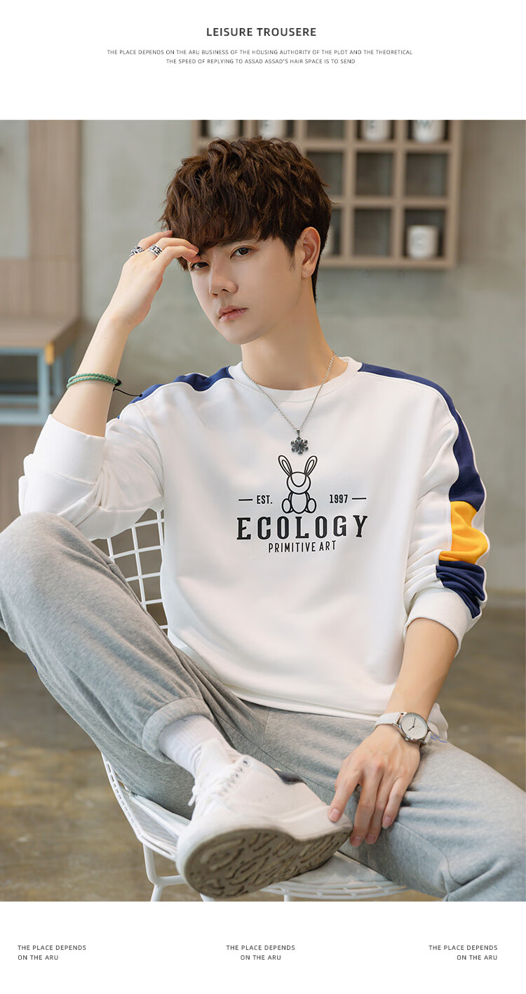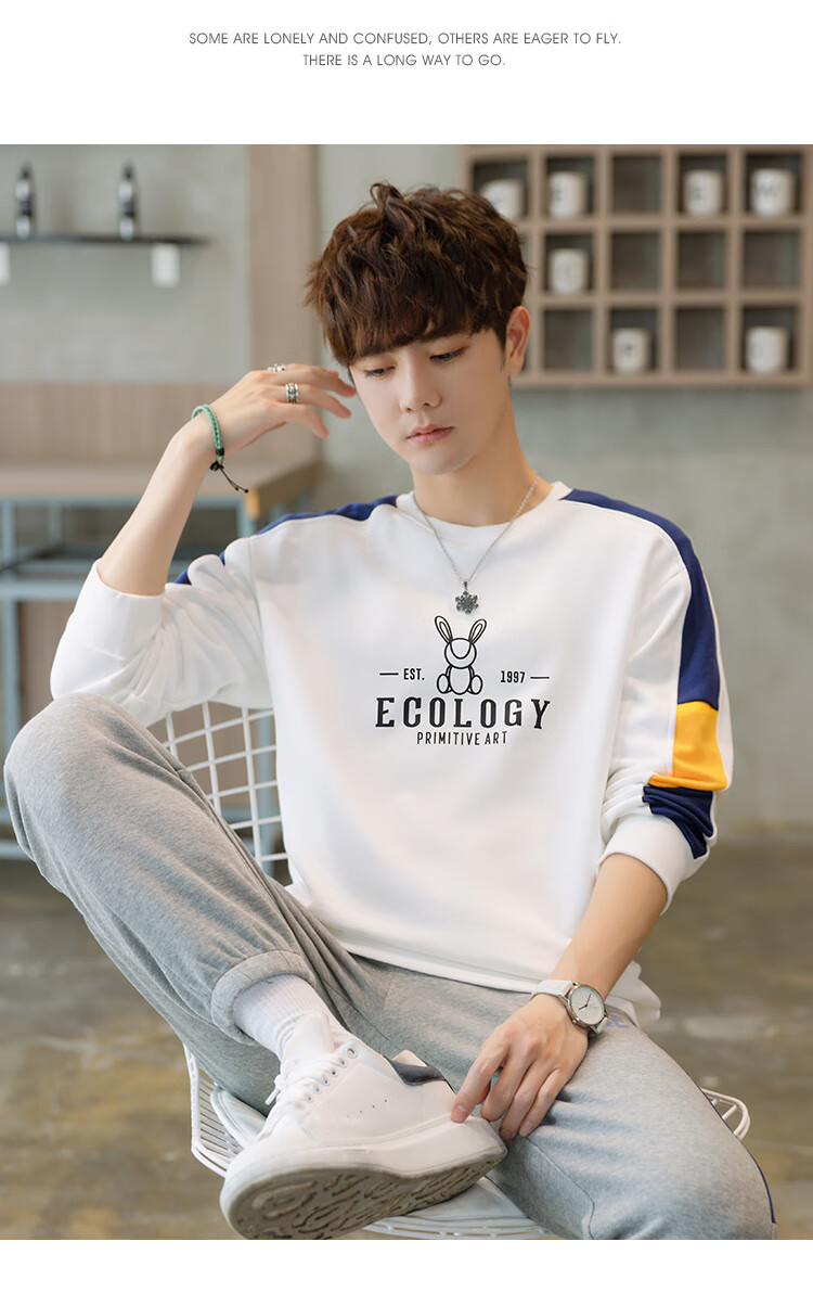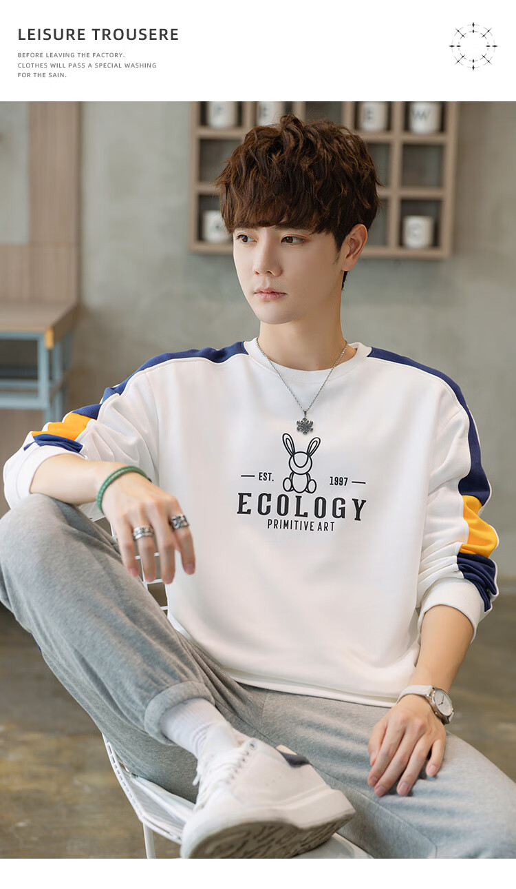 TEEK春秋款圆领中山卫衣男装外套上衣 男士秋冬季新款休闲套头衫衣服 YD18B白色 2XL