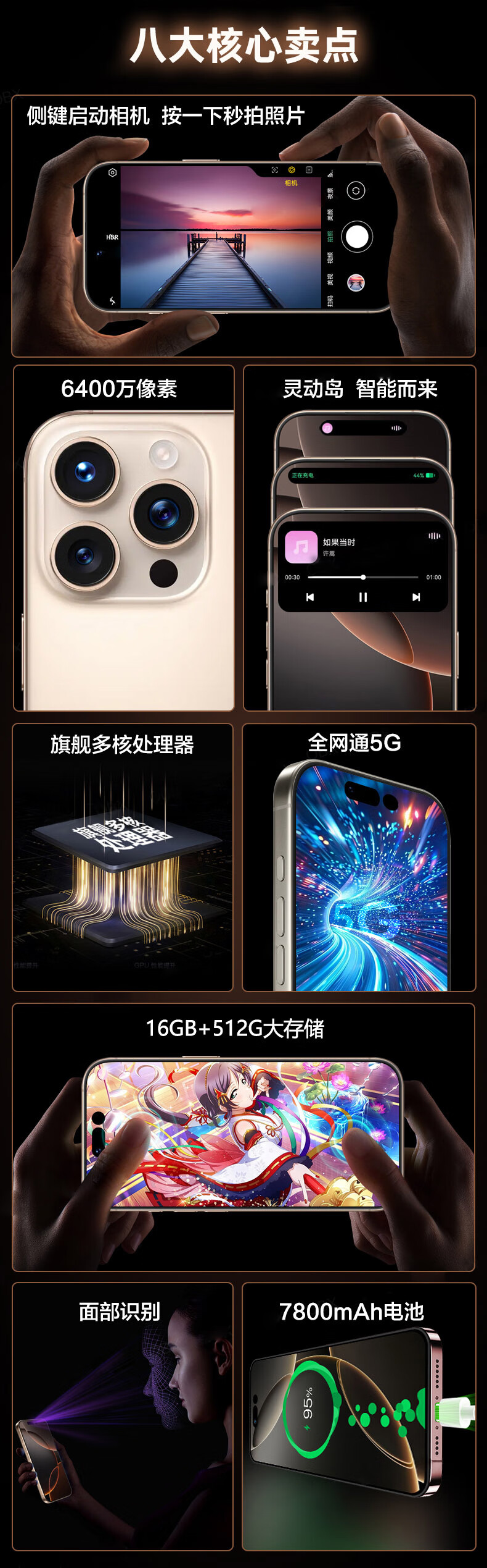 畅享荣耀i16promax [白条免息] 2025新品5G双卡全网通7800mAh快充长续航抗摔防水高性能电竞6400W拍照手机 钛原色 16G运存+1024G(1TB)内存
