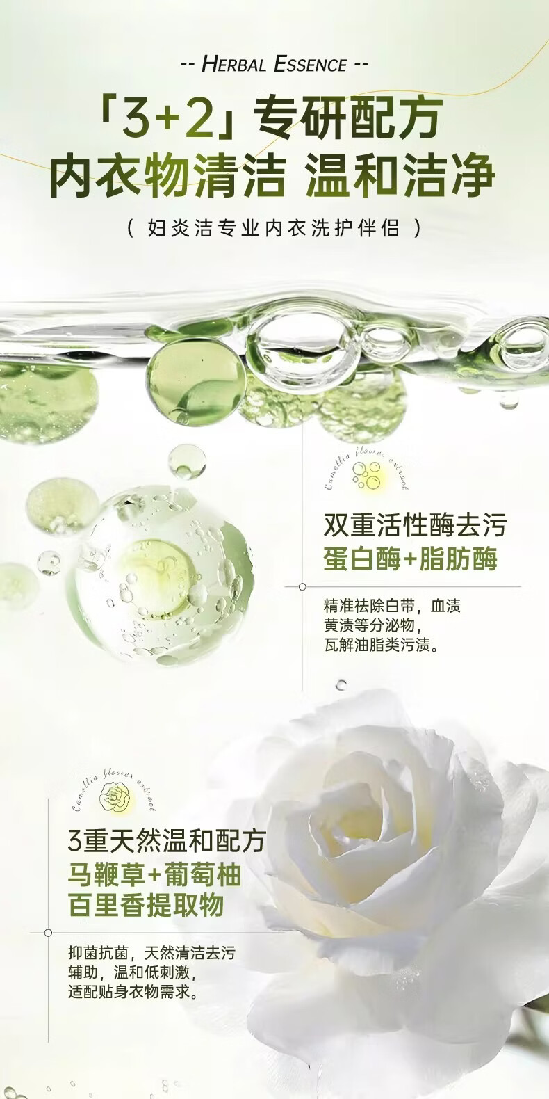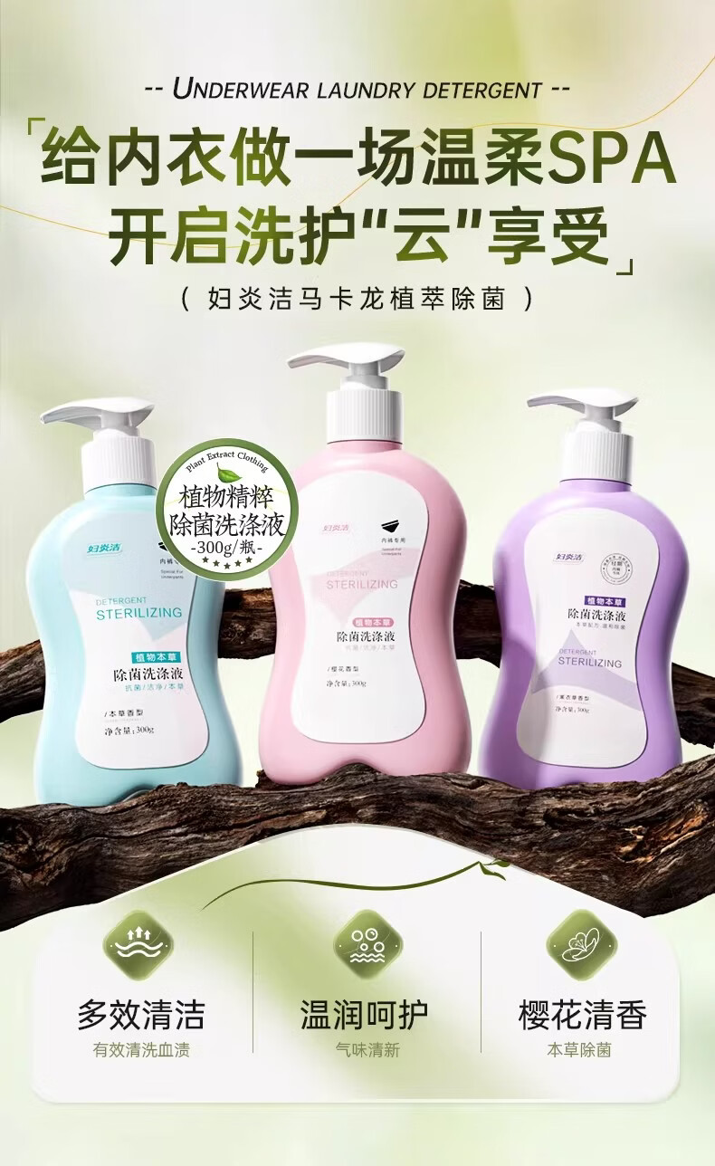 妇炎洁 内衣裤专用洗衣液除菌除螨洗涤液强力祛污渍尿渍可手洗孕妇可用 300g*3瓶+赠100g*2袋