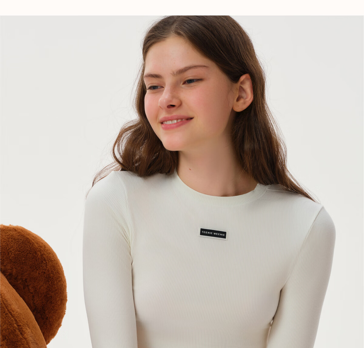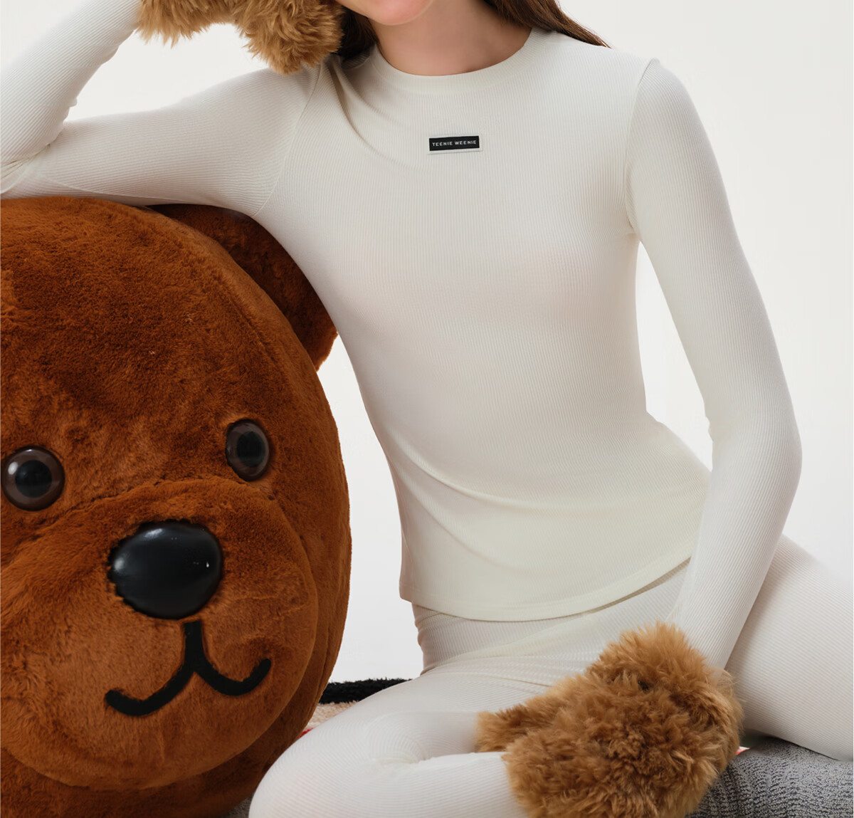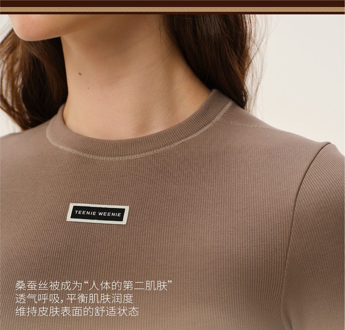 Teenie Weenie小熊蚕丝女士肌底衣T恤保暖内衣女秋衣修身上衣打底 月光白 【保暖上衣】暖绒小筑小熊 M