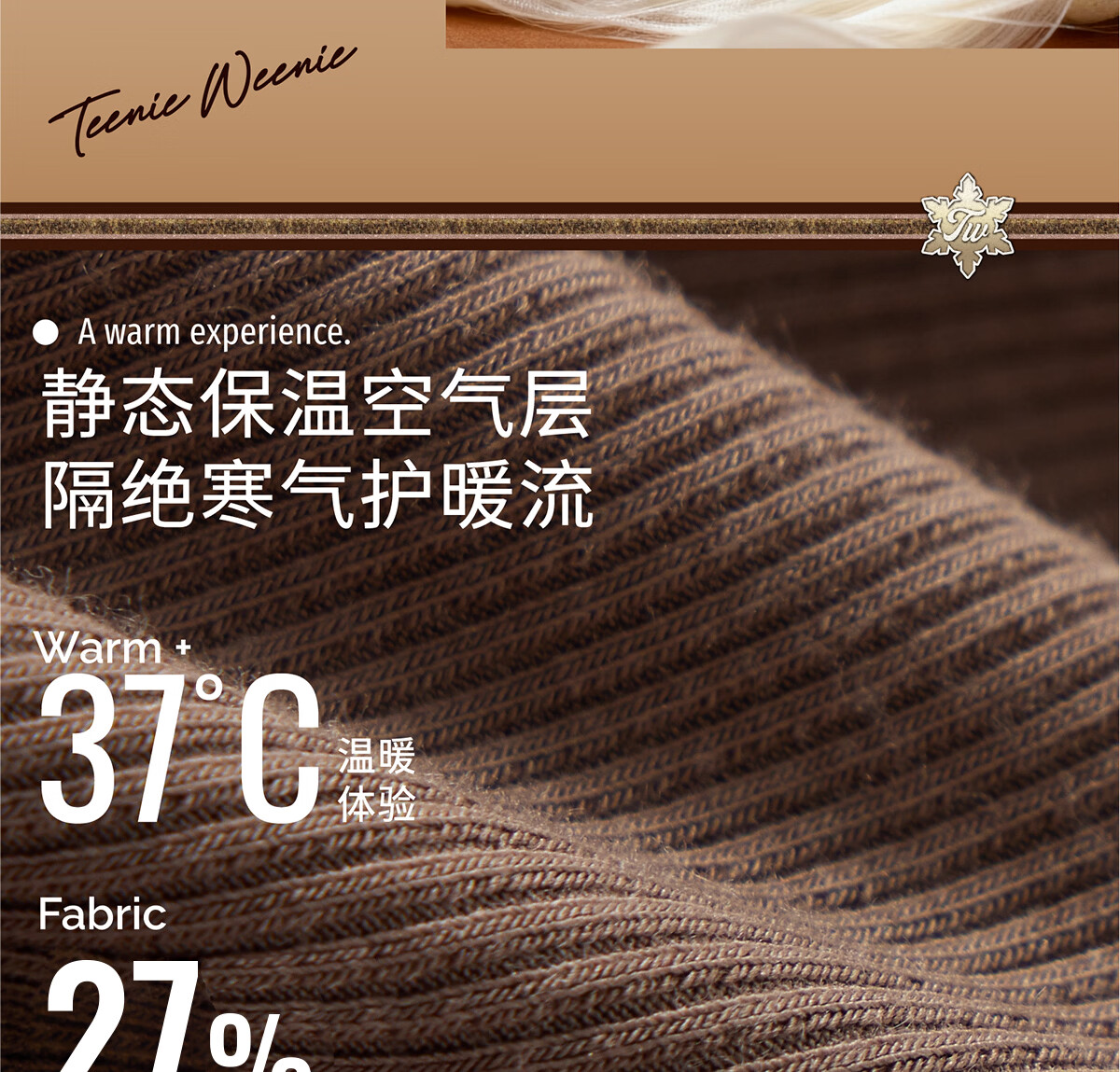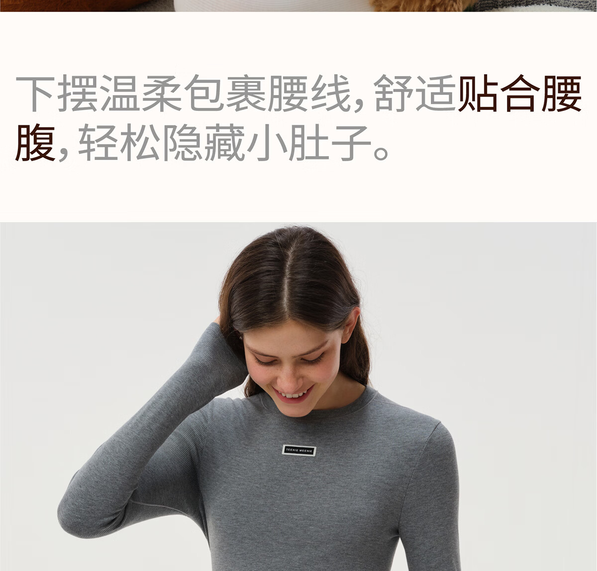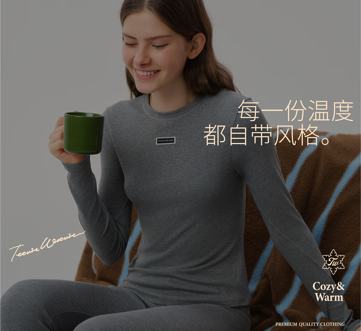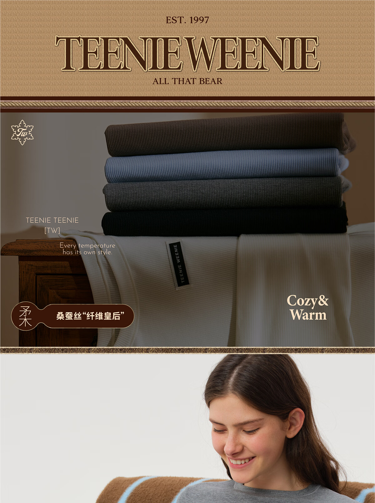 Teenie Weenie小熊蚕丝女士肌底衣T恤保暖内衣女秋衣修身上衣打底 月光白 【保暖上衣】暖绒小筑小熊 M