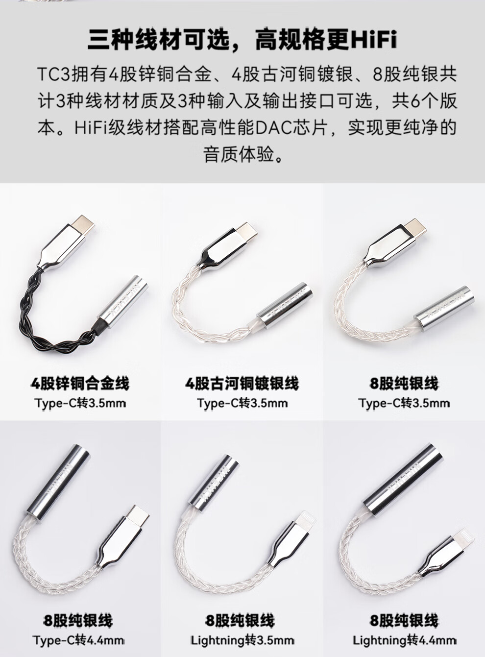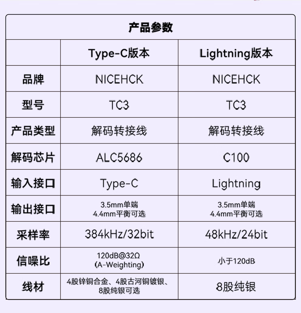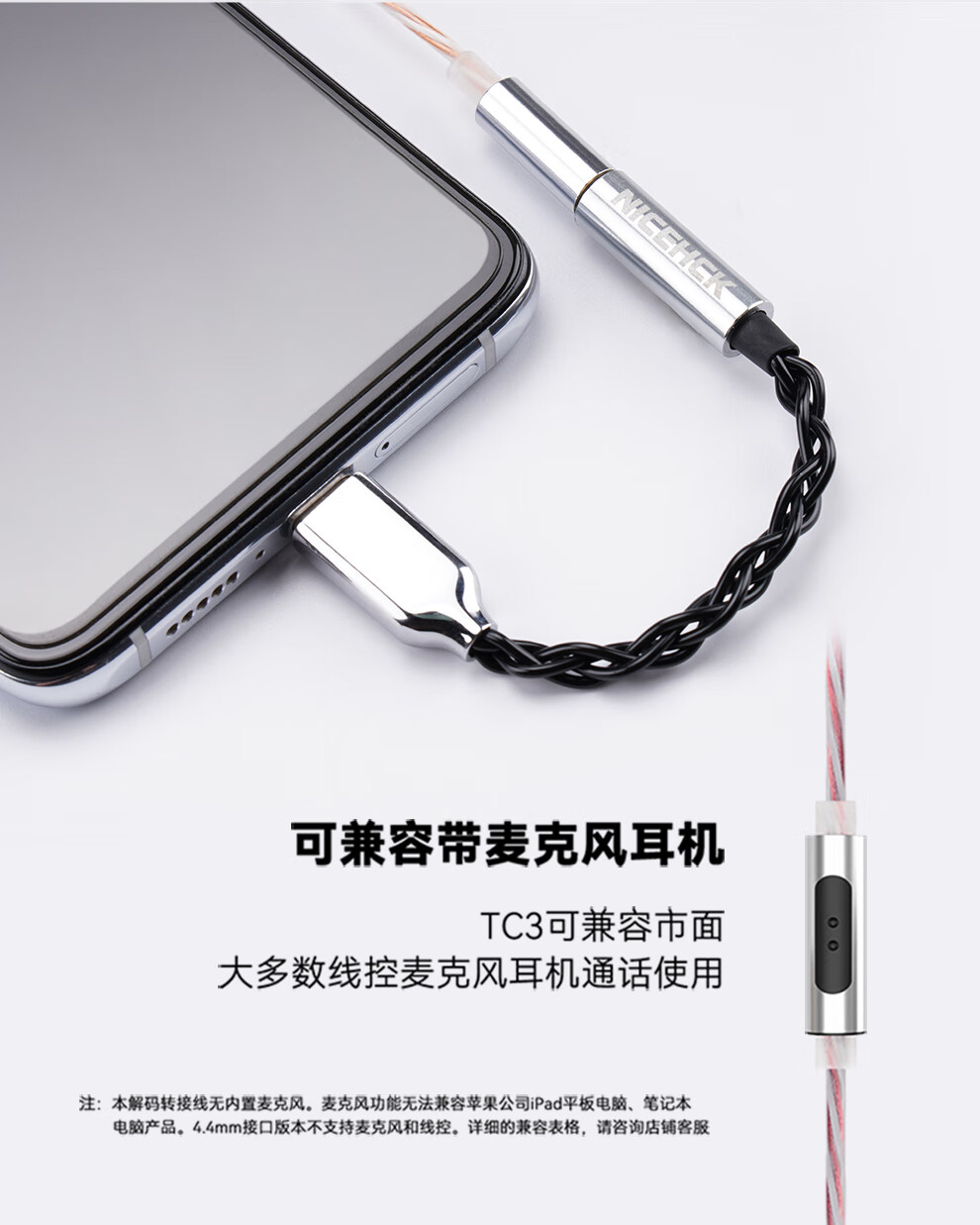 NICEHCK转接线适用于苹果Lightning安卓TypeC原道HiFi小尾巴DAC转接头解码耳放 Type-C转4.4mm 8股纯银