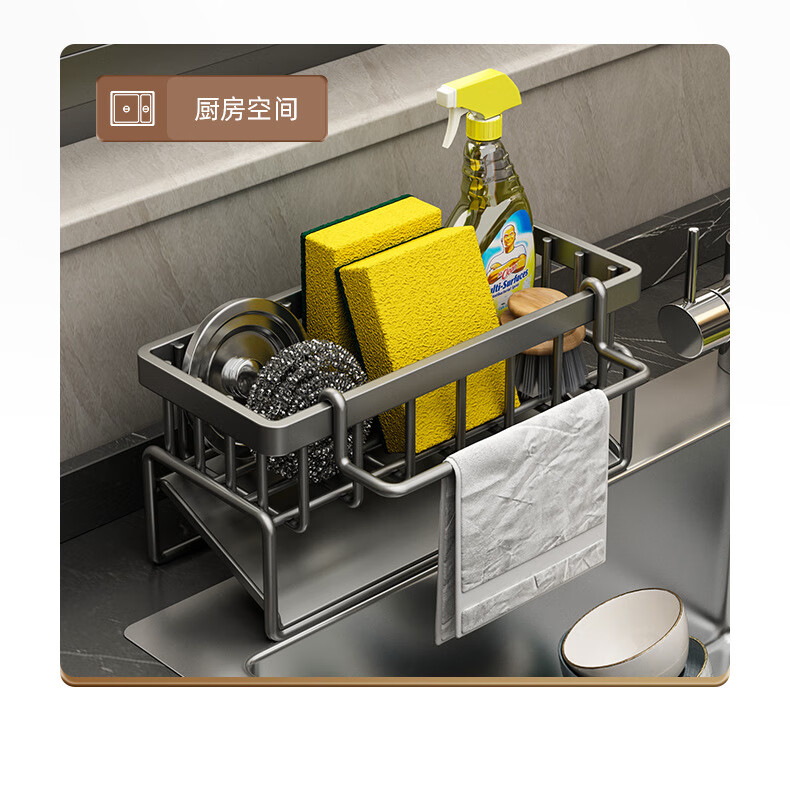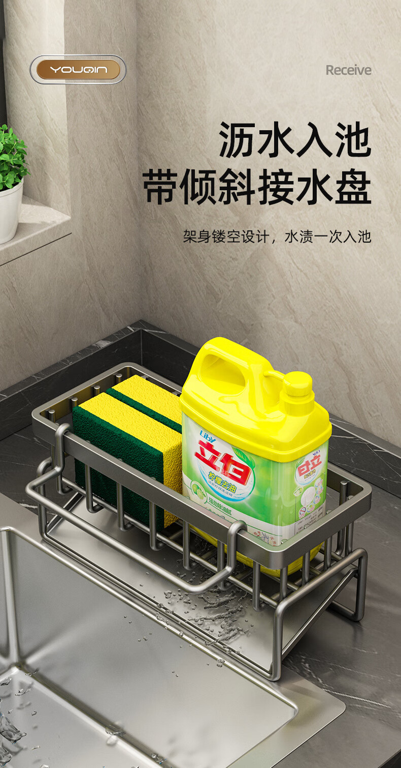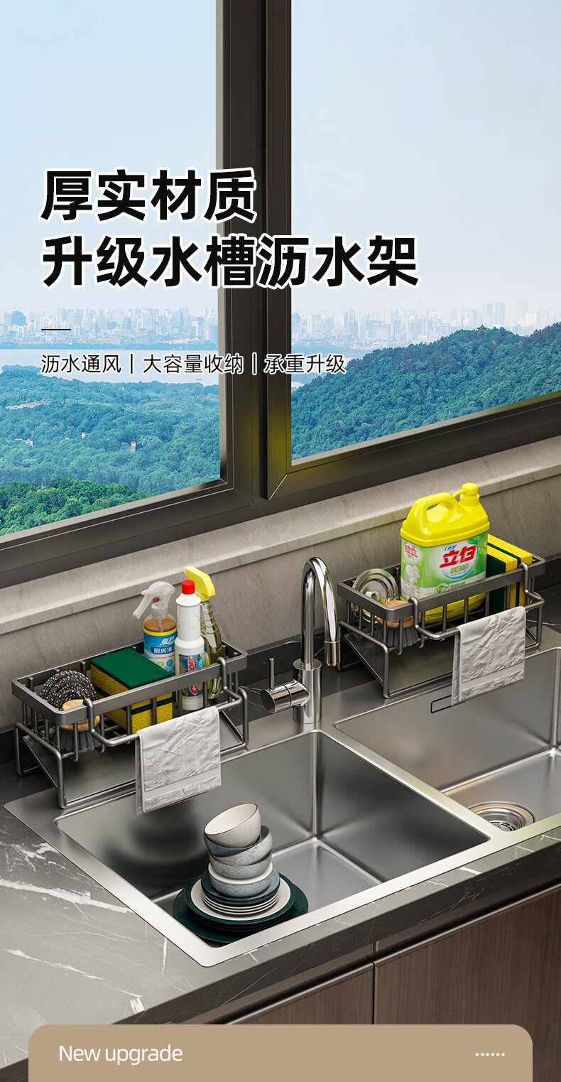 标星厨房置物架水槽抹布沥水架水龙头水池洗碗洗洁精钢丝球收纳架神器 【经典款】不锈钢沥水篮-本色