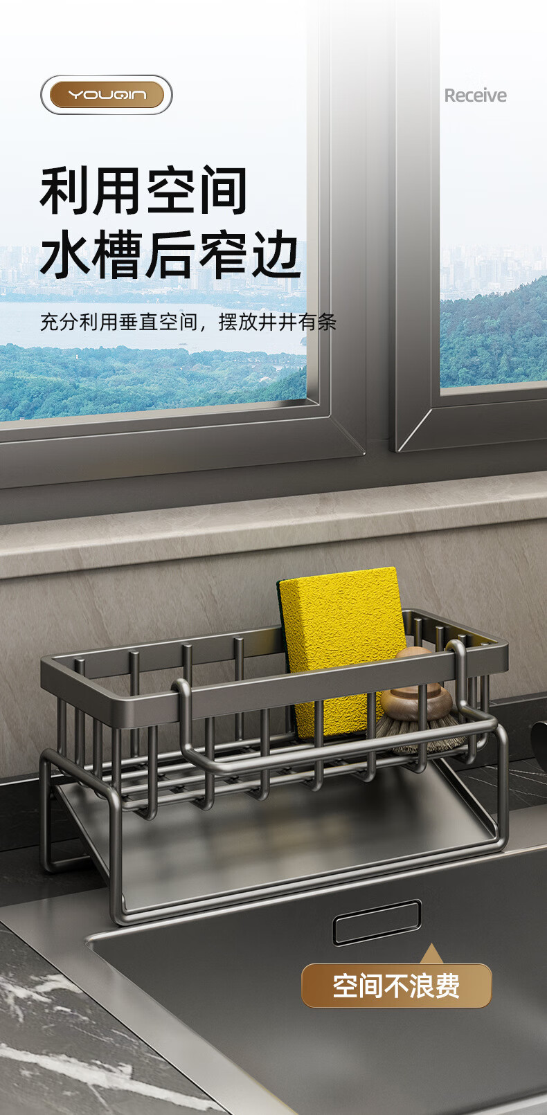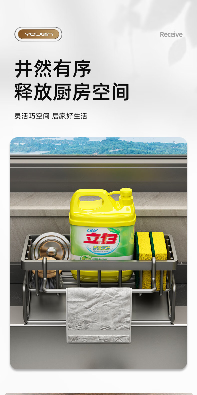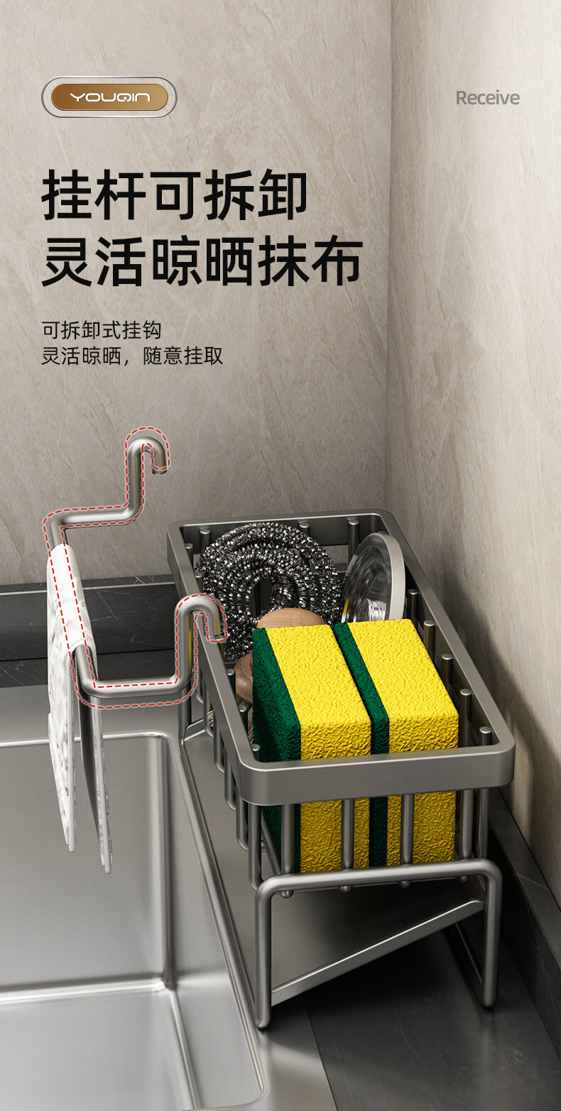 标星厨房置物架水槽抹布沥水架水龙头水池洗碗洗洁精钢丝球收纳架神器 【经典款】不锈钢沥水篮-本色