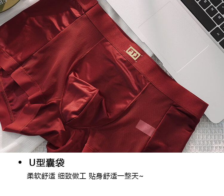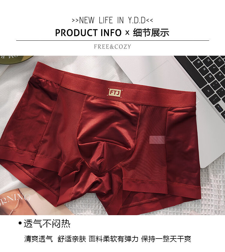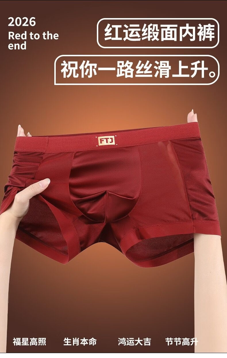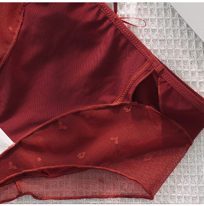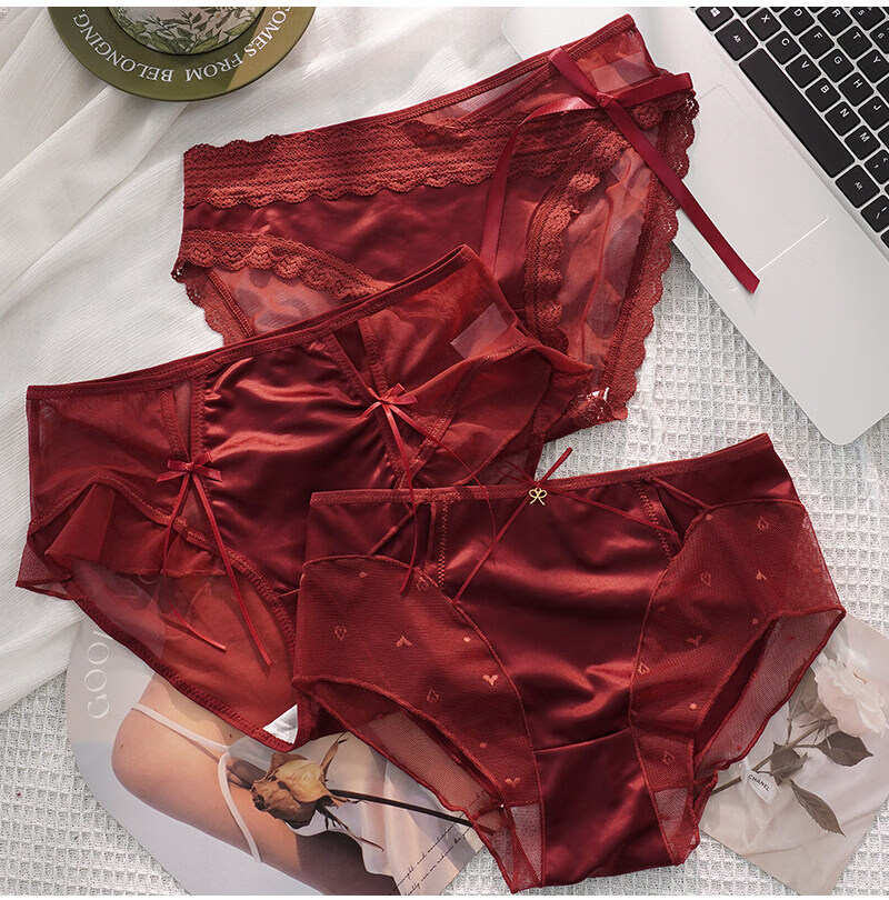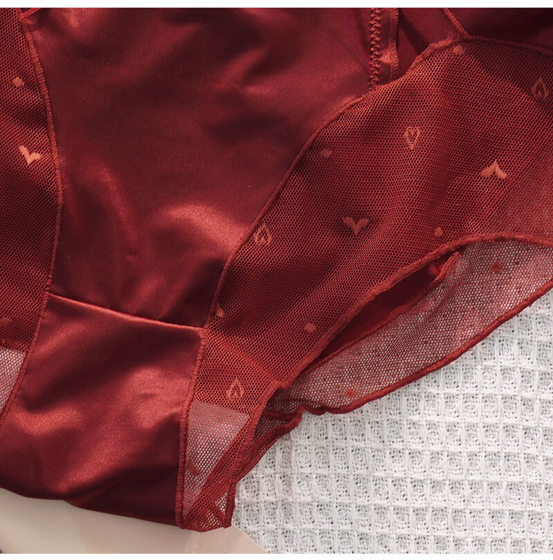 羅亨士情侣内裤红色一男一女生冰丝蕾丝性感双人诱惑情趣夫妻房事底裤衩 侧大蝴蝶结 2条 2XL 男+女L码