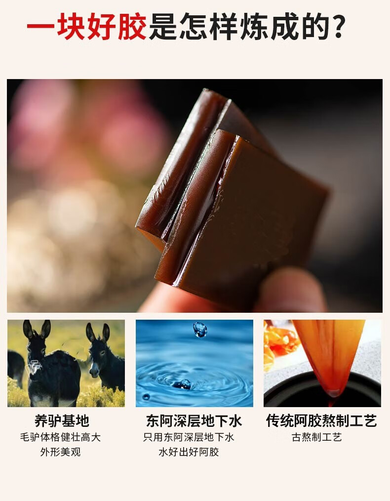 【免费教熬】 阿胶块 山东阿胶片 驴胶原块 阿胶250克