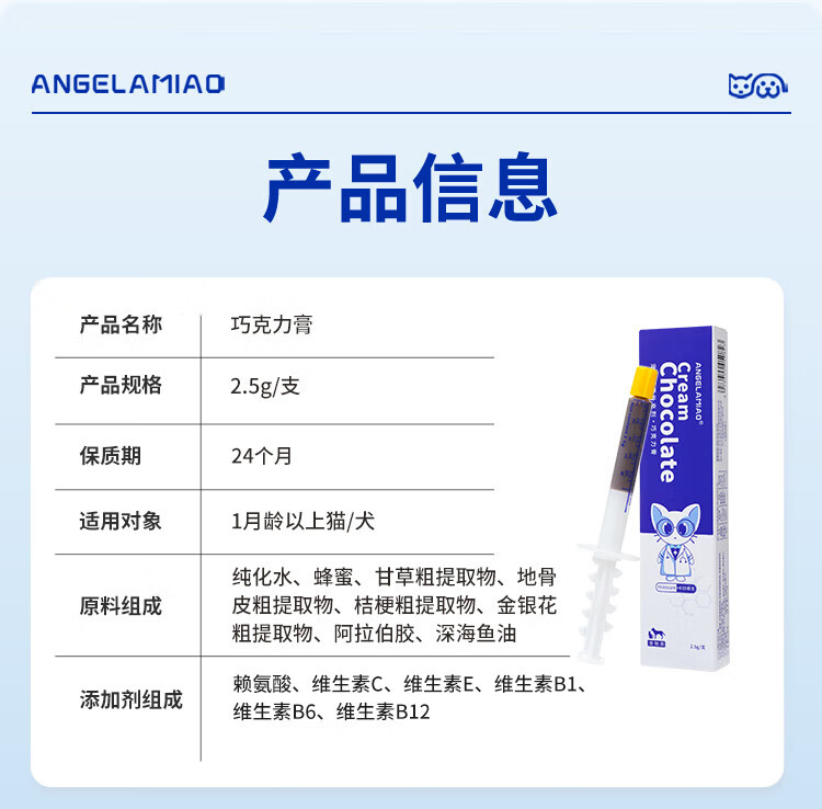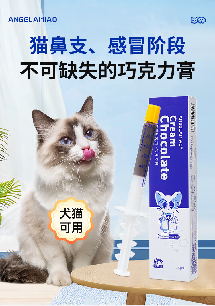 Angelamiao巧克力膏猫鼻支猫狗感冒咳嗽营养补充剂 1支装