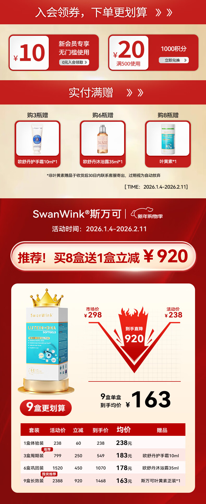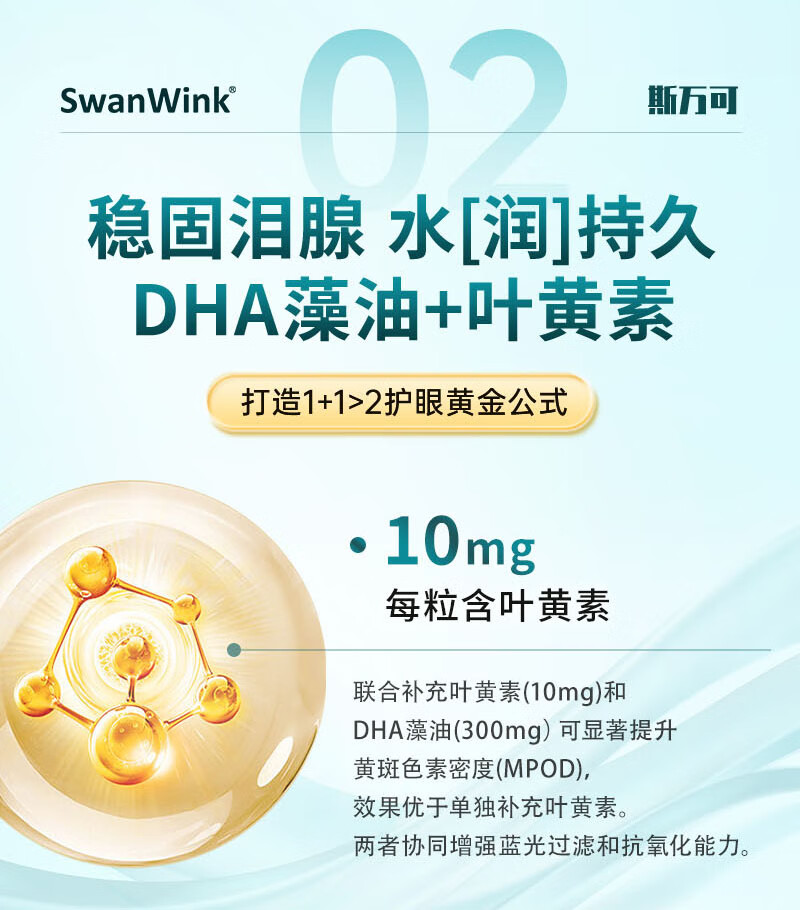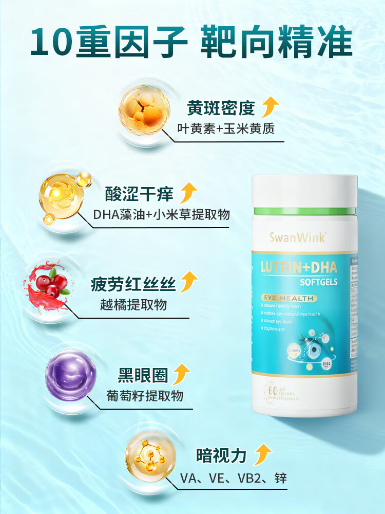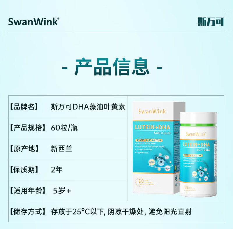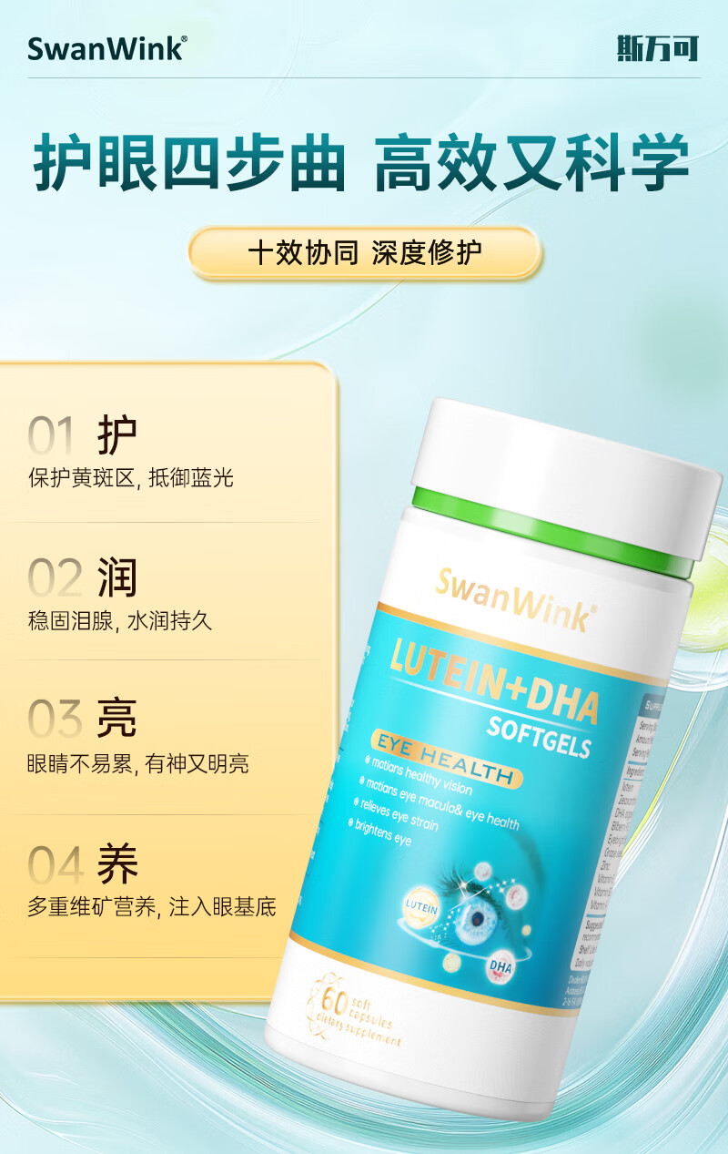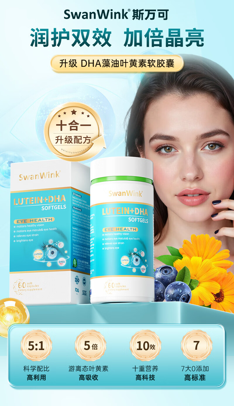 SwanWink斯万可dha叶黄素护眼片丸眼睛成人软胶囊蓝莓保健品 DHA叶黄素 60粒*3瓶 【性价比之选】