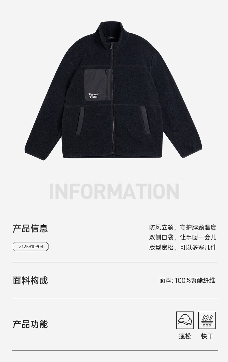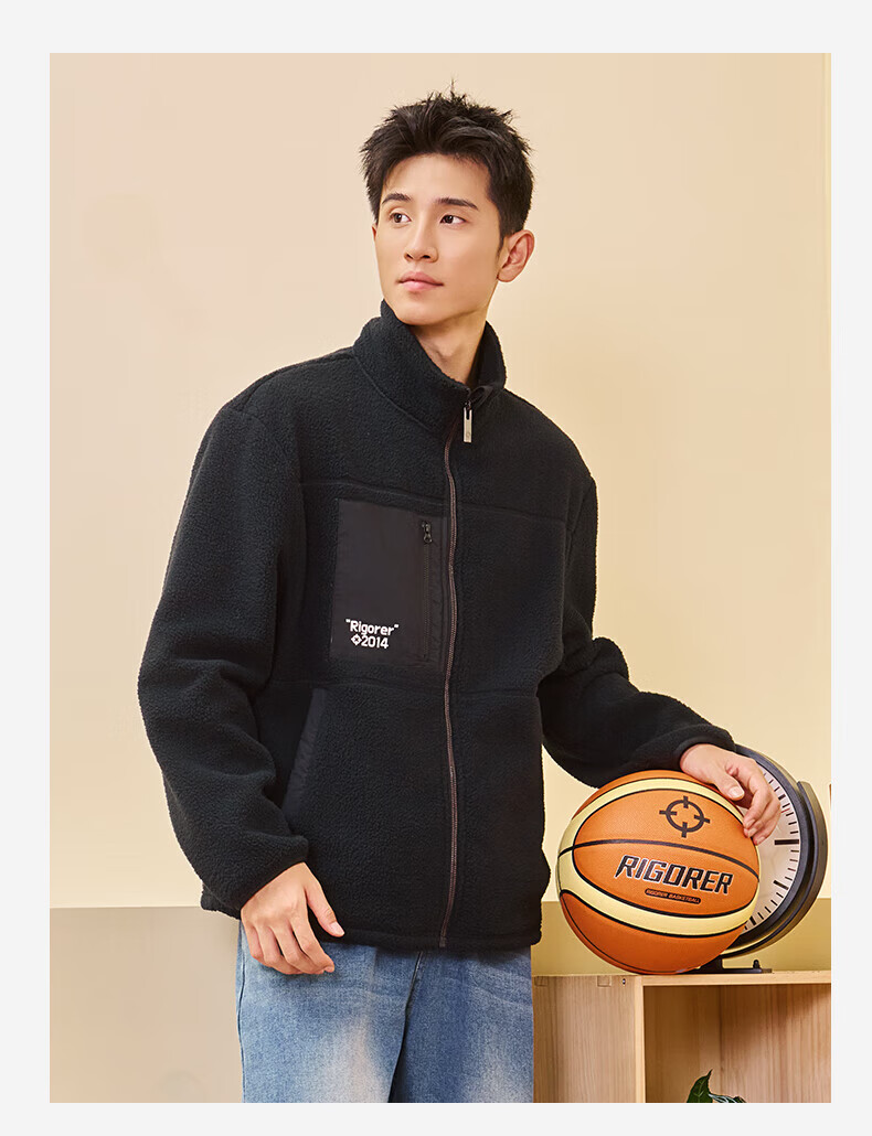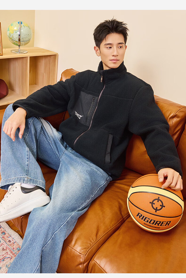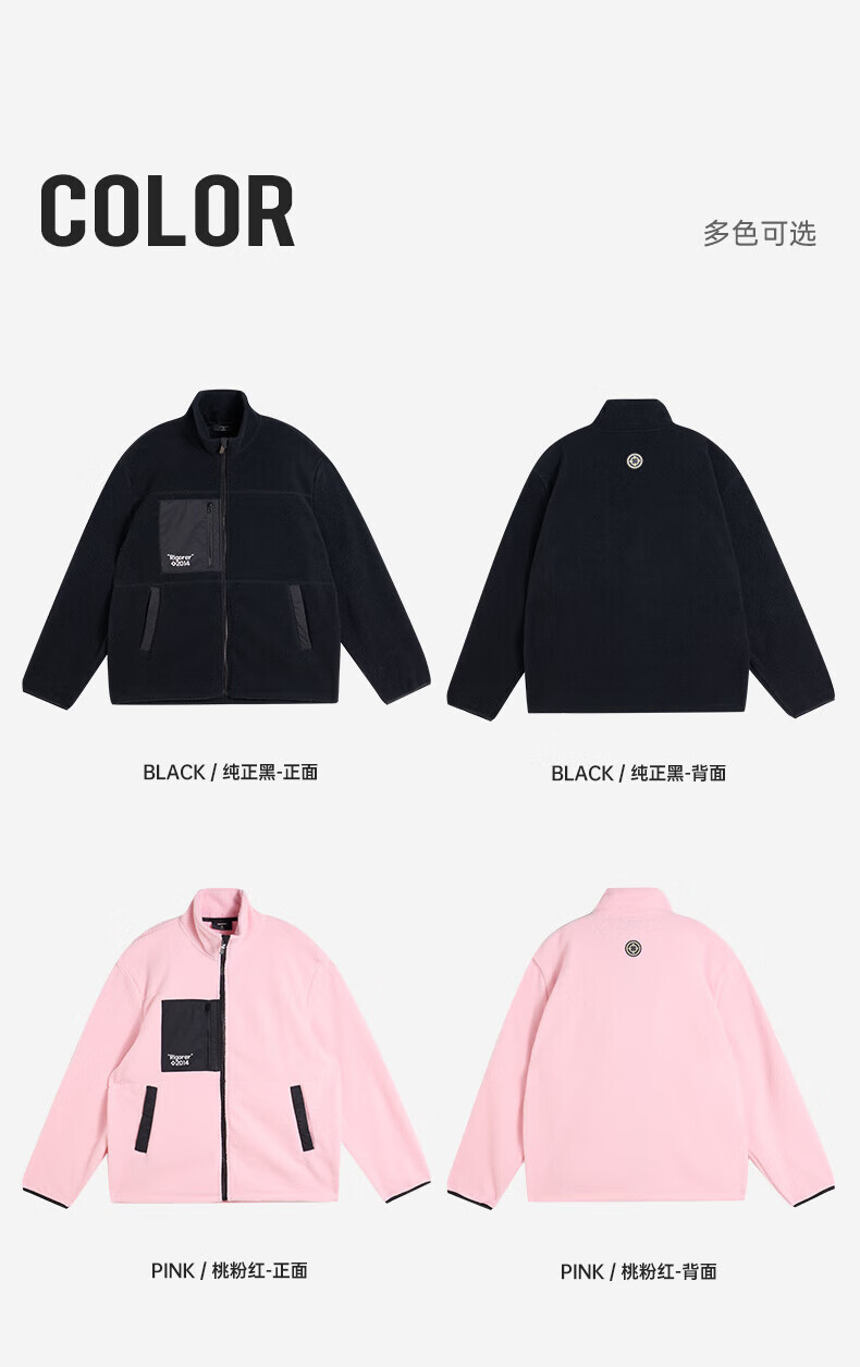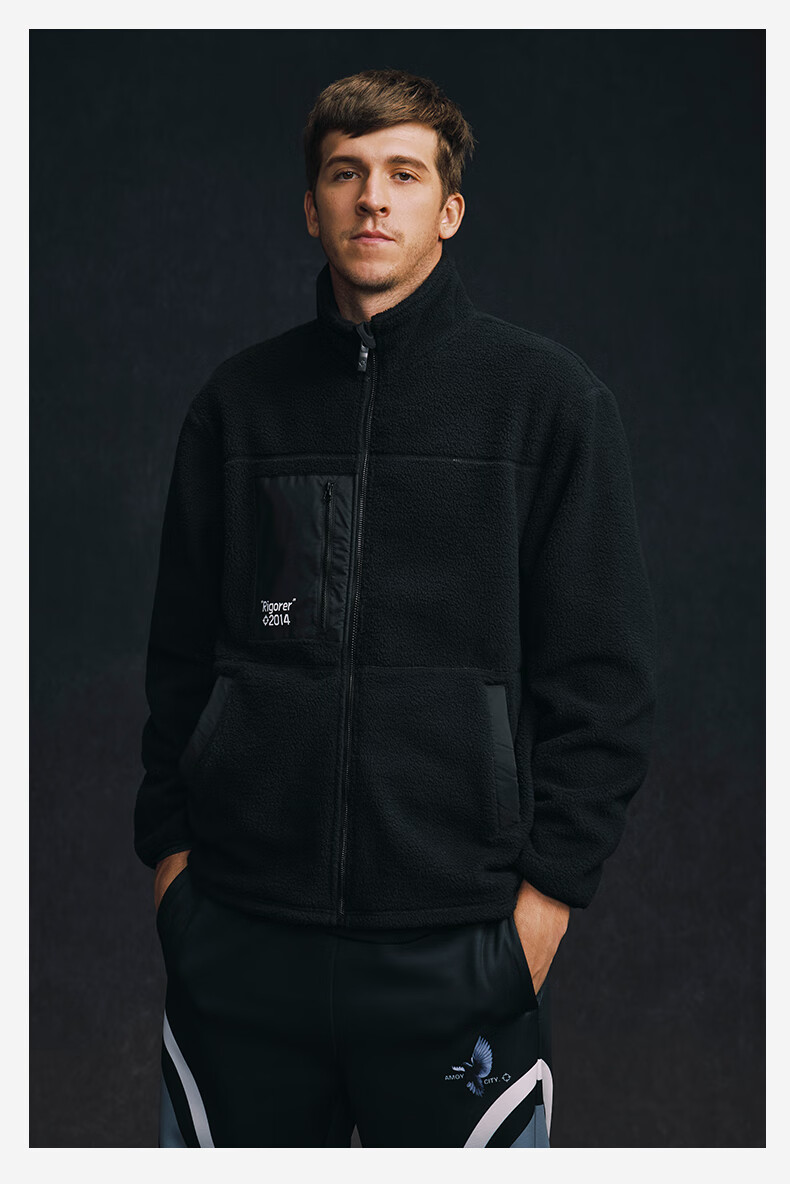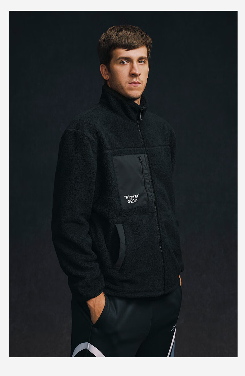 准者防风摇粒绒外套男子春季新款户外运动保暖宽松撞色抓绒上衣 纯正黑 2XL (185)