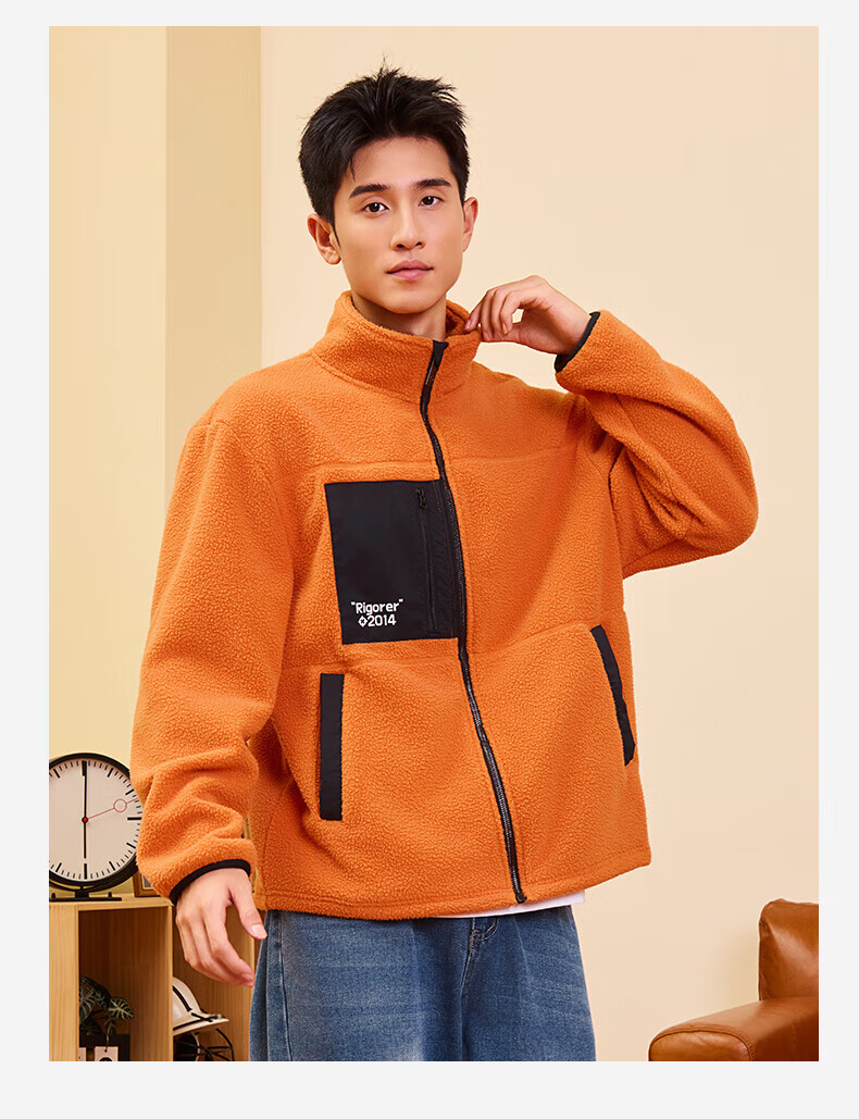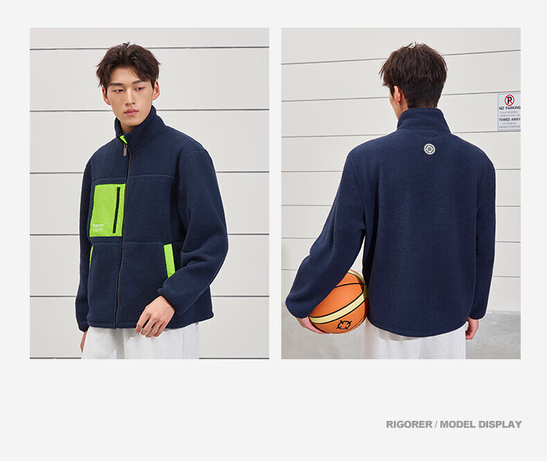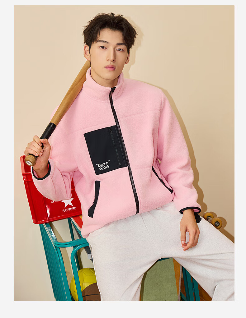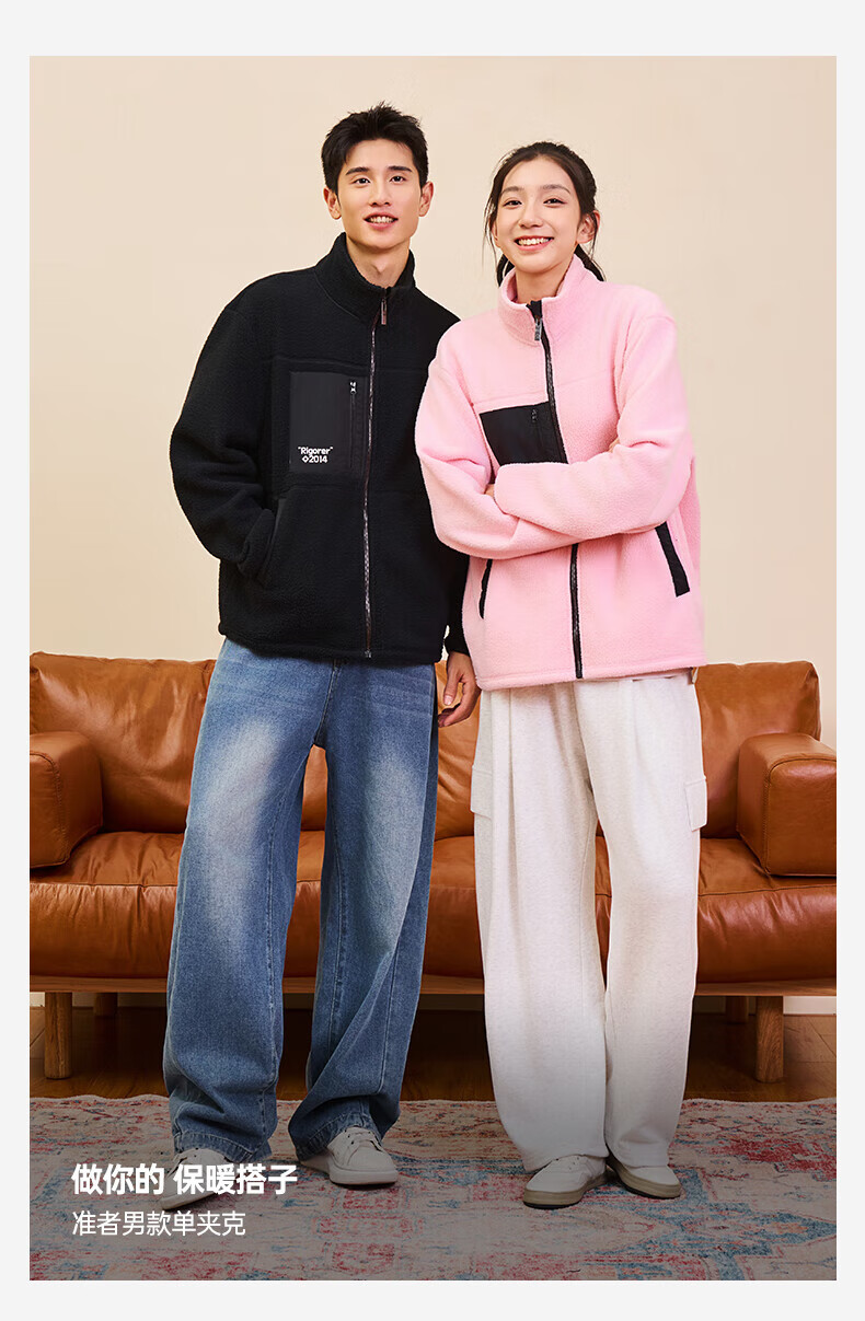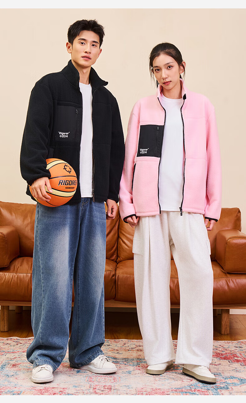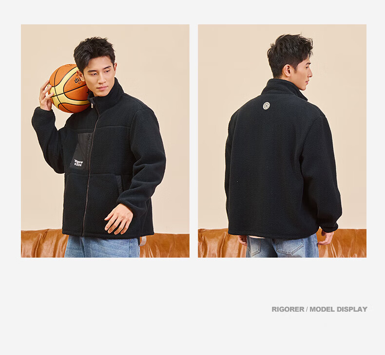 准者防风摇粒绒外套男子春季新款户外运动保暖宽松撞色抓绒上衣 纯正黑 2XL (185)