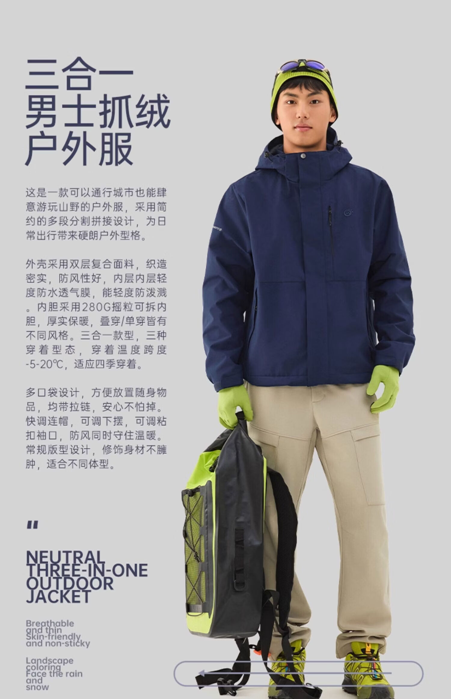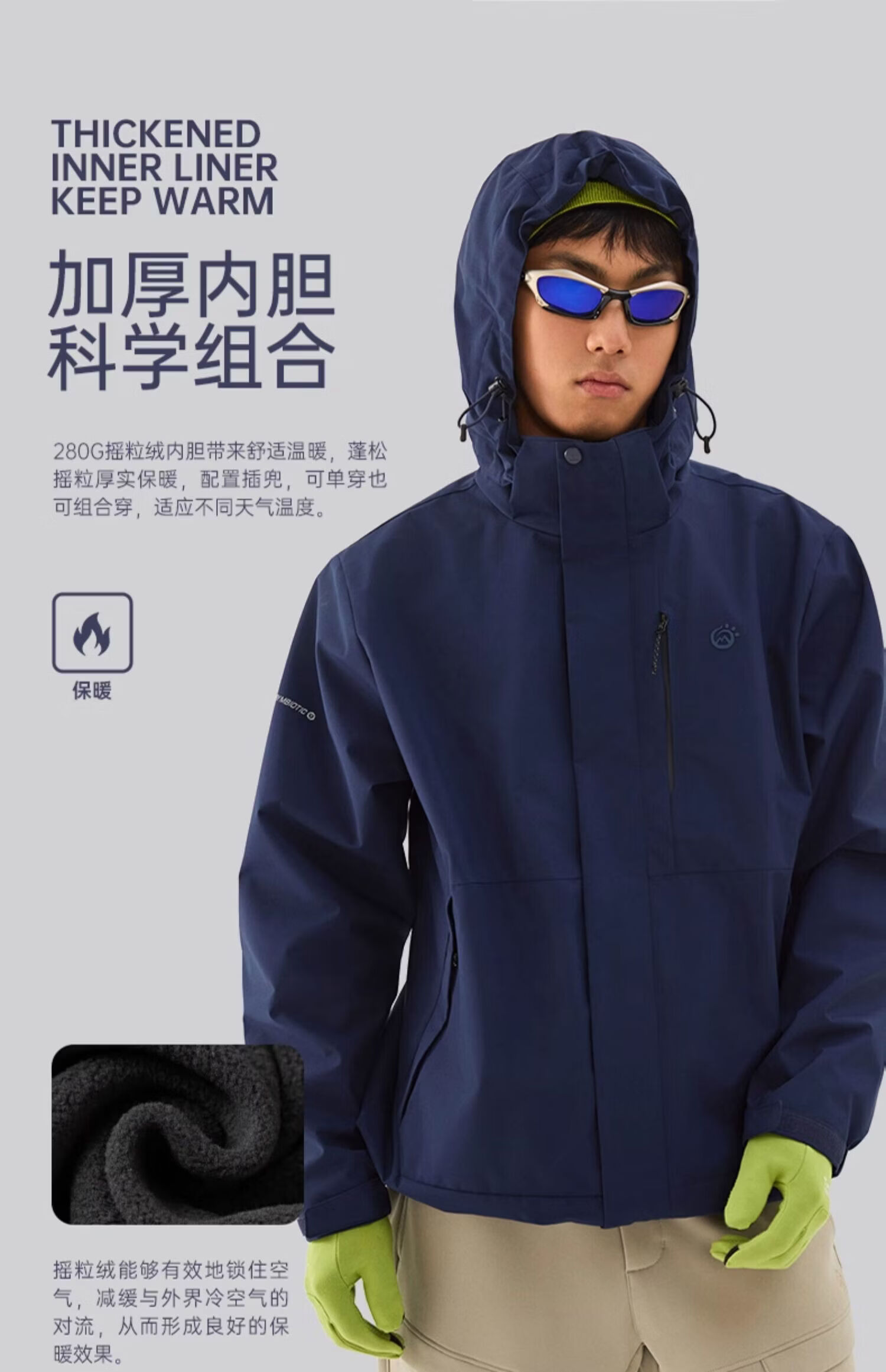 探拓(TECTOP)TECTOP/探拓户外登山服外套男士秋冬加绒保暖透气徒步 藏青色【男款【3合1款 M