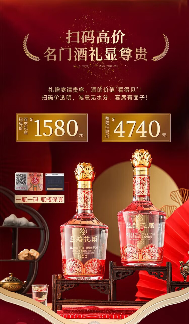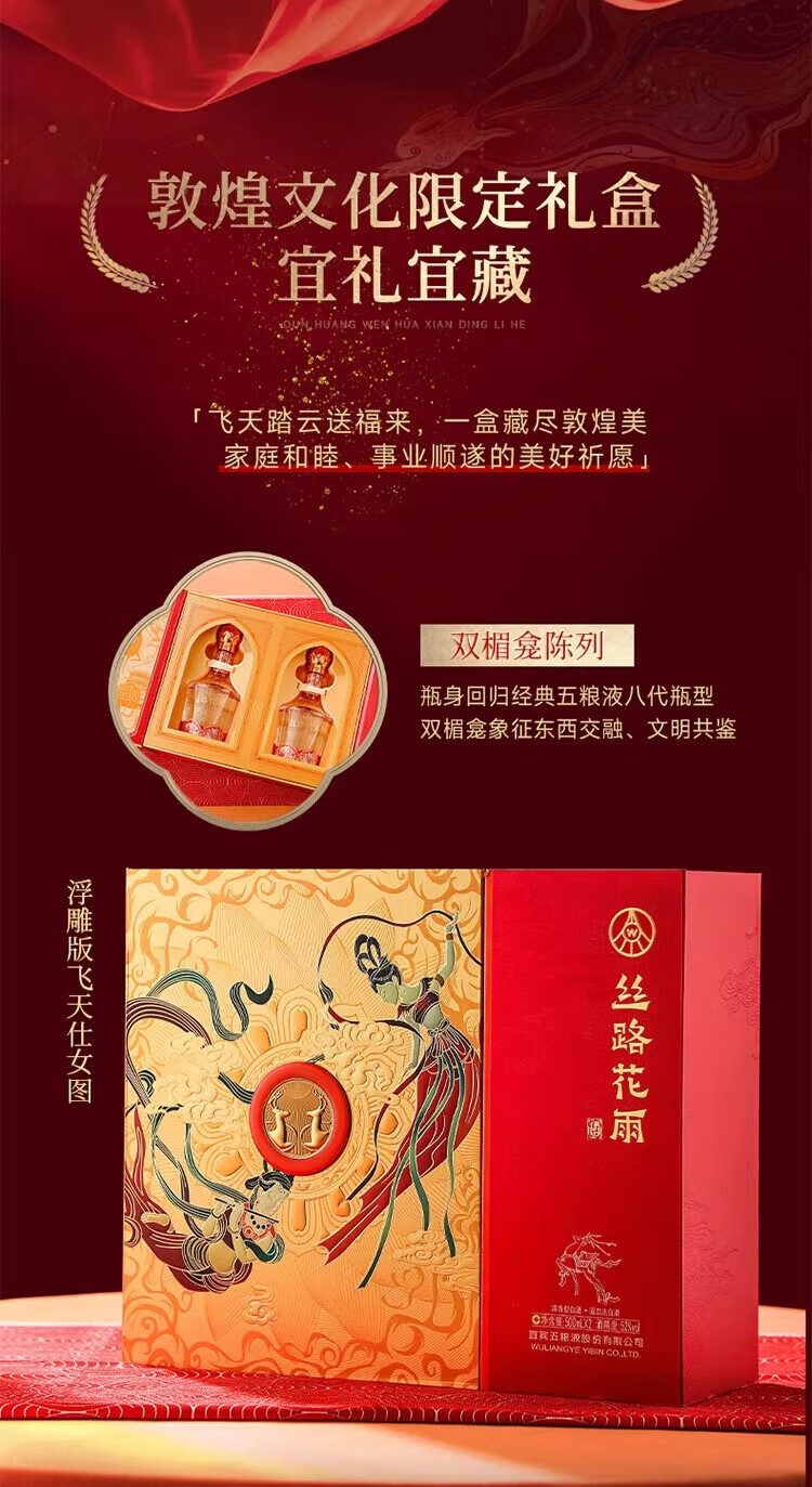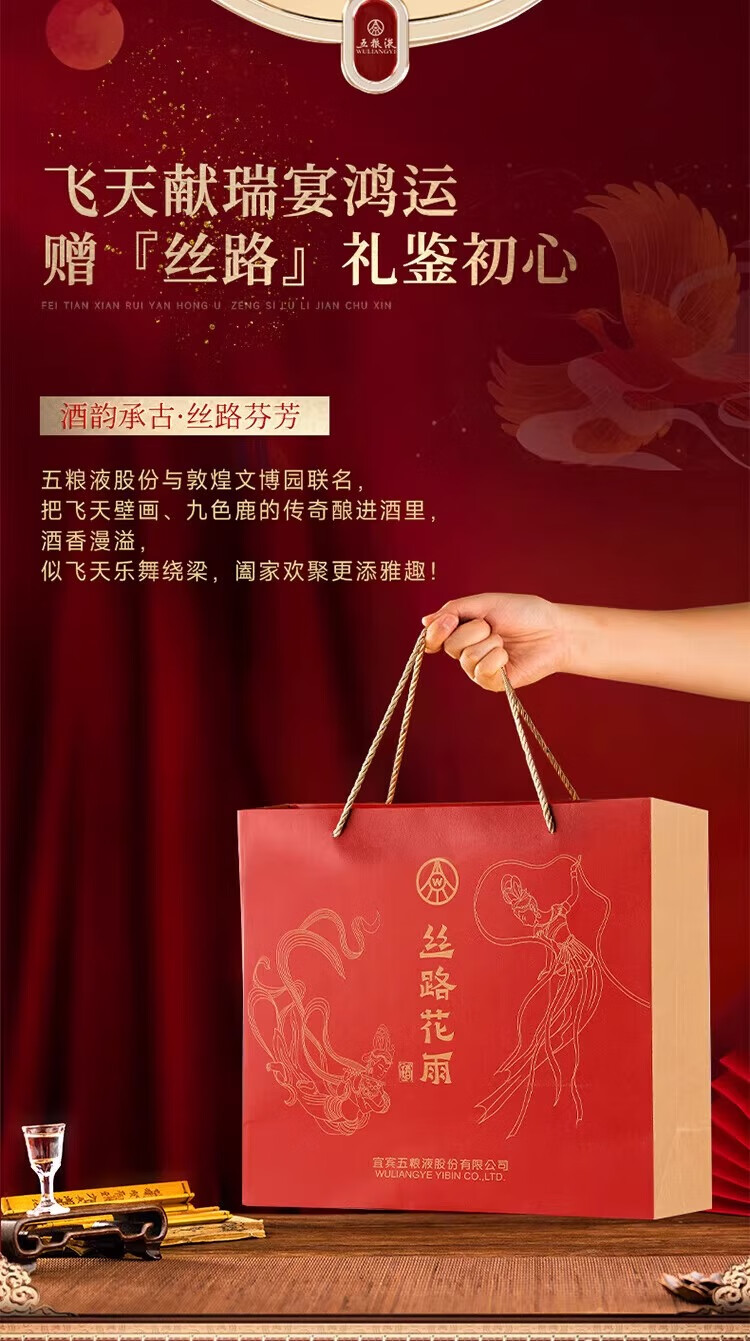 五粮浓香五粮液总厂丝路花雨52度浓香型白酒礼盒500mlx2礼盒春节送礼 52度 500mL 6瓶 整箱(3套礼盒)