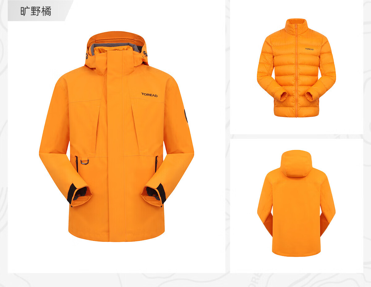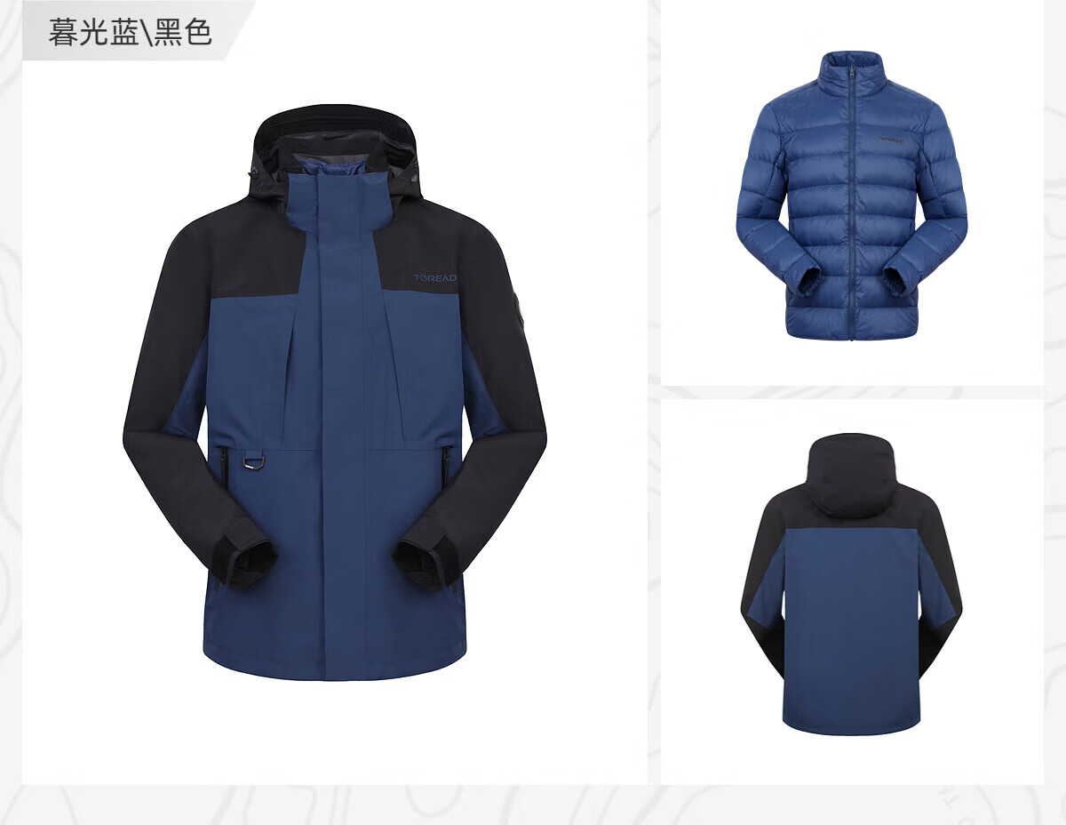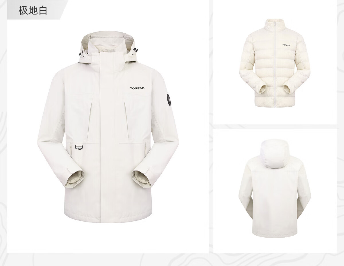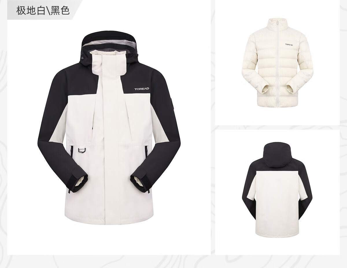 探路者(TOREAD)冲锋衣男三合一套羽绒内胆外套秋冬户外防风保暖登山服女 极地白黑色 鸭绒内胆 L 抗寒-20℃