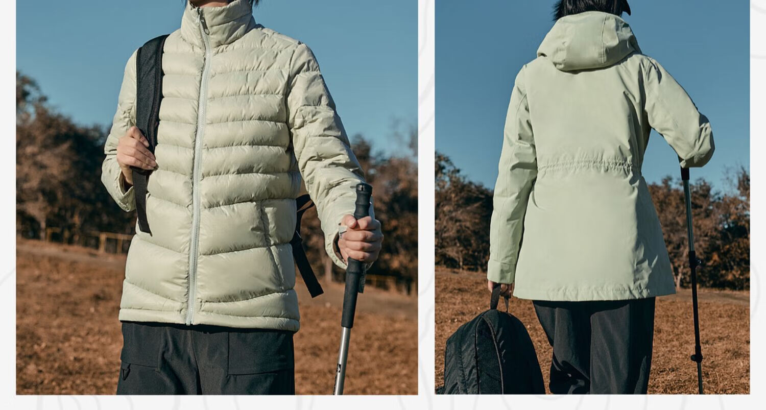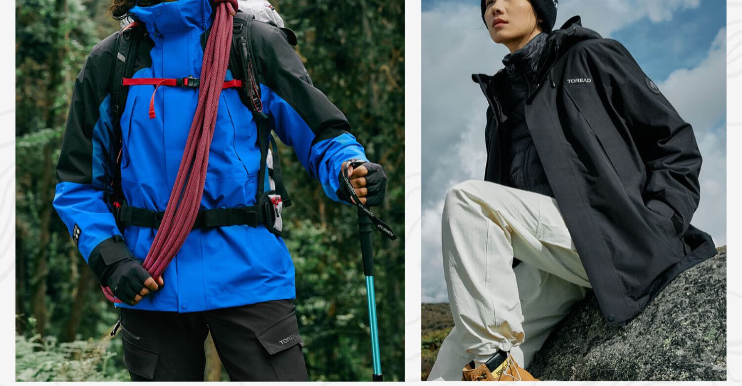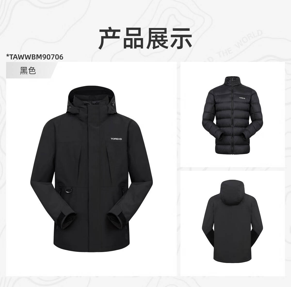 探路者(TOREAD)冲锋衣男三合一套羽绒内胆外套秋冬户外防风保暖登山服女 极地白黑色 鸭绒内胆 L 抗寒-20℃