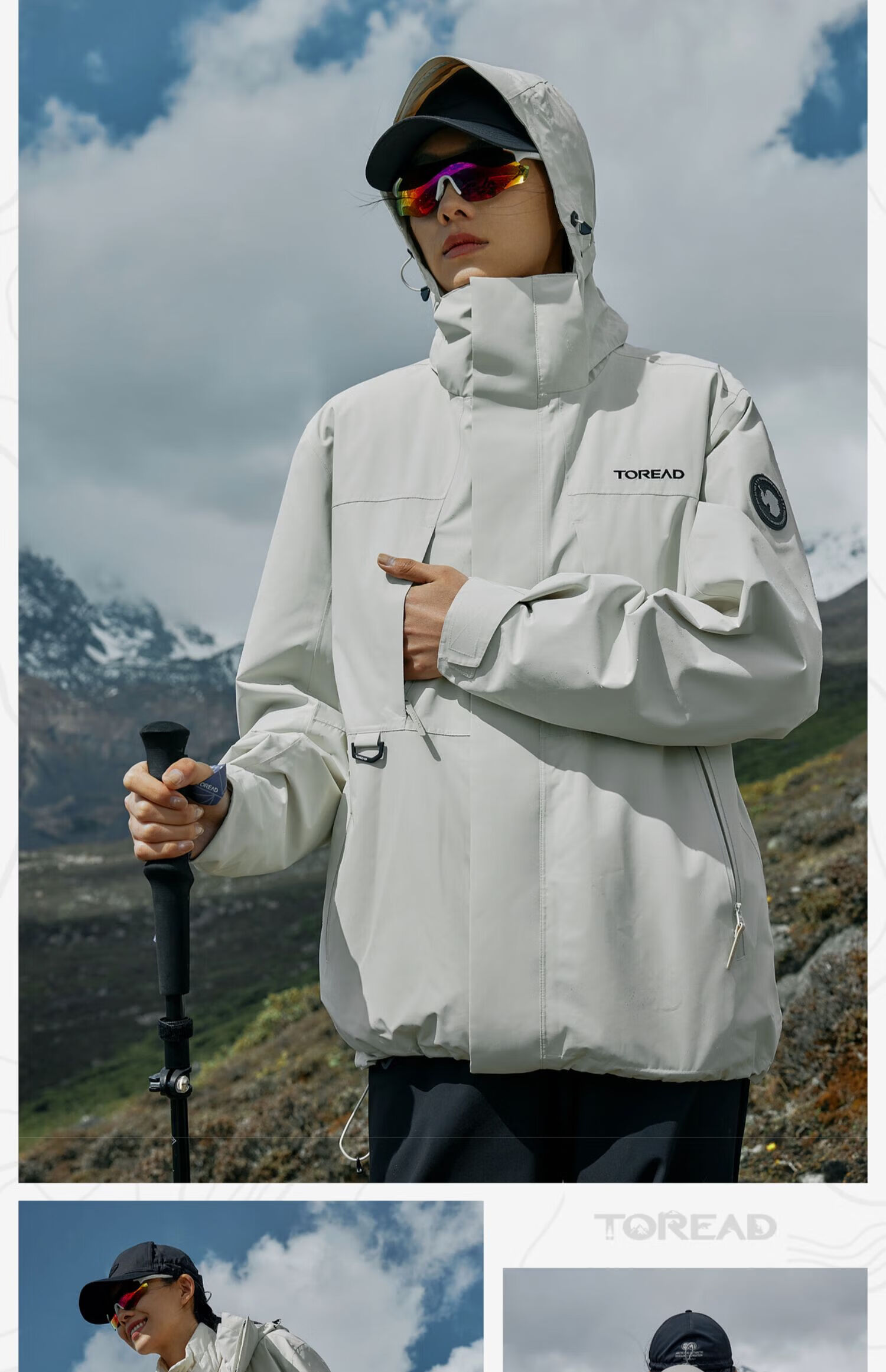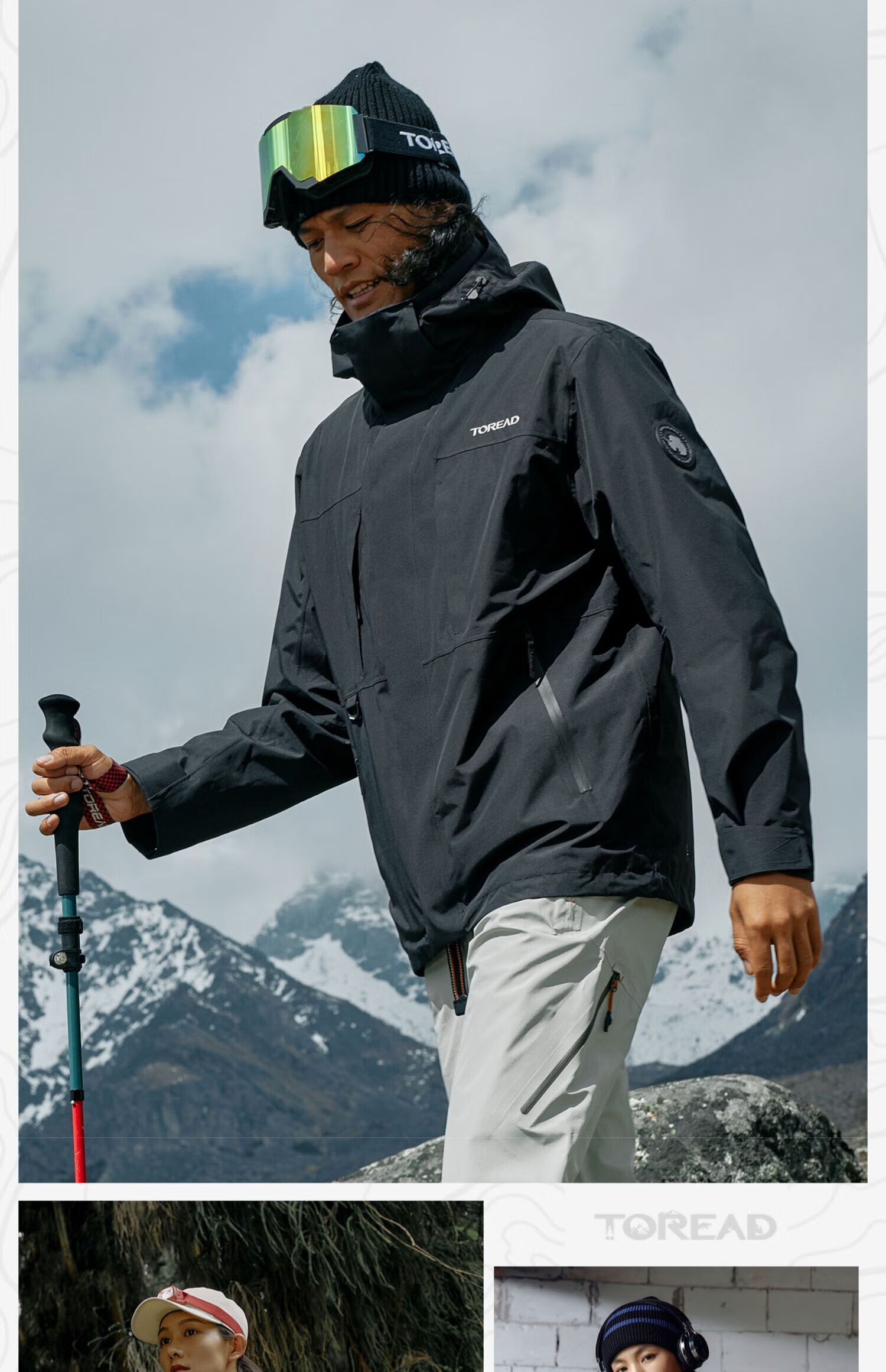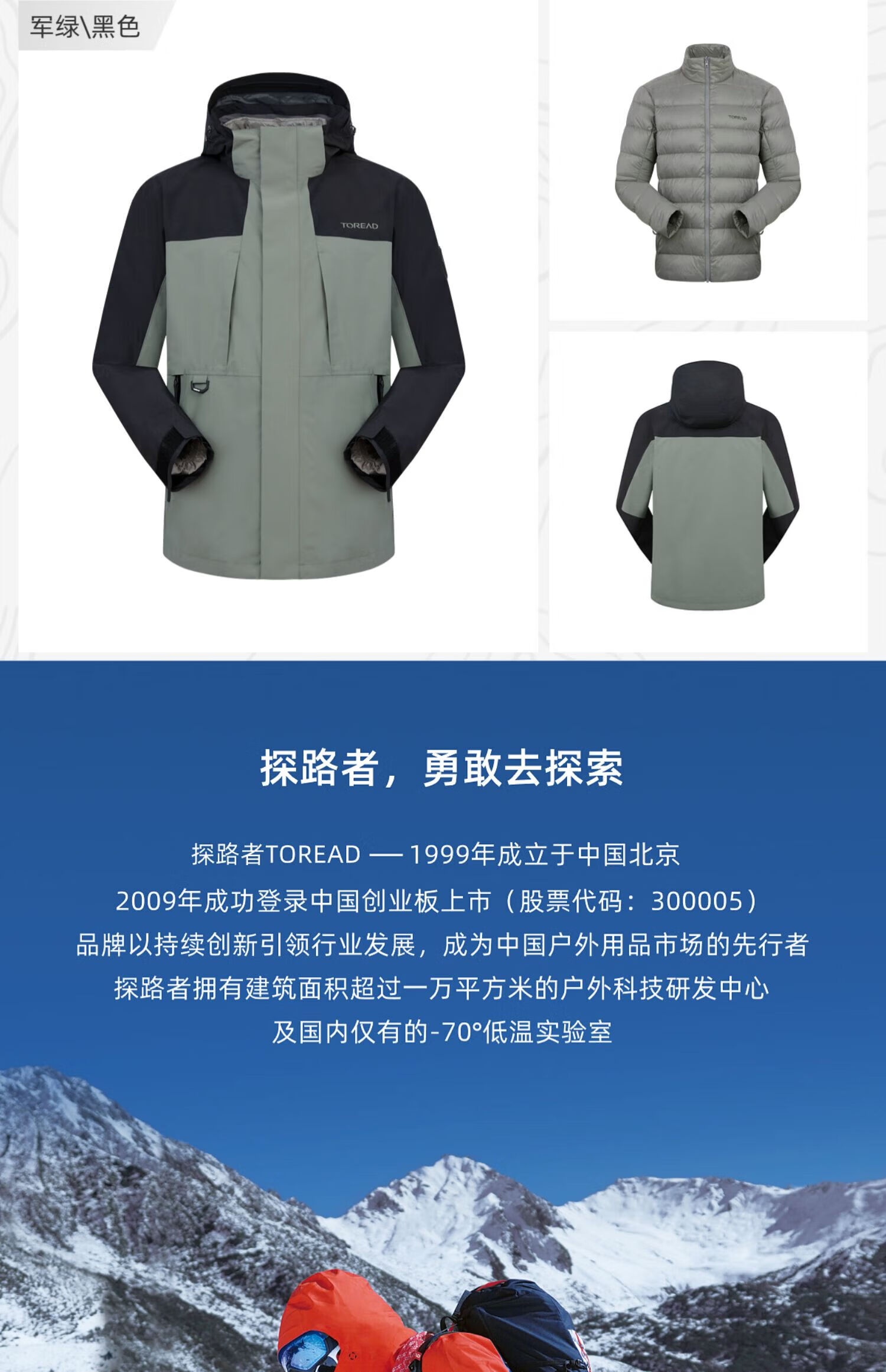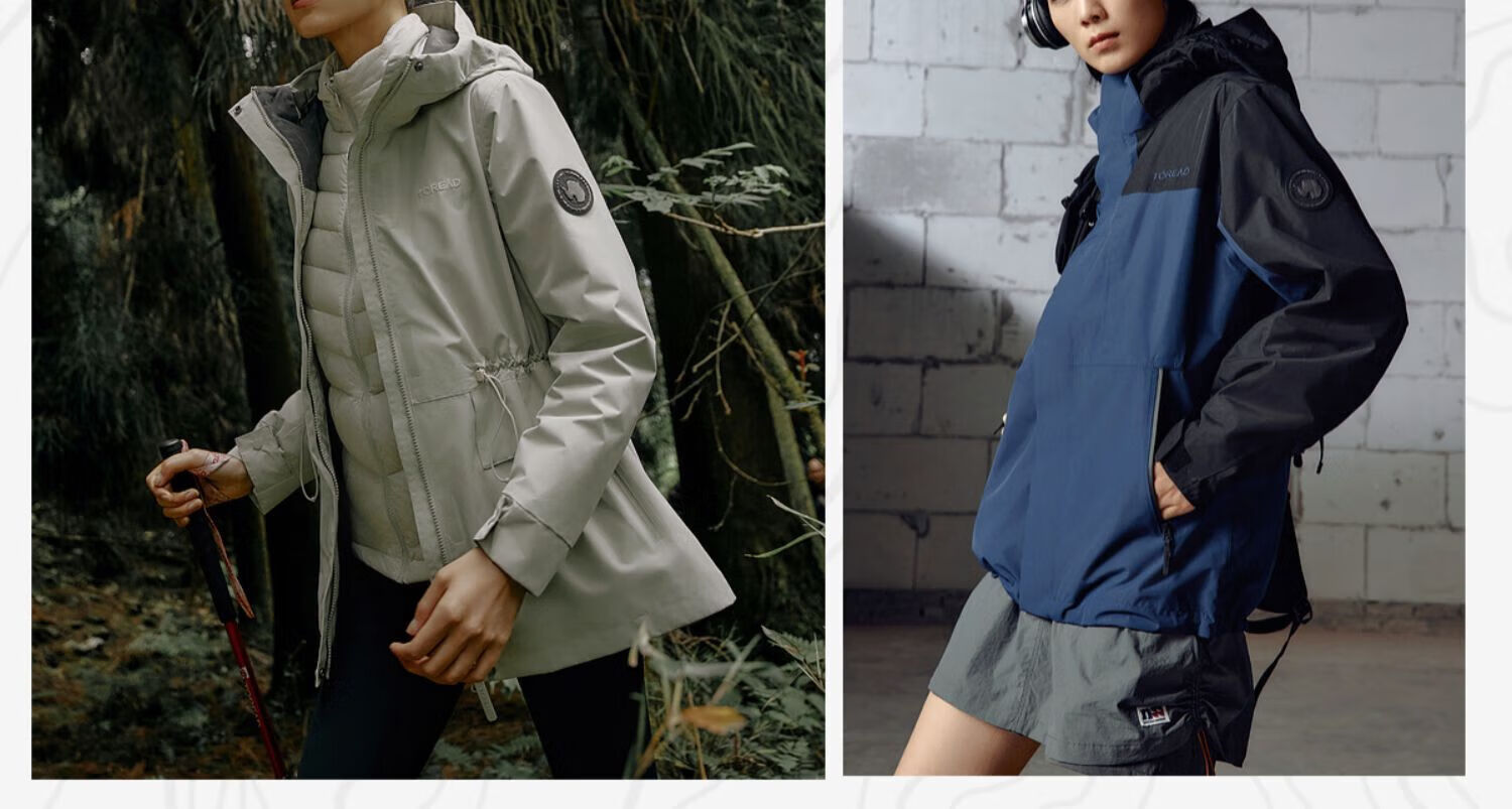 探路者(TOREAD)冲锋衣男三合一套羽绒内胆外套秋冬户外防风保暖登山服女 极地白黑色 鸭绒内胆 L 抗寒-20℃