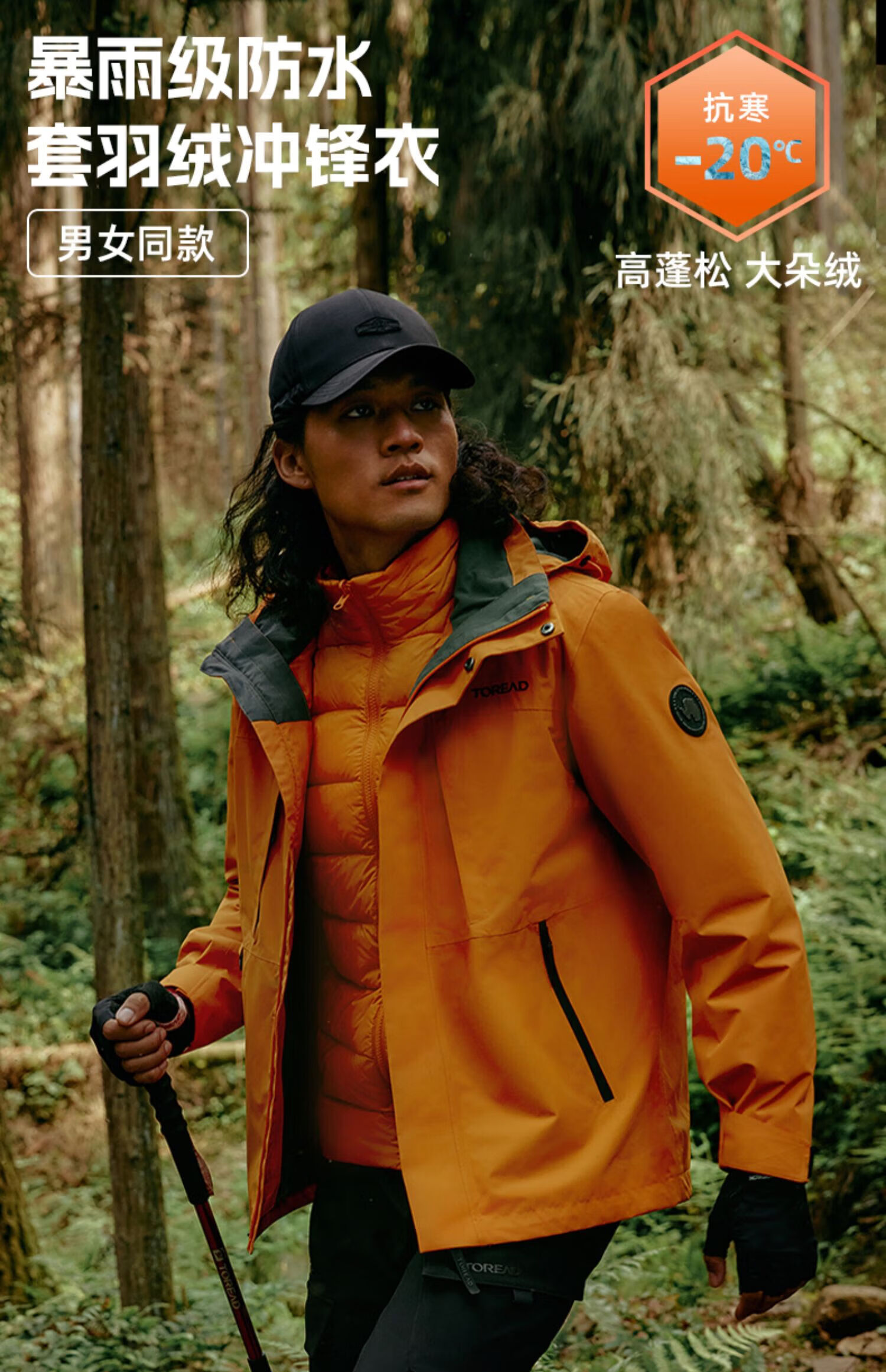 探路者(TOREAD)【暴雪】羽绒服男保暖抗寒防风鹅绒外套户外防泼水锁温科技防寒服 云杉橘 鹅绒 XS 抗寒-30℃