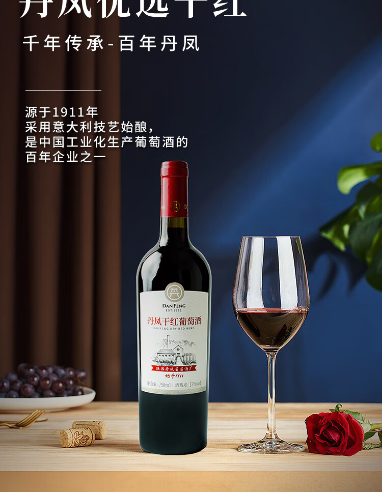 丹凤【年货节】丹凤葡萄酒优选干红赤霞珠国产干红葡萄酒聚会自饮 优选 干红整箱750ml*6