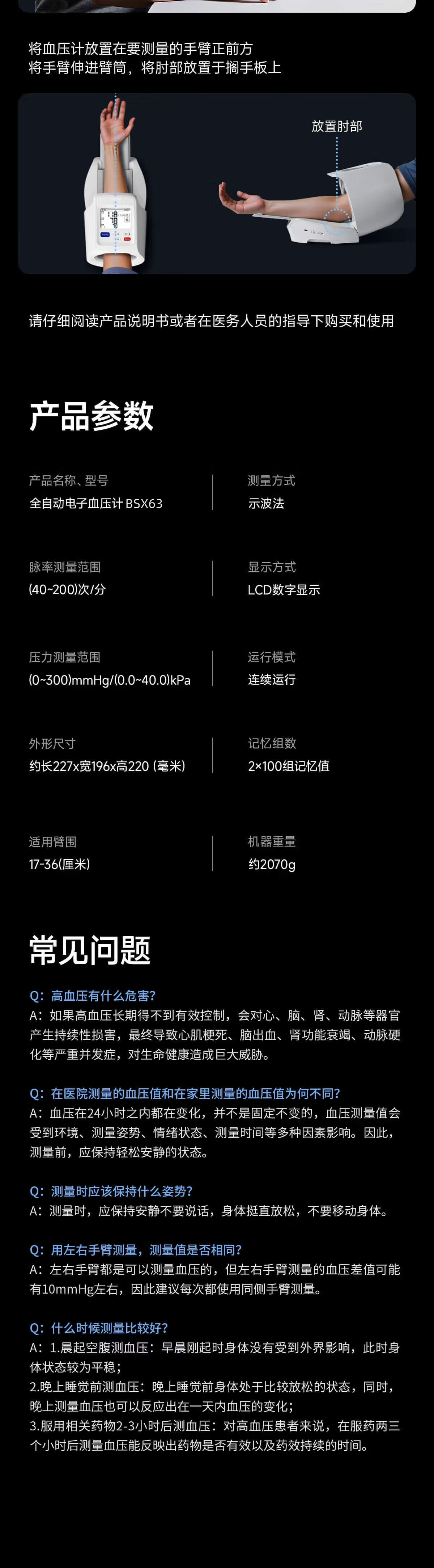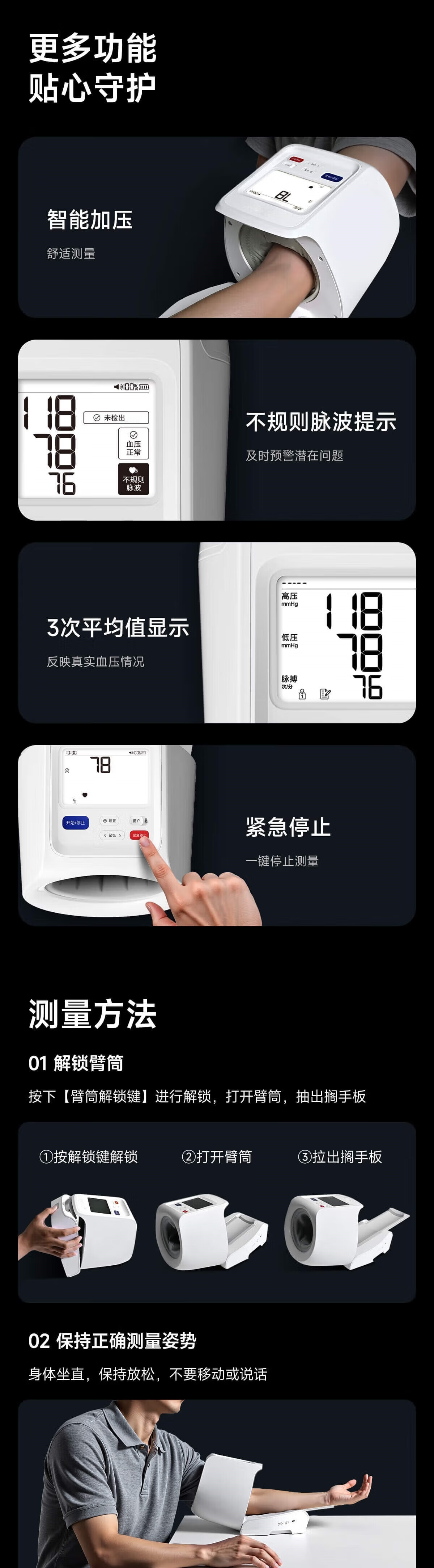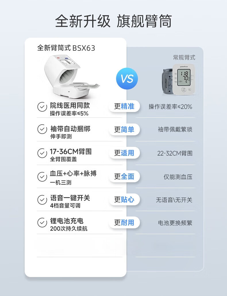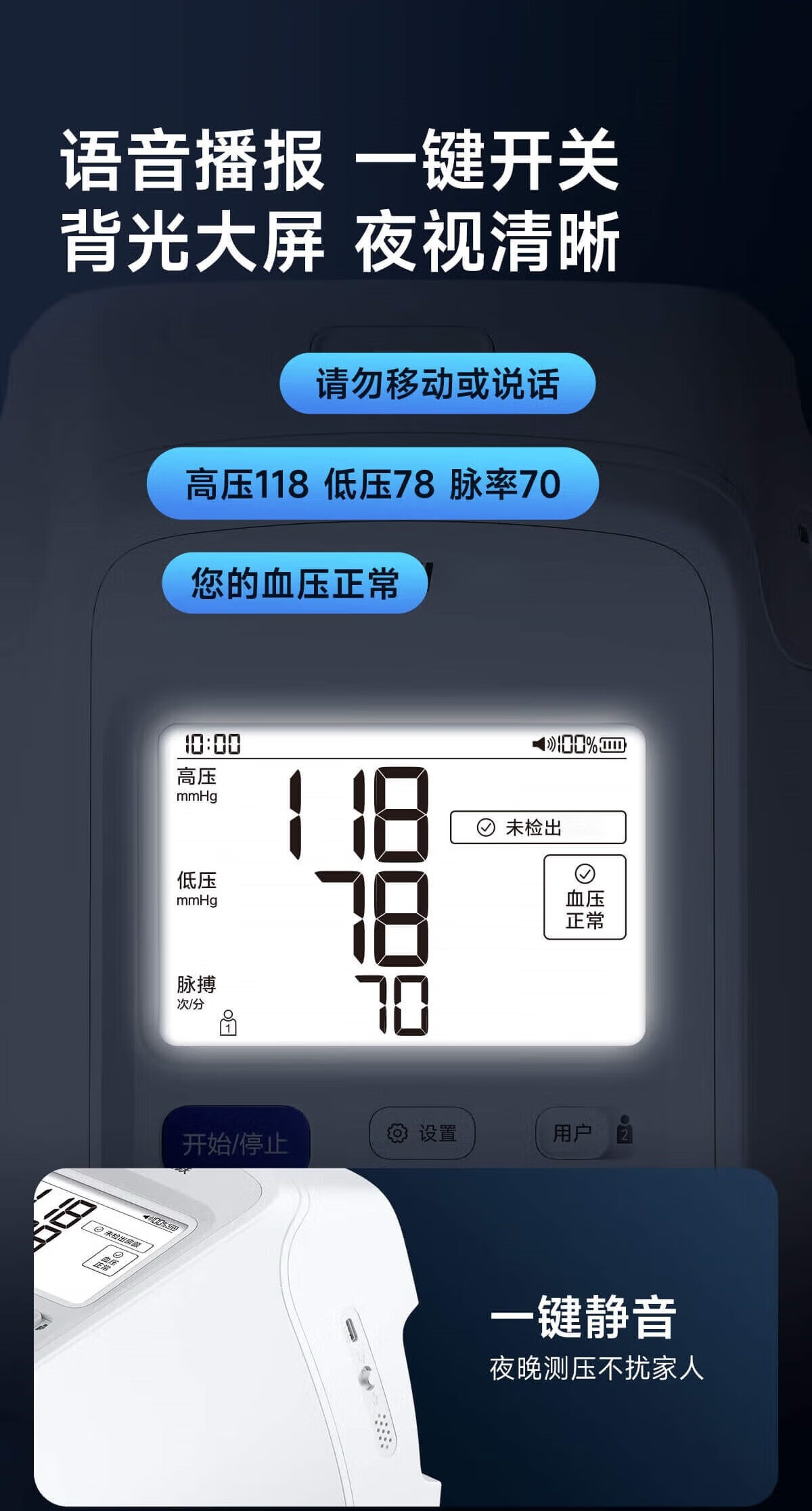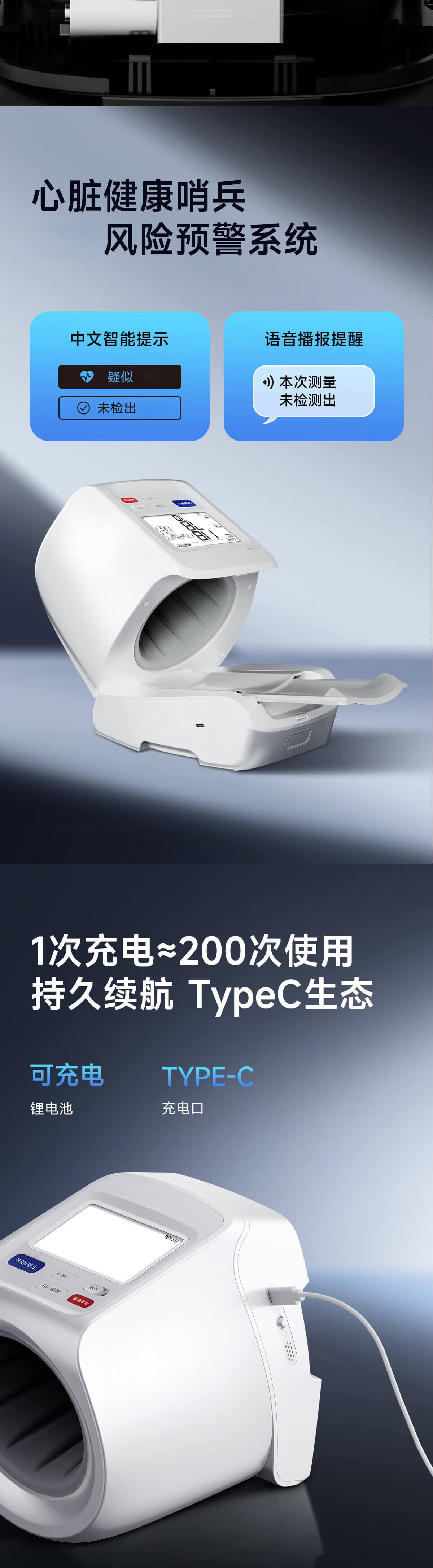 臂筒式血压计全自动电子家用血压仪高精准老人语音充电 院线臂筒式加强版