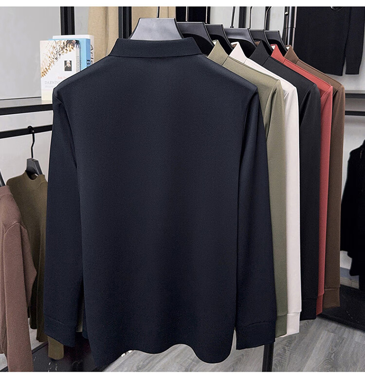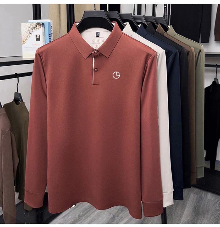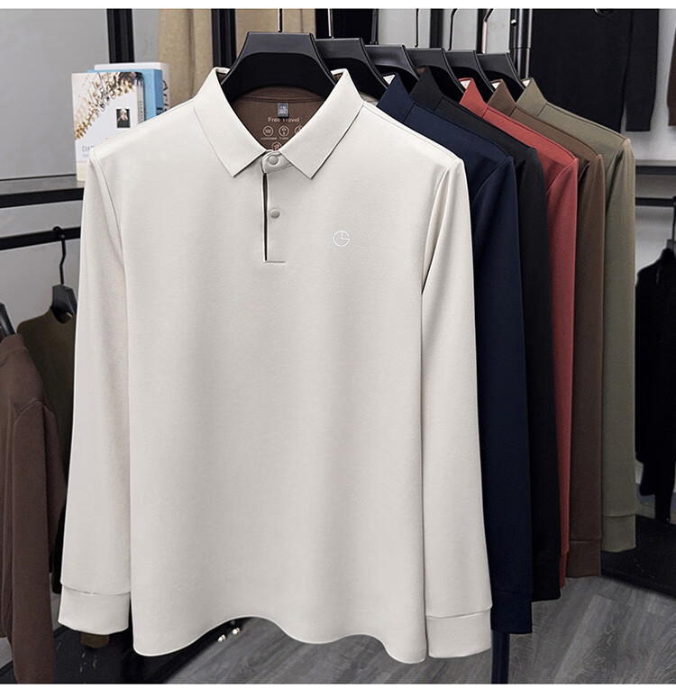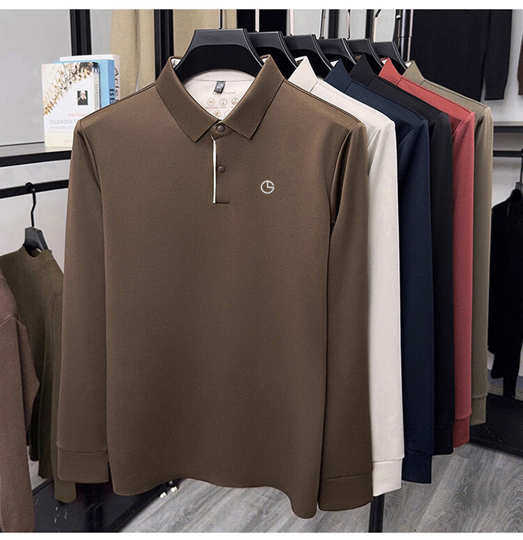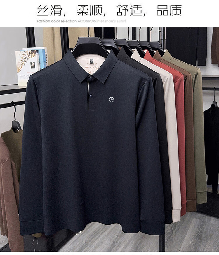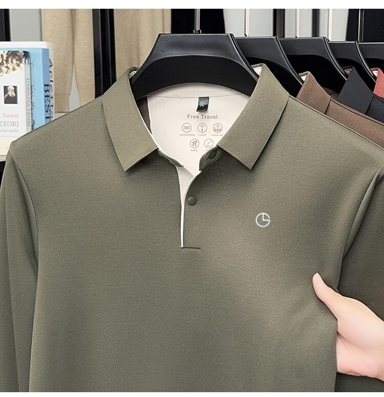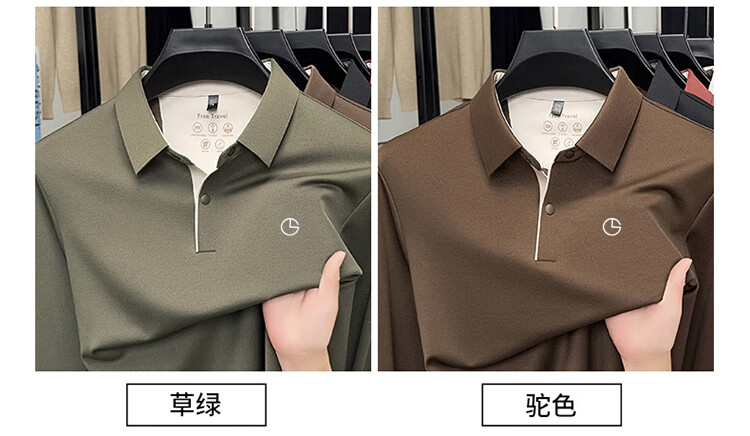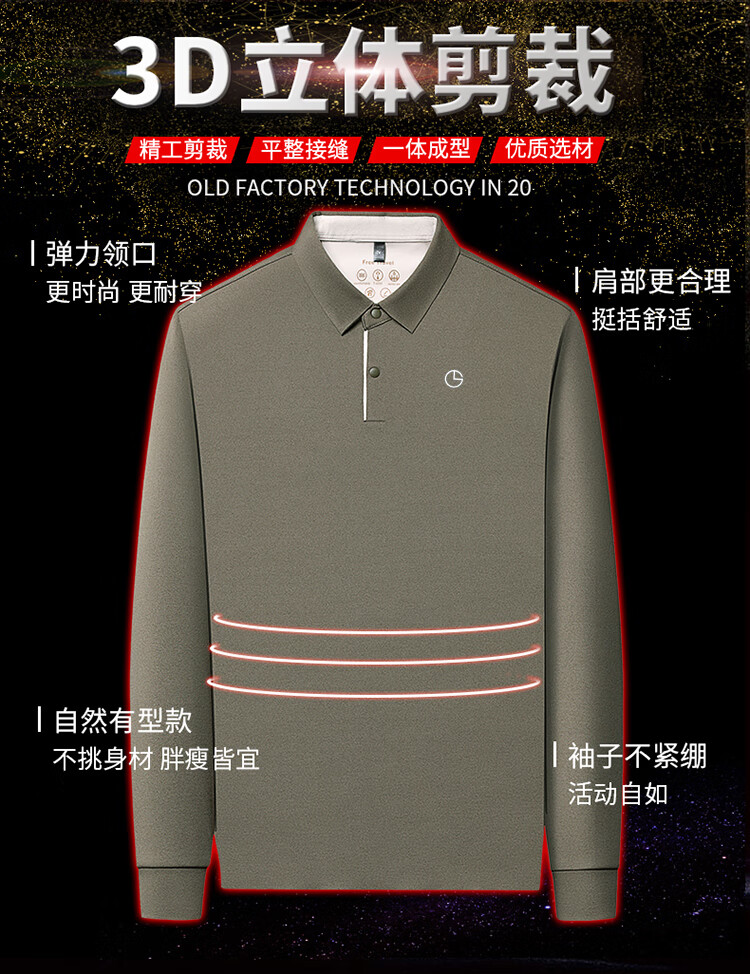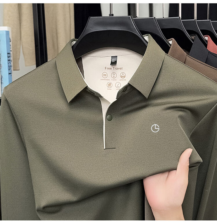 金利来秋季男士长袖T恤2025新款商务休闲翻领纯色POLO衫上衣 草绿 4XL 推荐190-210斤