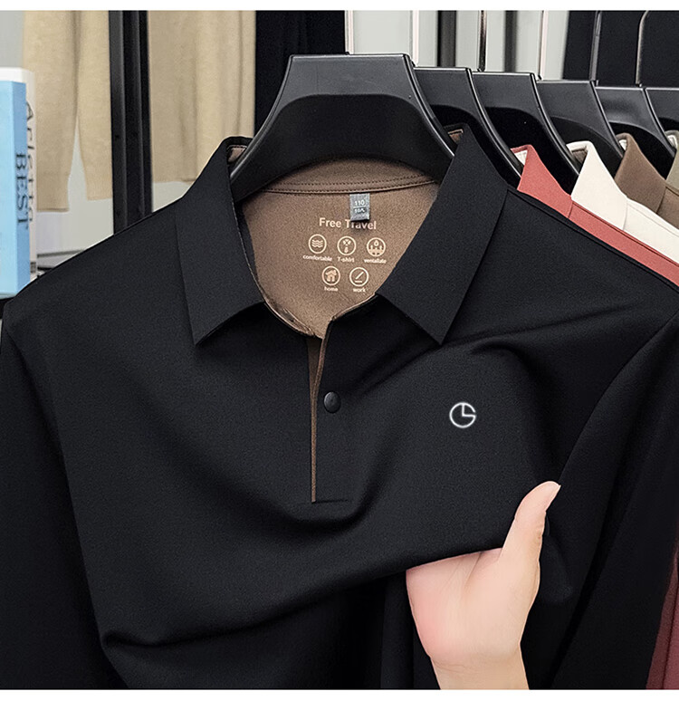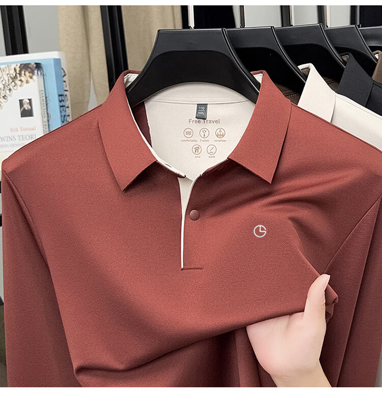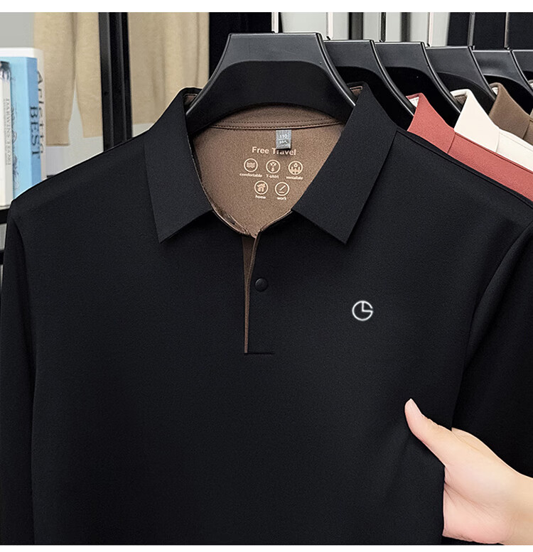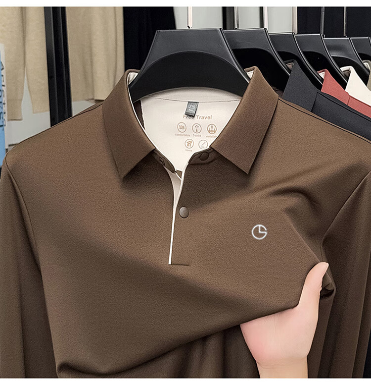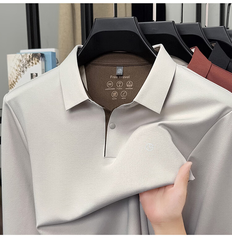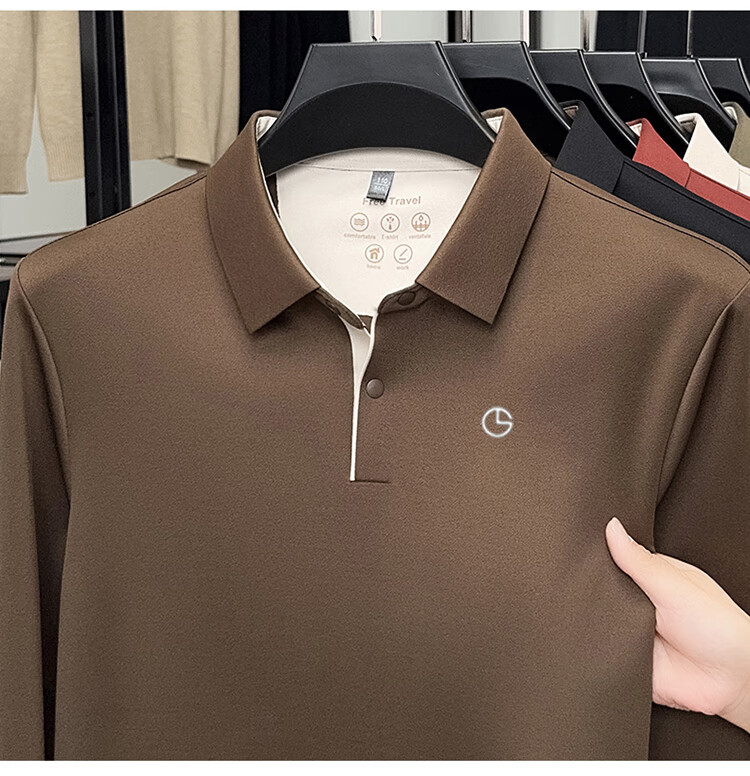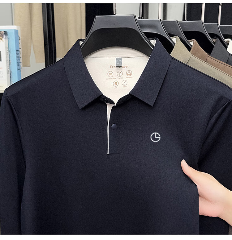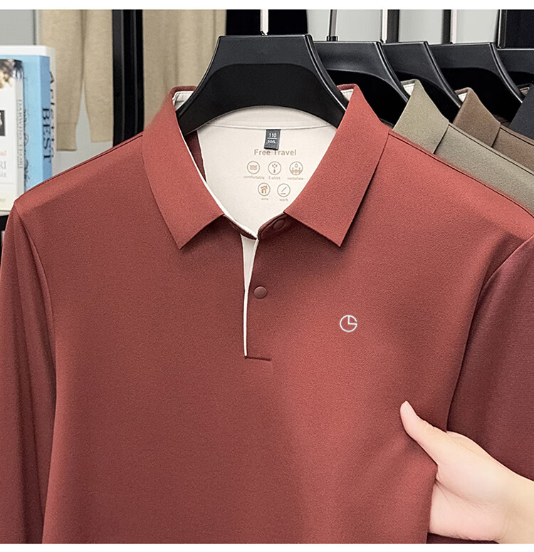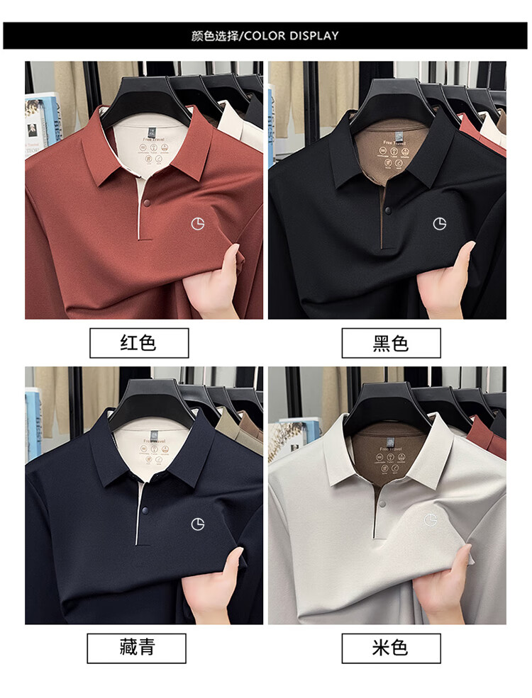 金利来秋季男士长袖T恤2025新款商务休闲翻领纯色POLO衫上衣 草绿 4XL 推荐190-210斤