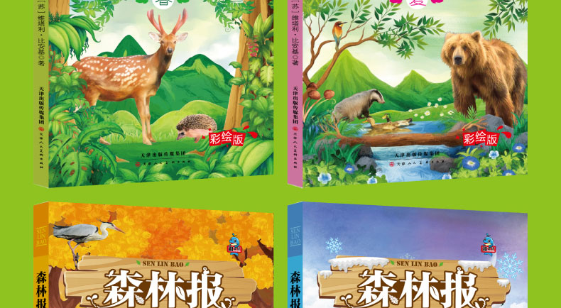 正版4册 森林报春夏秋冬彩绘版小学生二三四五六2-3-4-5-6年级森林报春夏秋冬全四册青少年儿童文学课外书读物8-12岁课外书