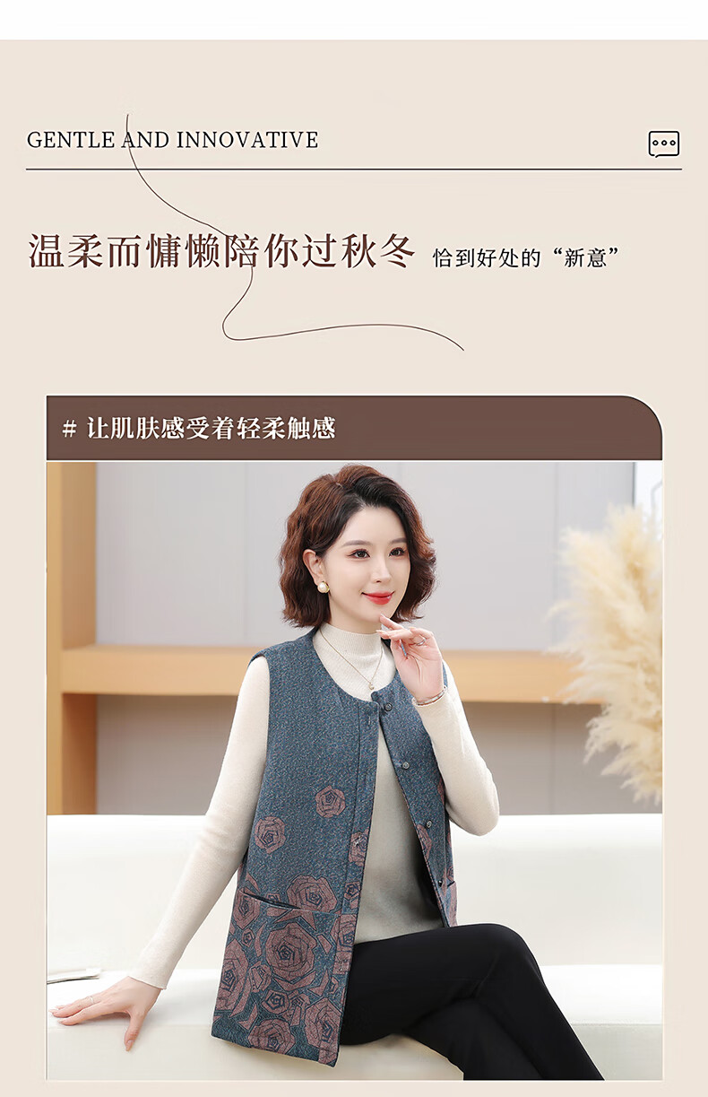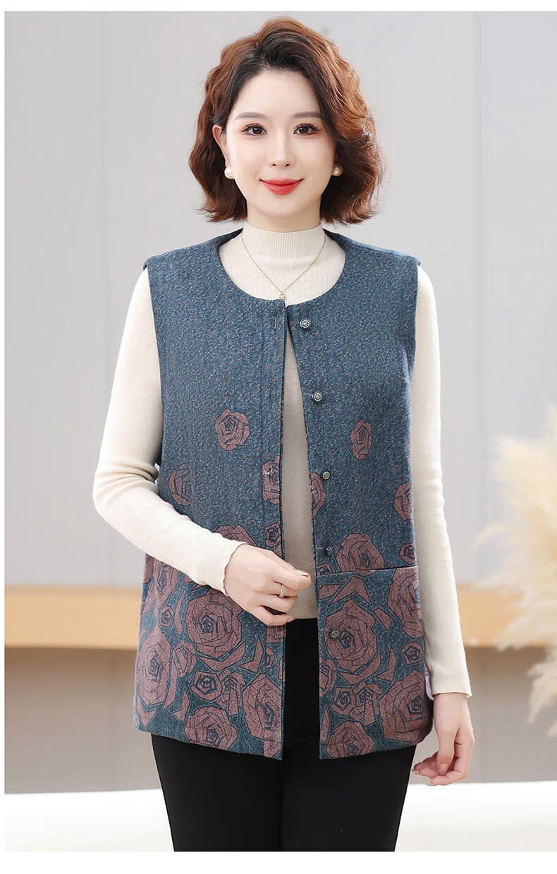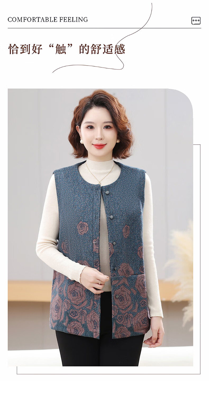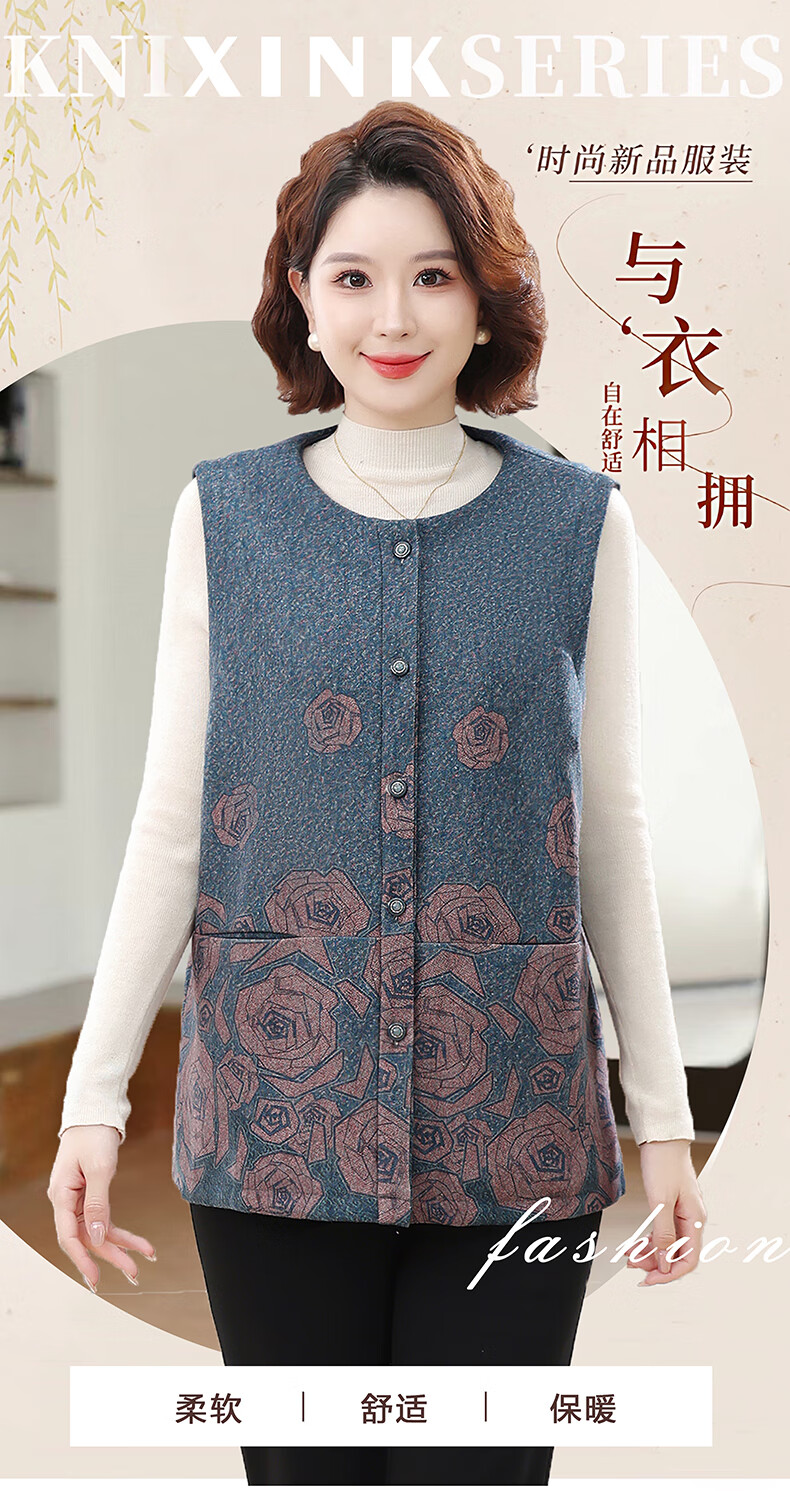 榄舍大码妈妈圆领马甲女秋装加厚款坎肩外套中老年胖太太加肥保暖马夹 红色 7XL (建议210-235斤)