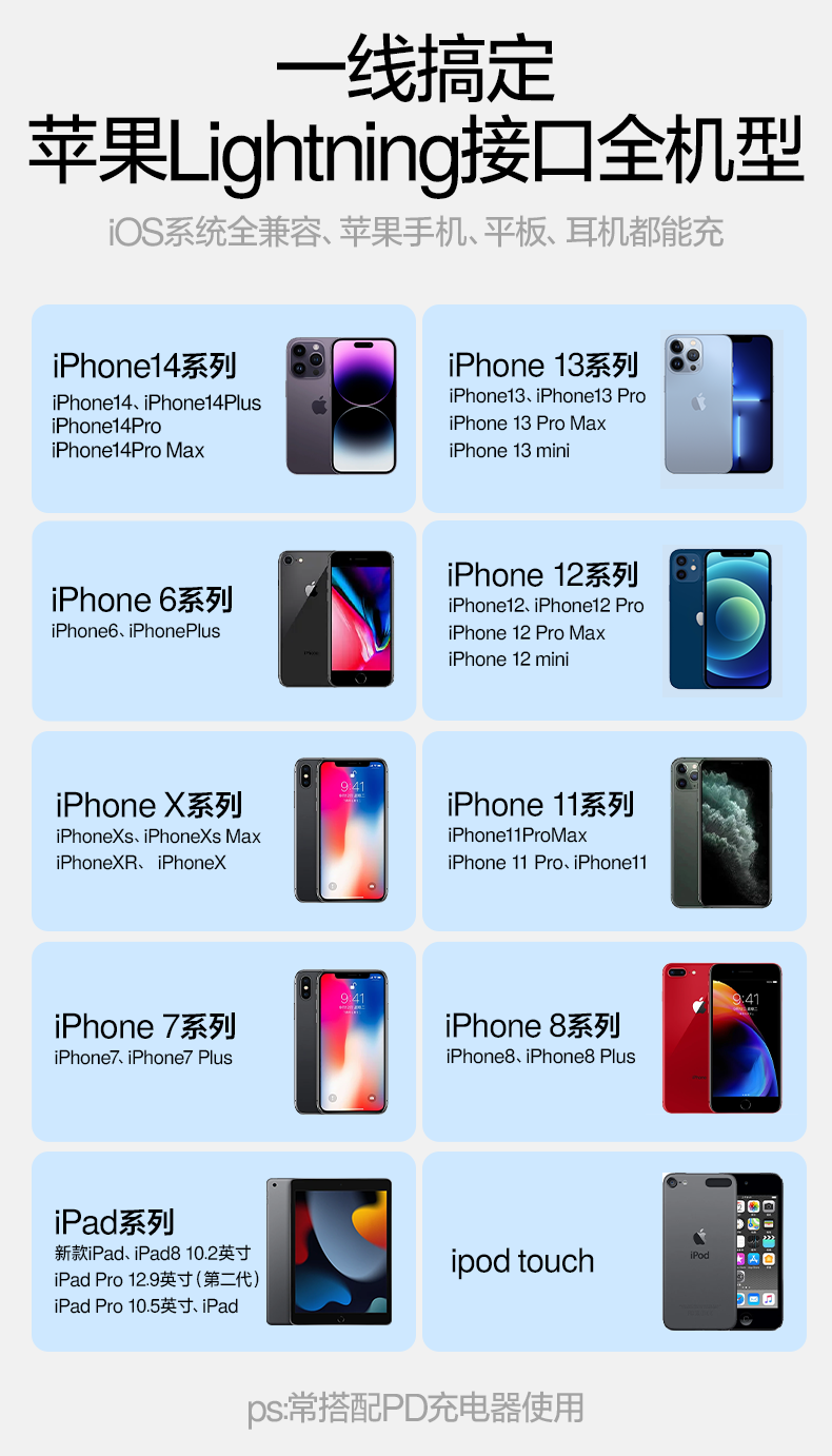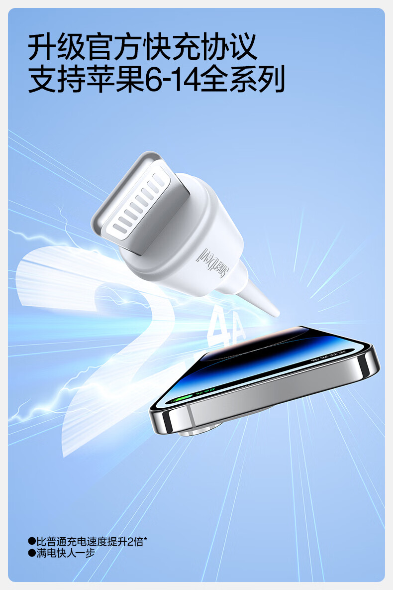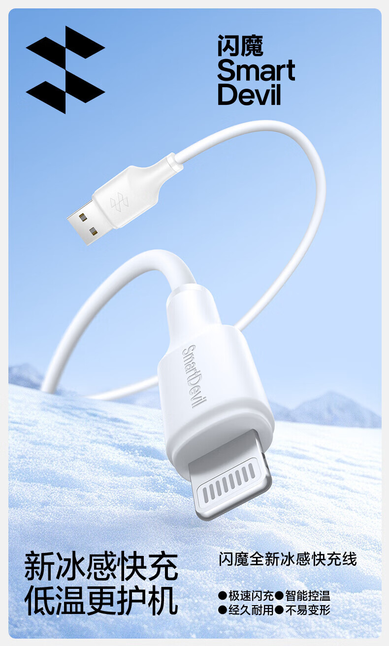 闪魔苹果数据线快充充电线适用iPhone14/13/12ProMax/XR/Xs/11/8手机ipad平板充电器线车载 1m