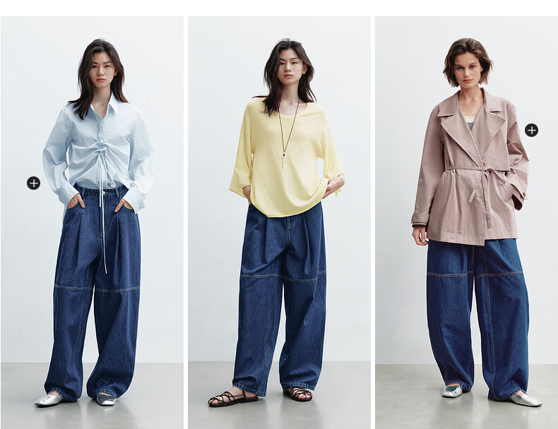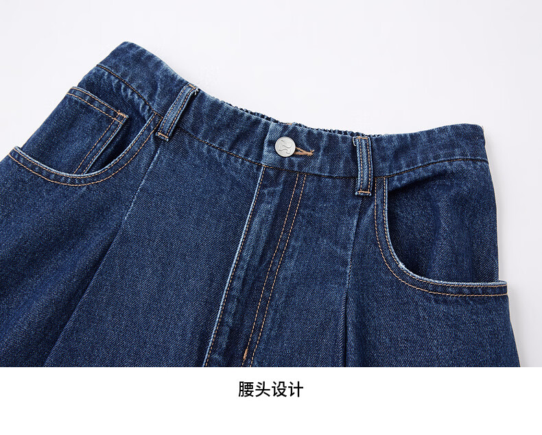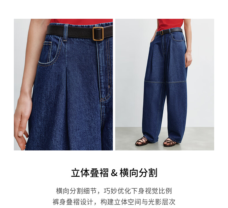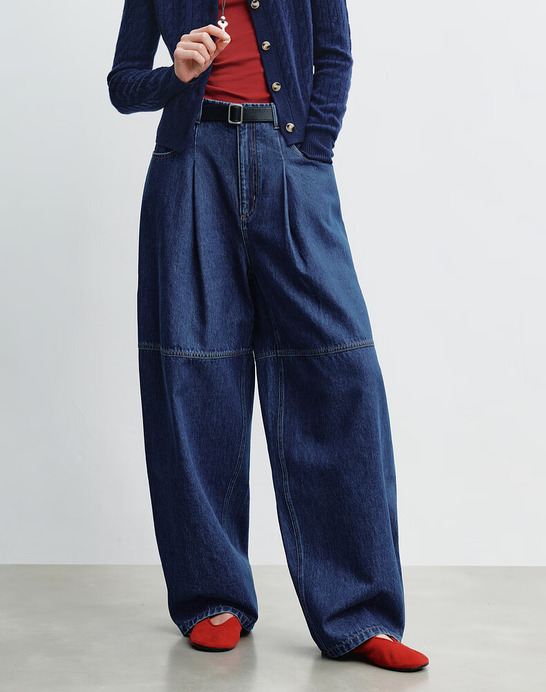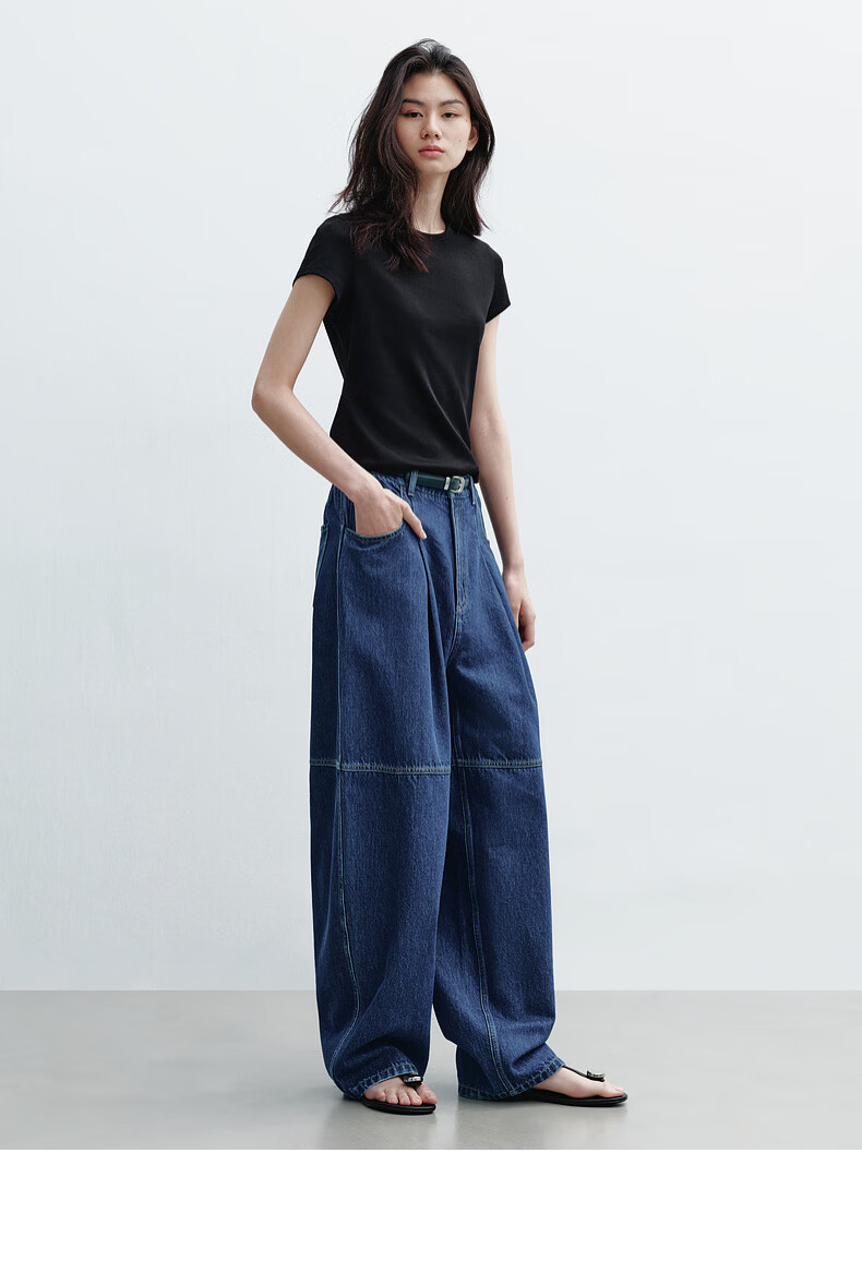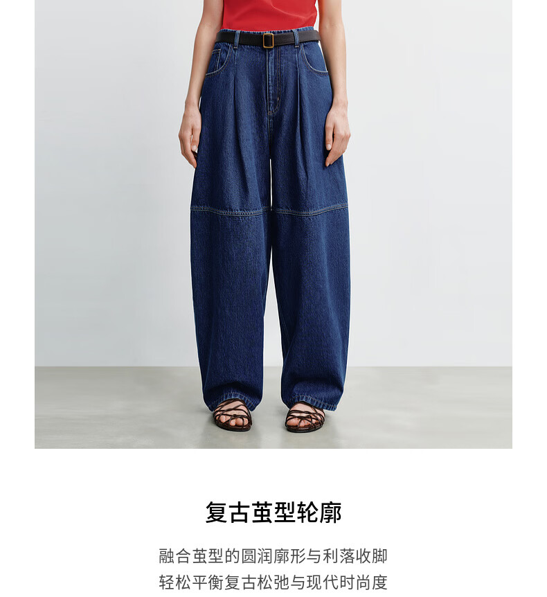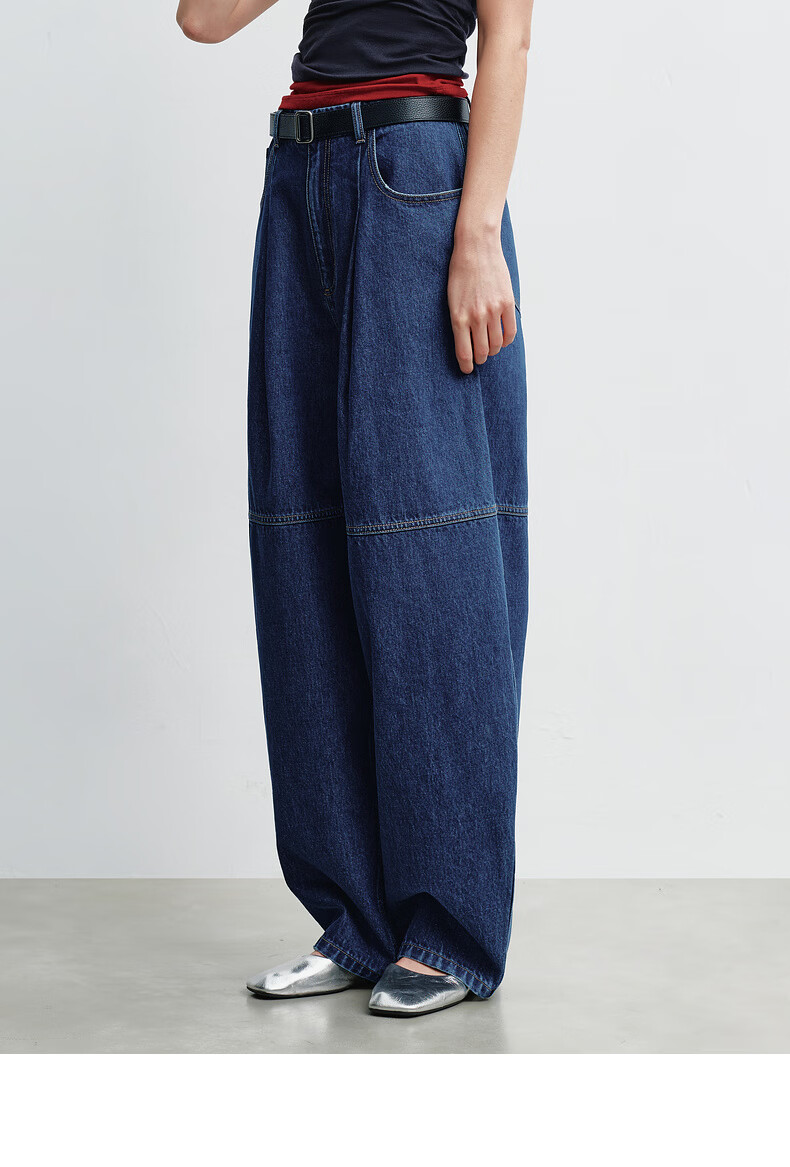 H's蓝色牛仔裤女26春季新款高级设计感复古茧型廓形宽松阔腿萝卜裤 牛仔蓝 L