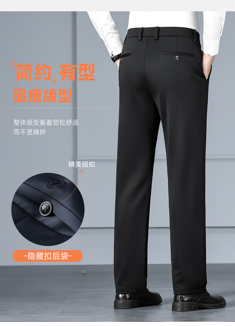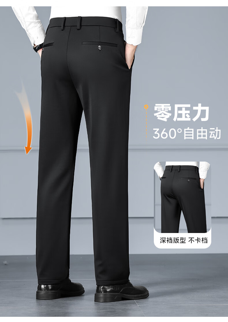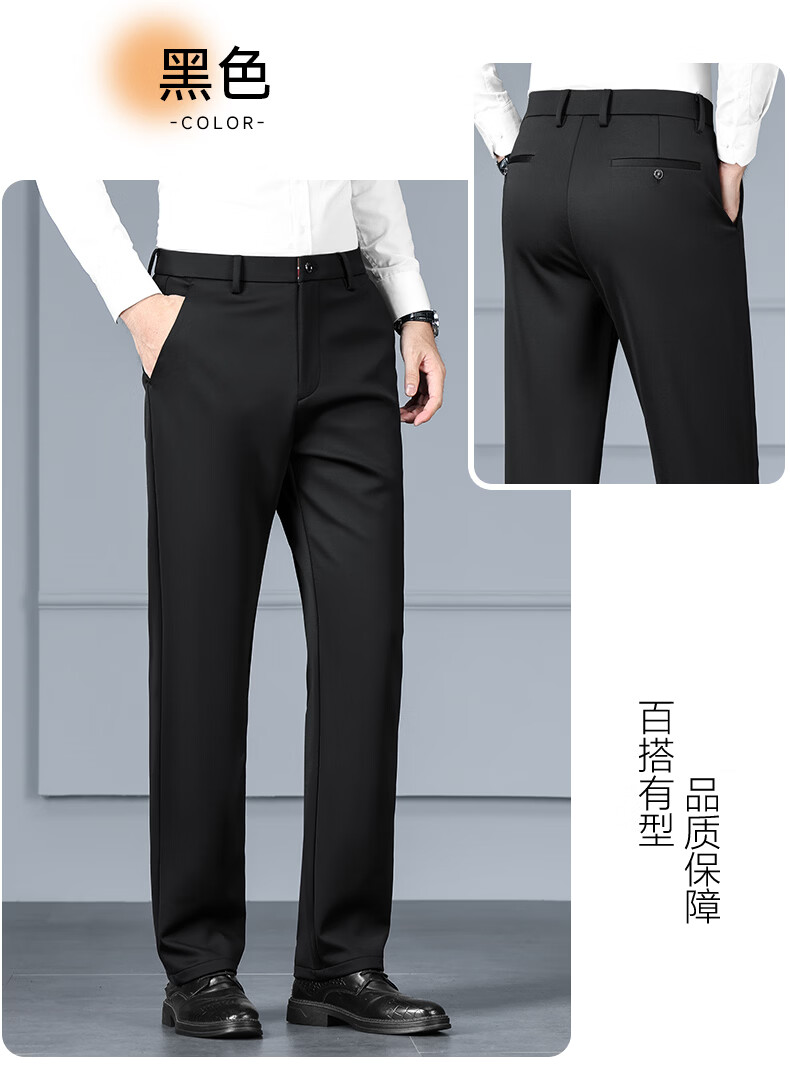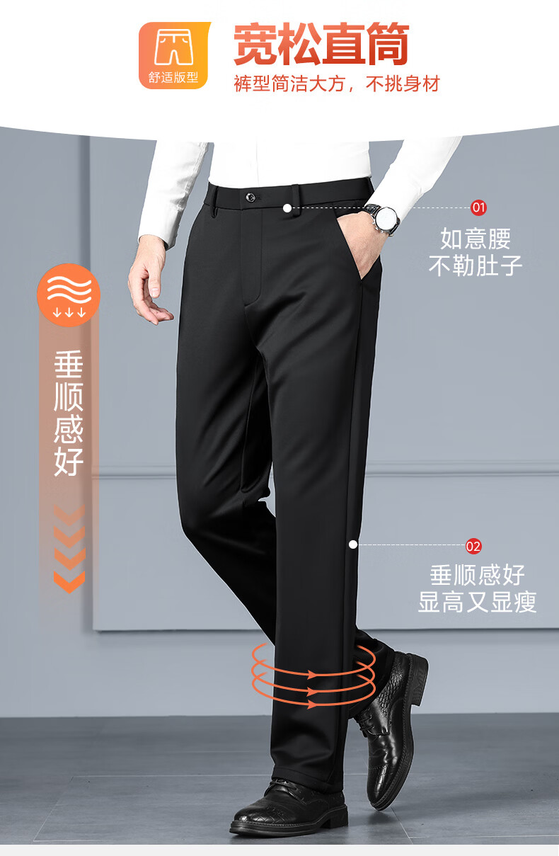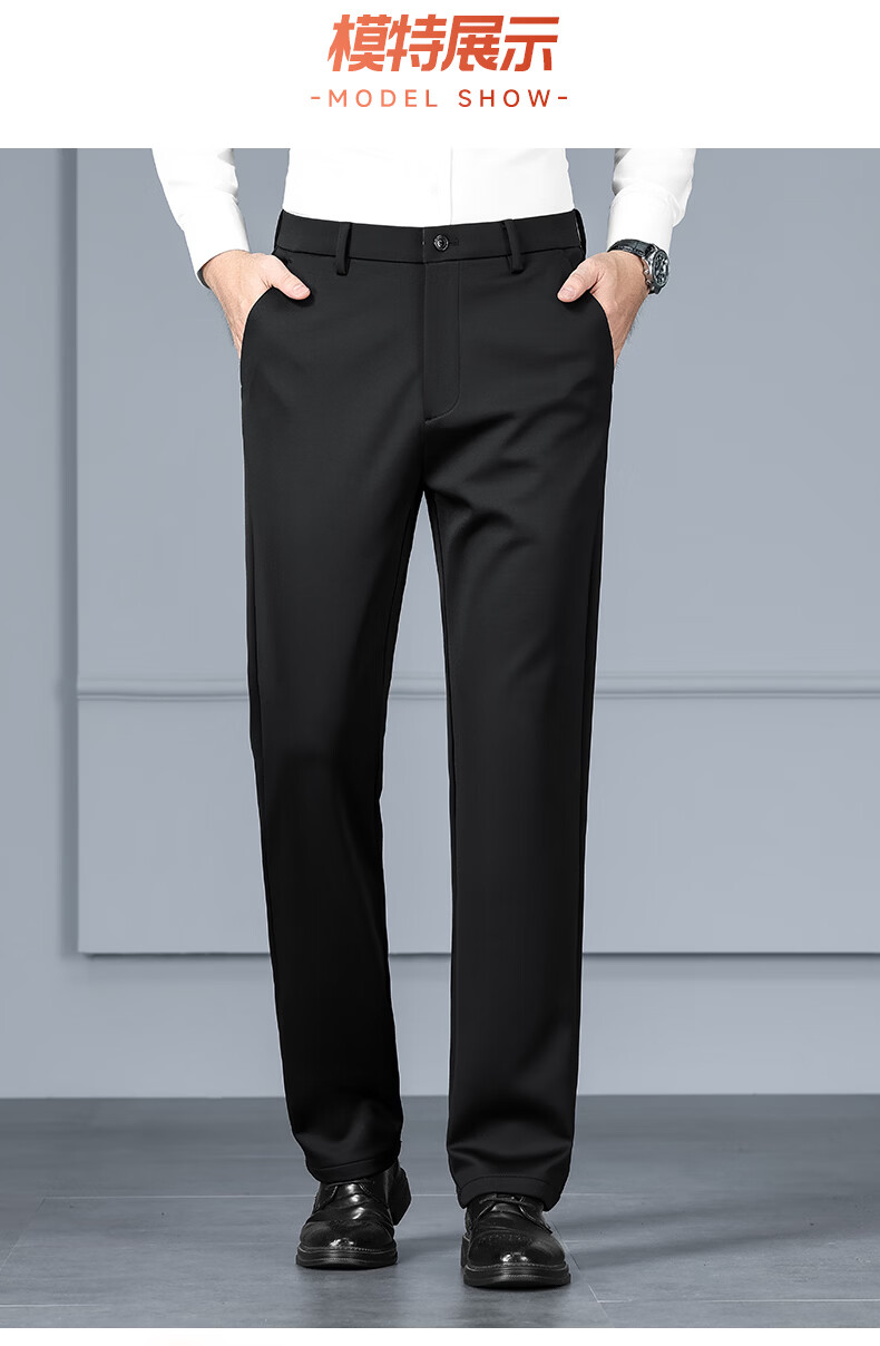 SHANSHAN杉杉男士直筒裤2026春季新款含桑蚕丝+羊毛日常通勤休闲百搭长裤 黑色 36