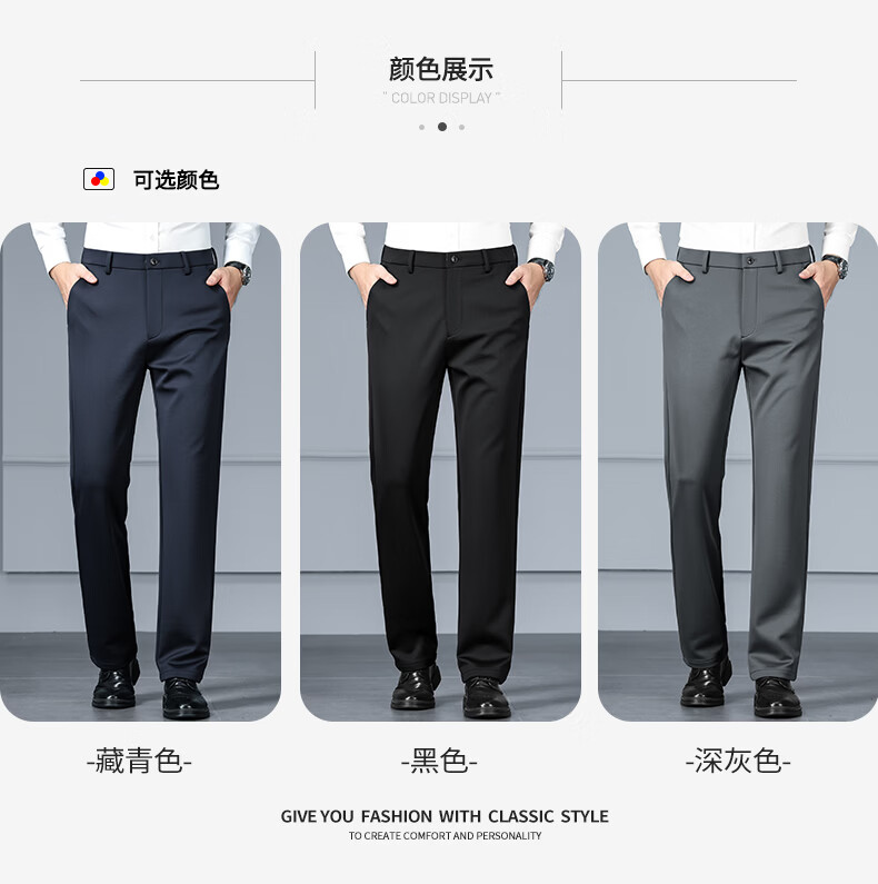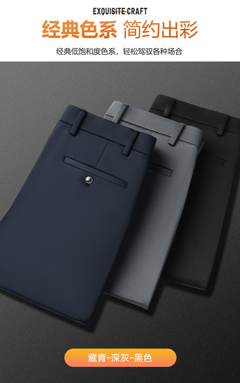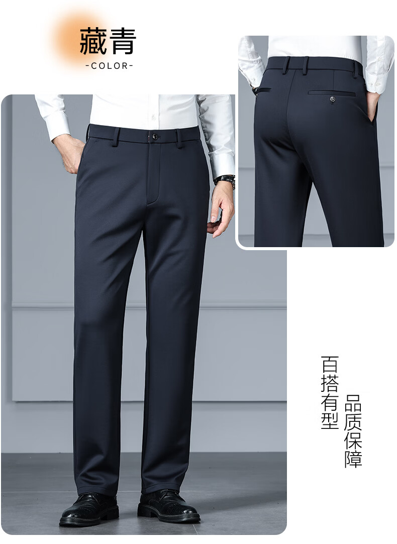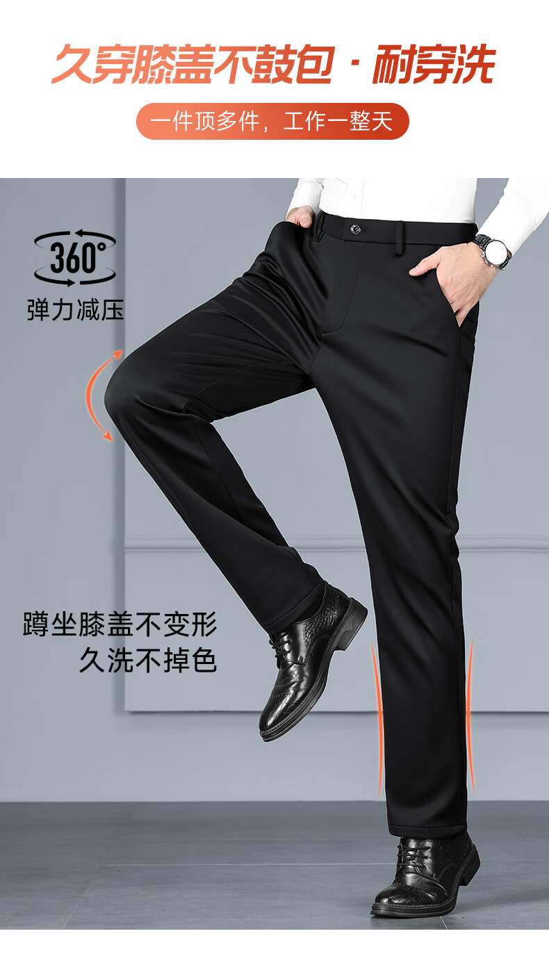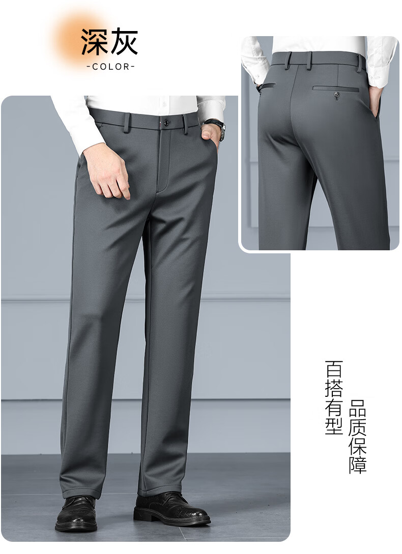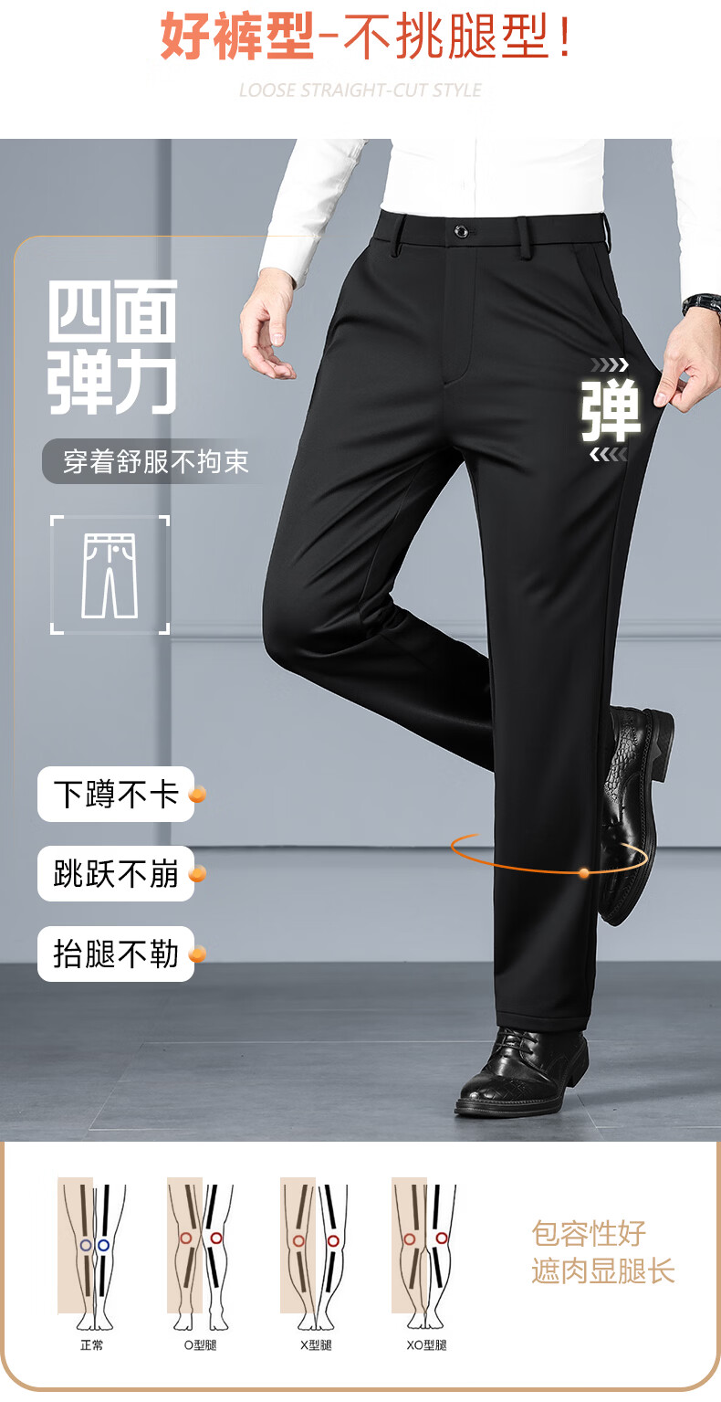 SHANSHAN杉杉男士直筒裤2026春季新款含桑蚕丝+羊毛日常通勤休闲百搭长裤 黑色 36