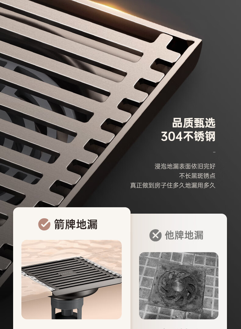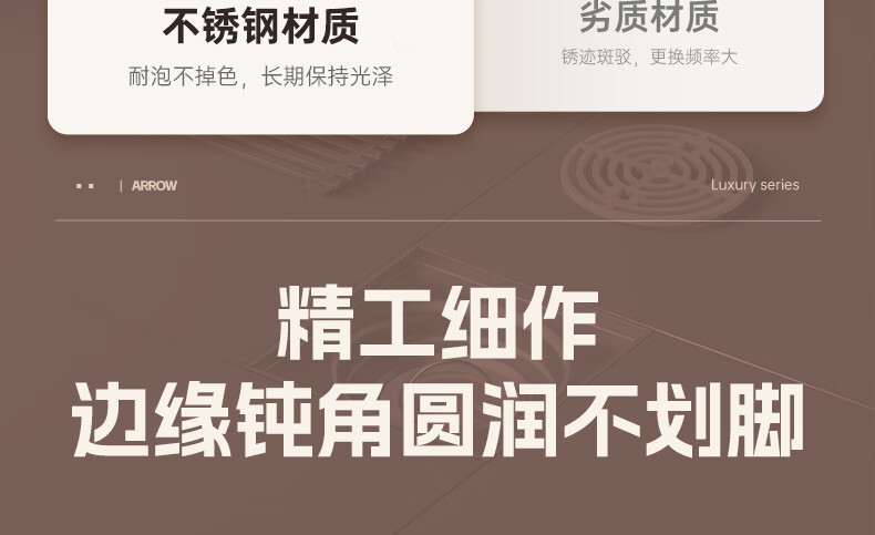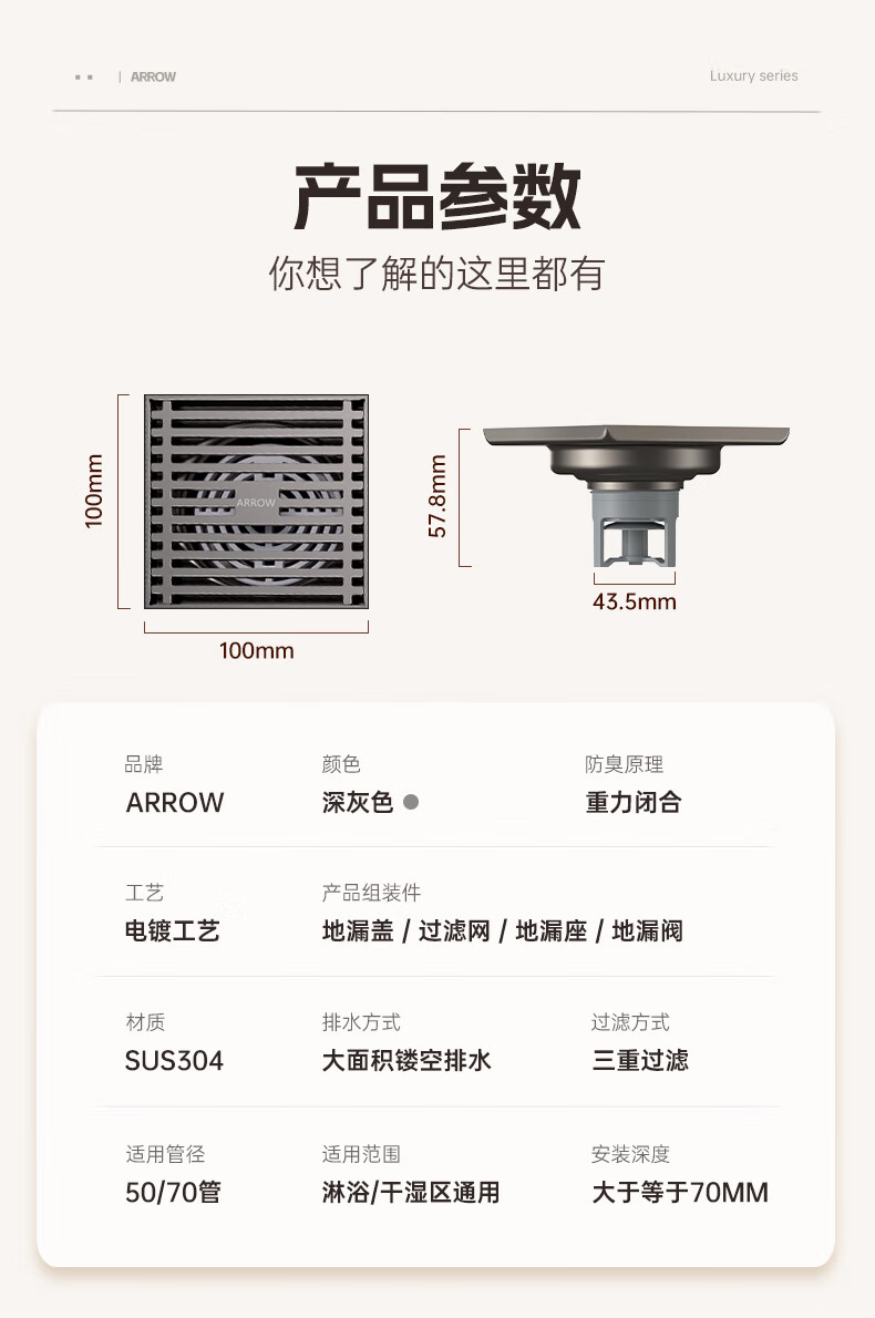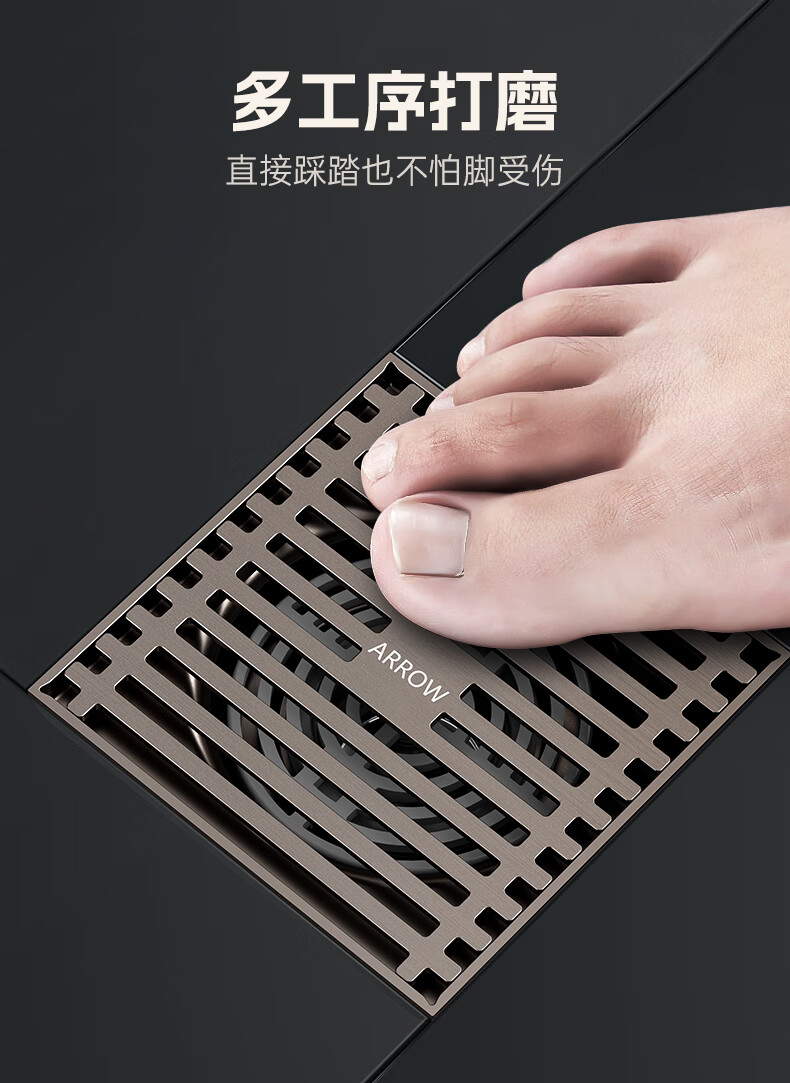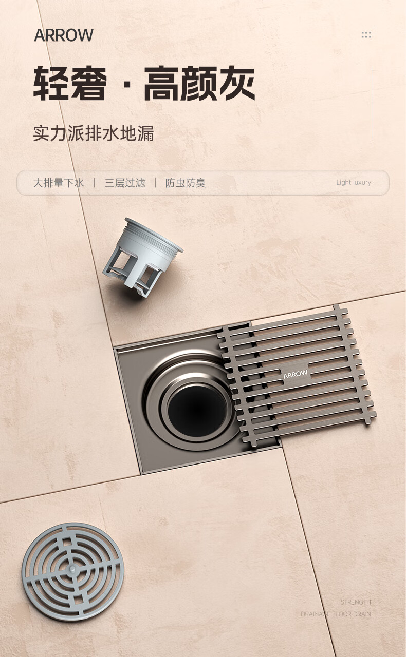 箭牌(ARROW)地漏304不锈钢拉丝防臭地漏卫生间淋浴大排量地漏50管径AE5109MGG