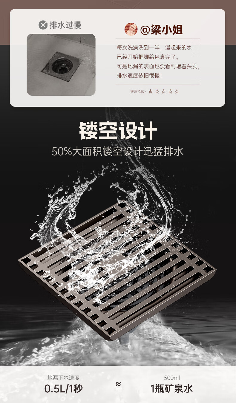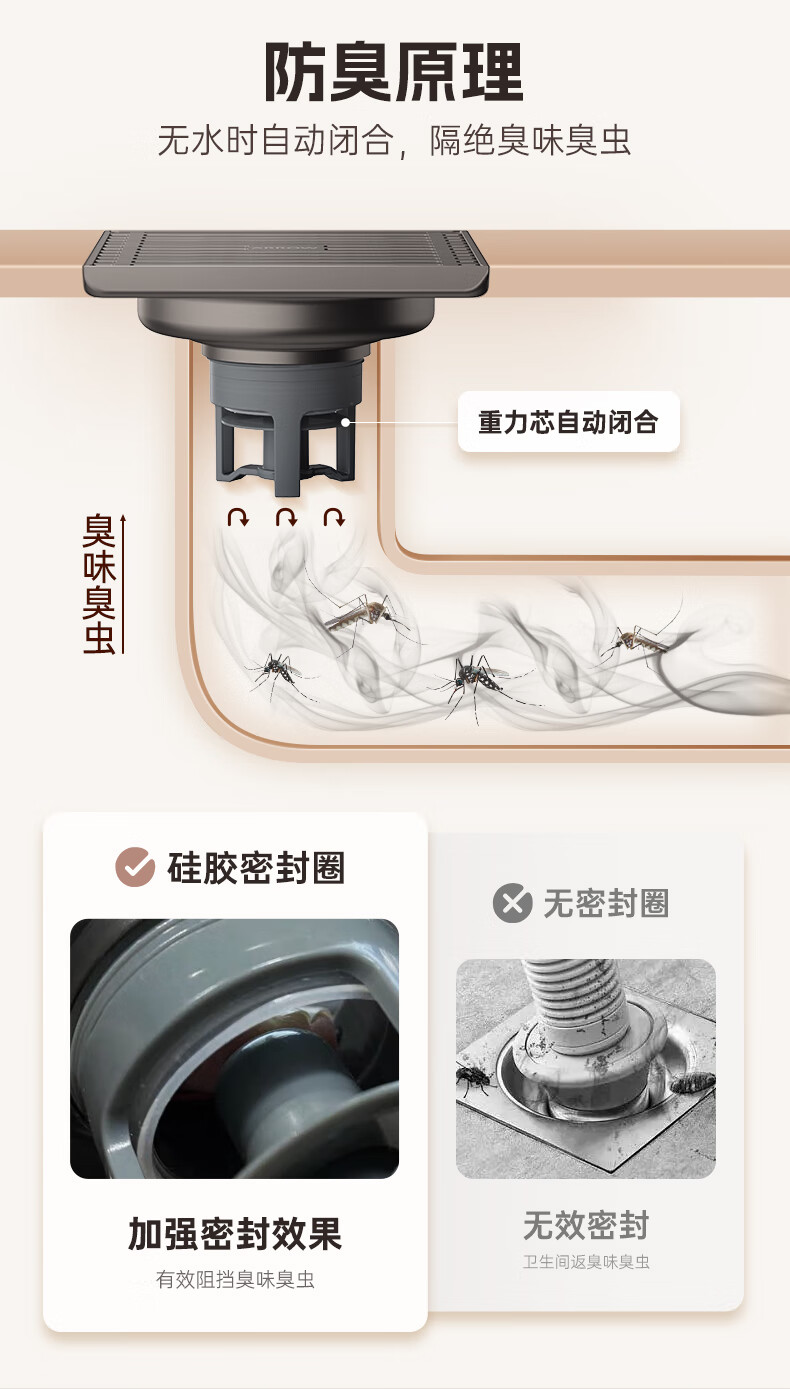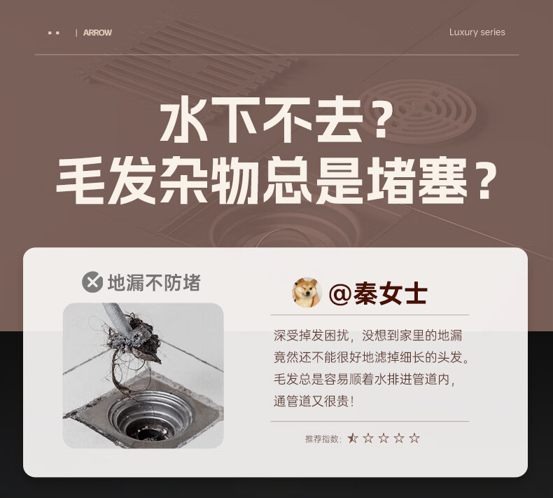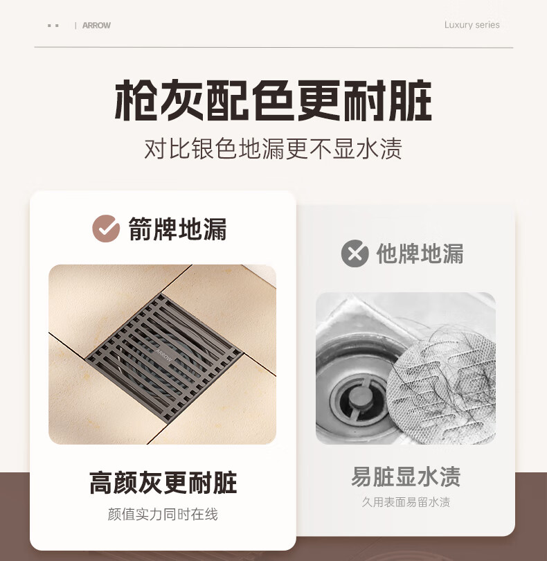 箭牌(ARROW)地漏304不锈钢拉丝防臭地漏卫生间淋浴大排量地漏50管径AE5109MGG