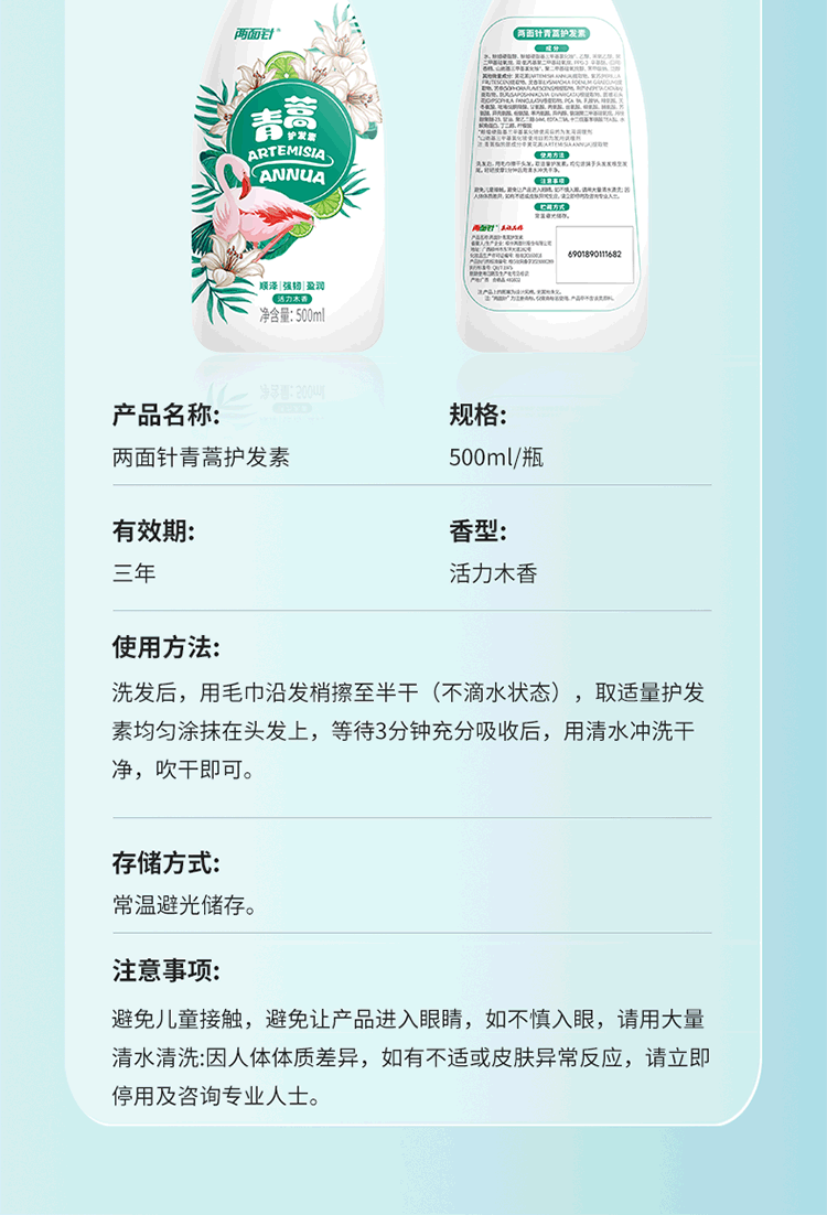 两面针(LMZ)青蒿植物精粹护发素500ml 顺滑毛糙 改善受损强韧发丝 柔顺秀发