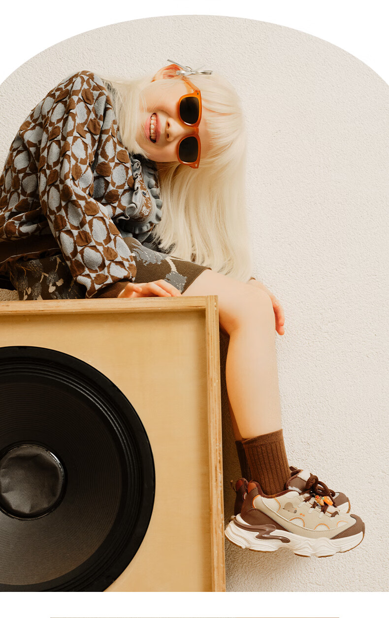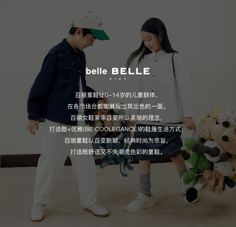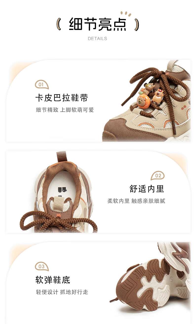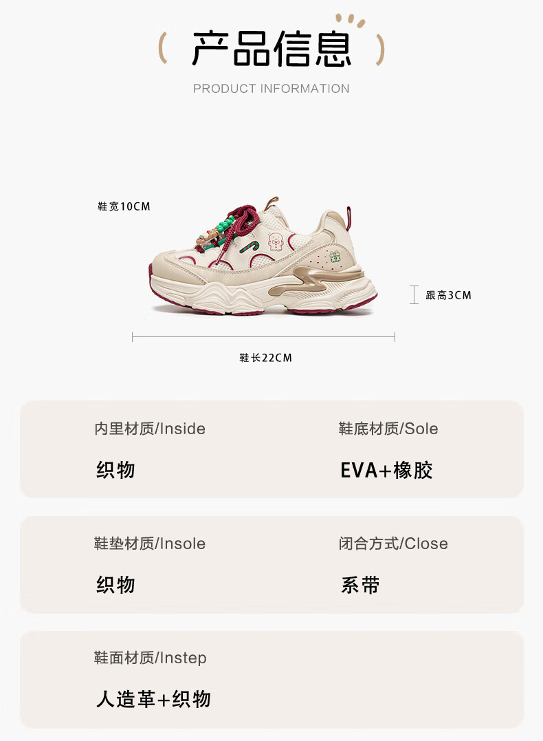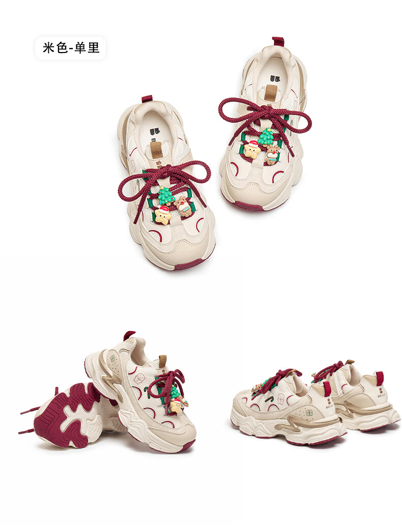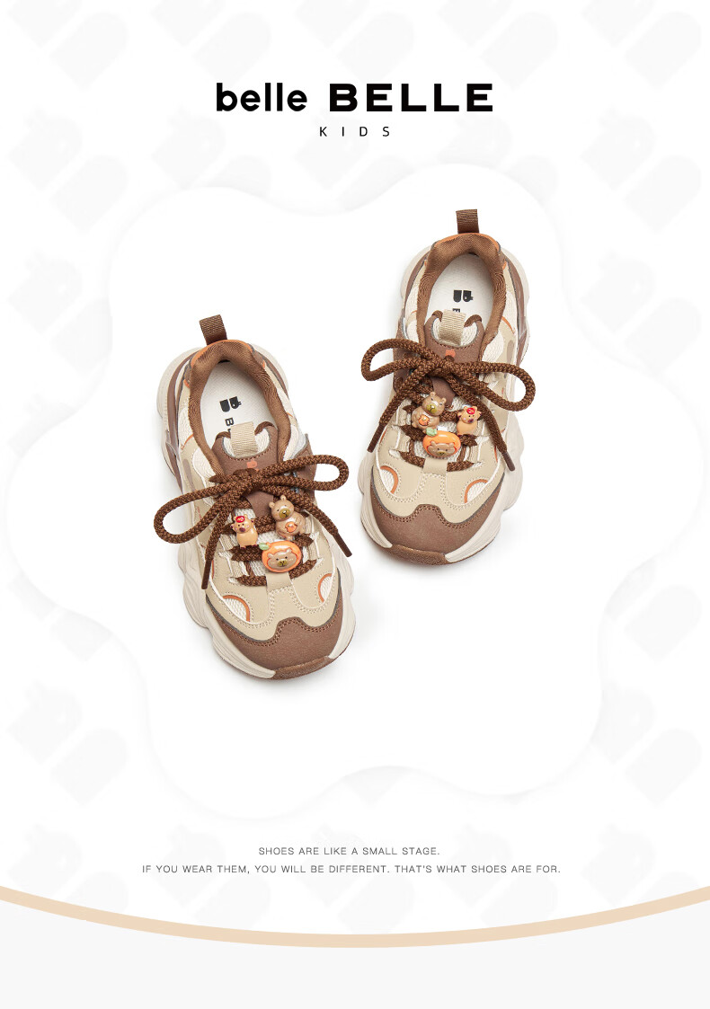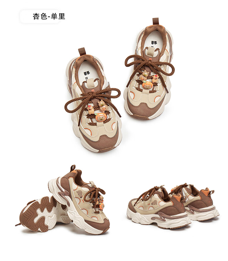 百丽(Belle)时尚撞色厚底老爹鞋女童2025冬新商场同款童趣休闲鞋50603D85 米色-单里 30