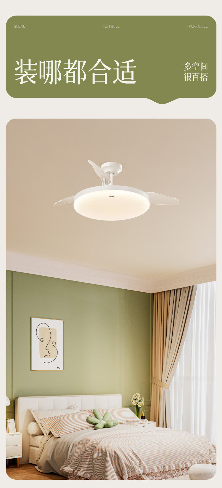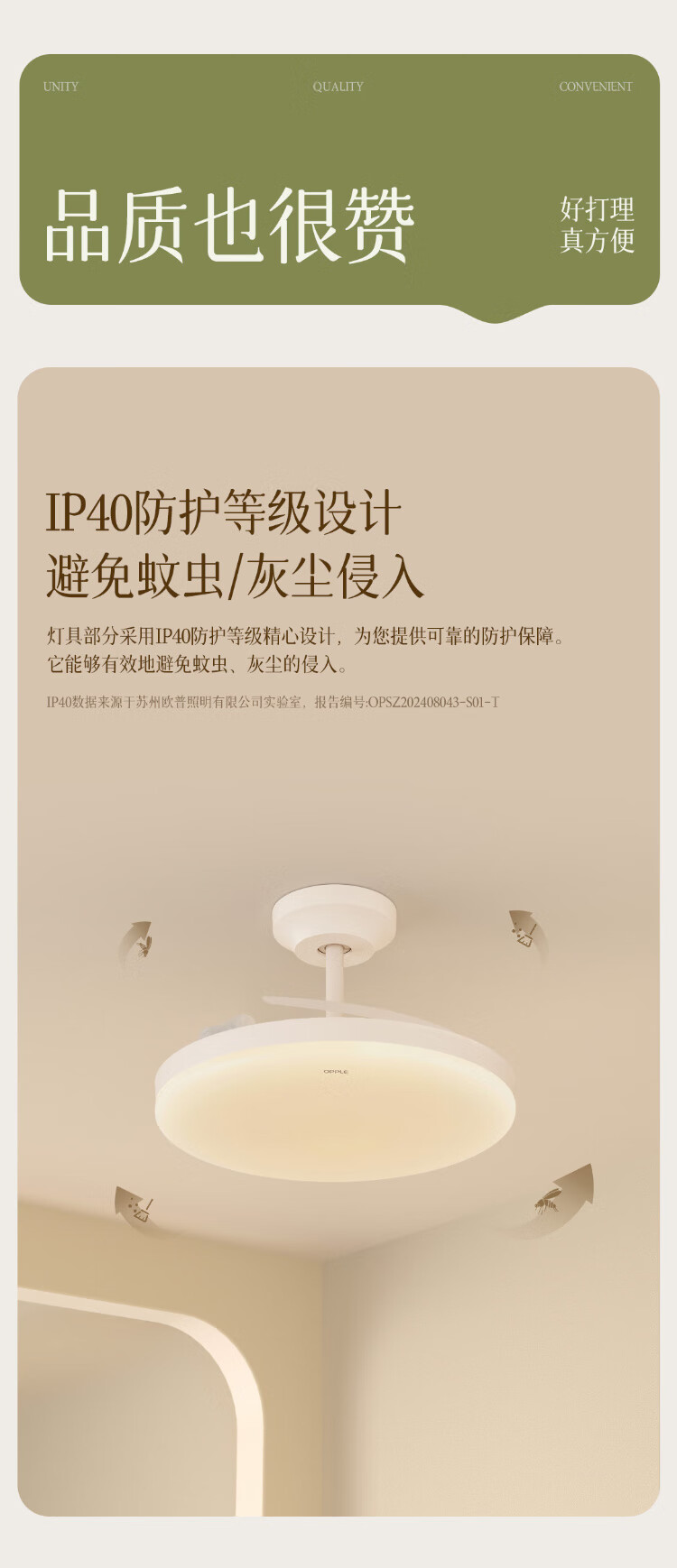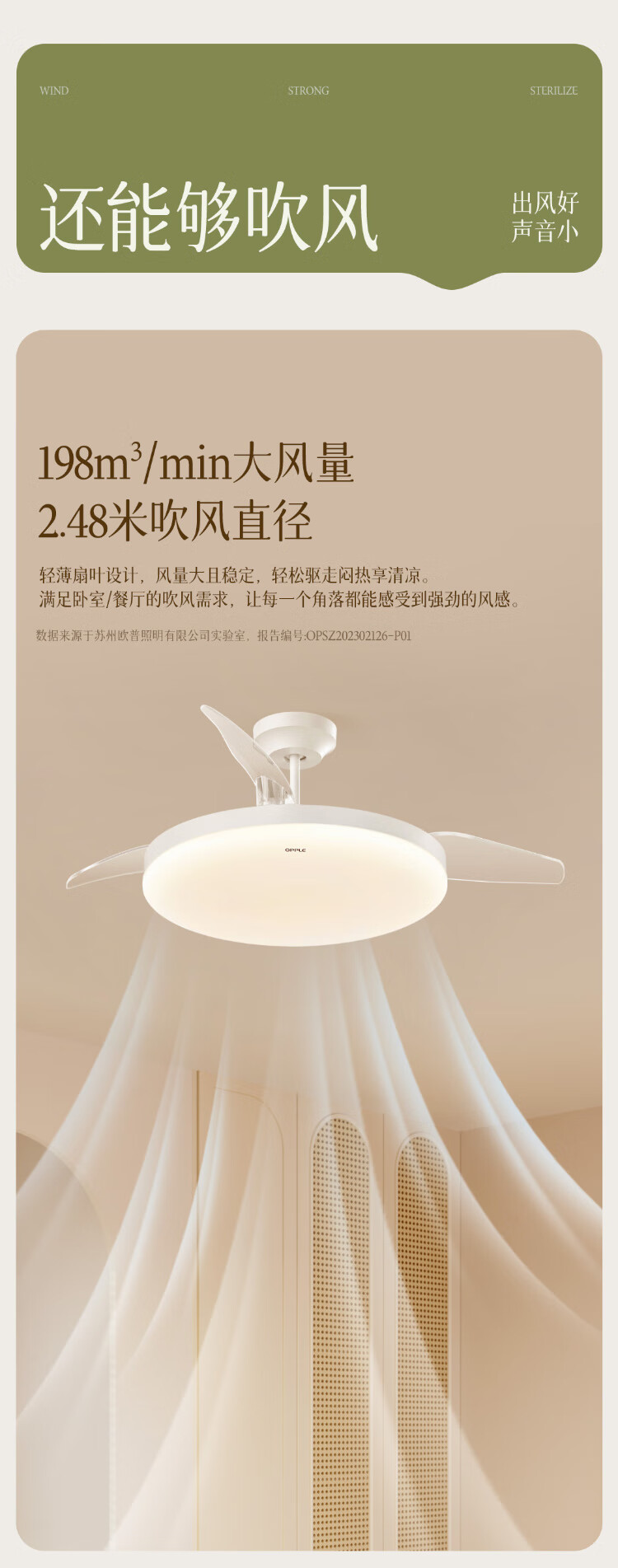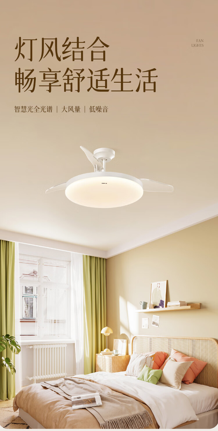 欧普照明(OPPLE)风扇灯吊扇灯多档调色LED照明Ra95北欧餐厅卧室吊灯品风白 包安装