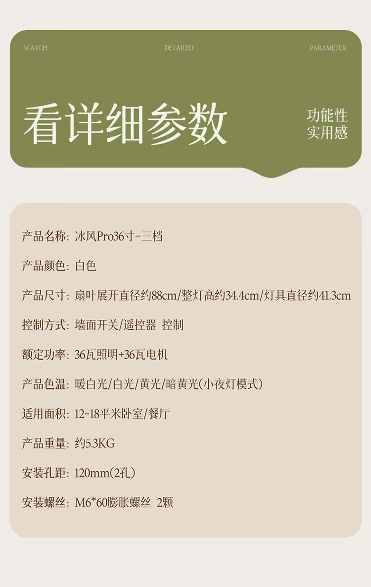 欧普照明(OPPLE)全光谱36寸风扇灯遥控LEDRa98餐厅卧室吊灯冰风白1级能效 包安装