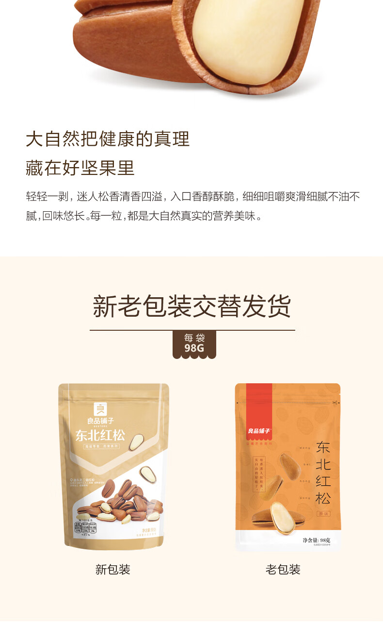 良品铺子东北红松98g 手剥开口松子每日坚果干果特产休闲食品零食小吃