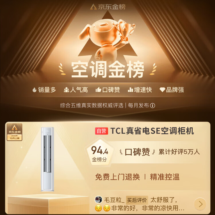 TCL空调京东联名真省电SE大2匹新一级能效变频柜机纯铜管立式柜式节能客厅KFR-51LW/JD21+B1国家补贴