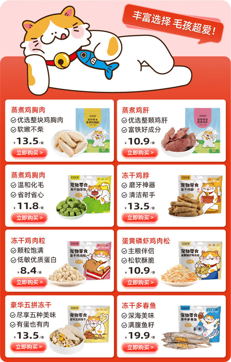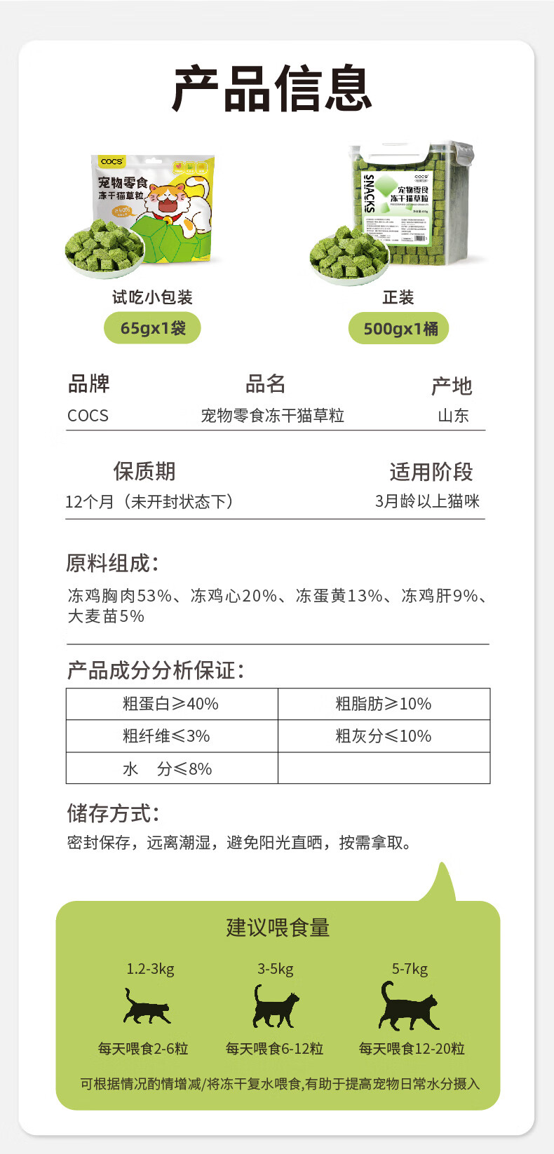 COCS猫草冻干化毛排毛猫草粒猫草排毛化毛冻干鸡肉毛球克星猫草65g