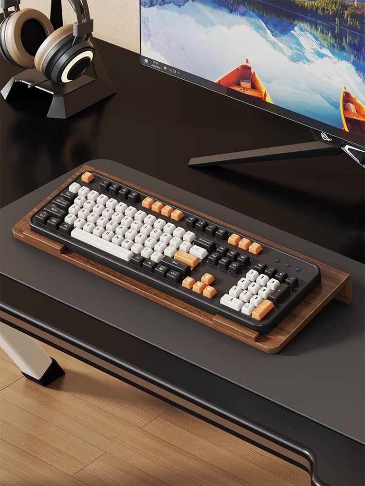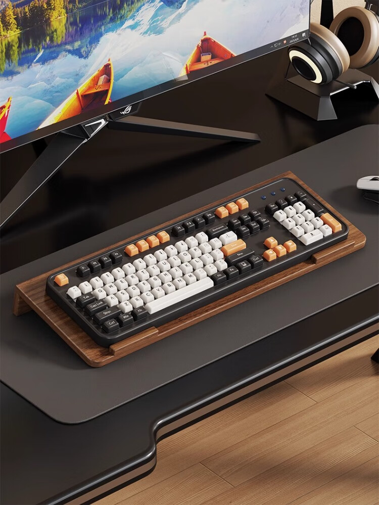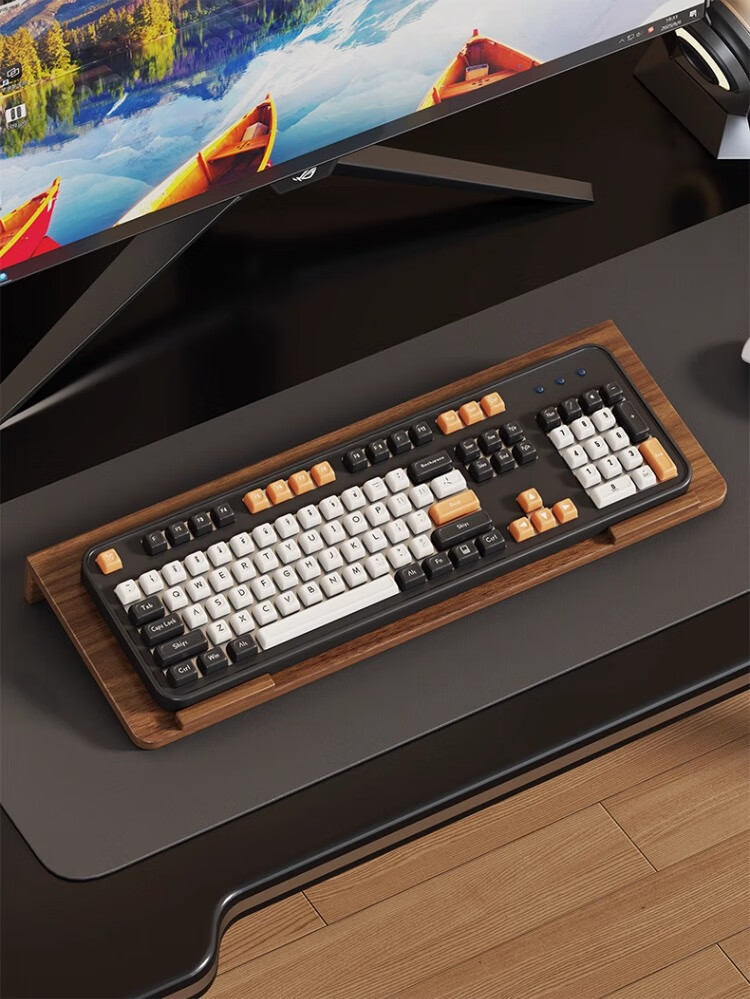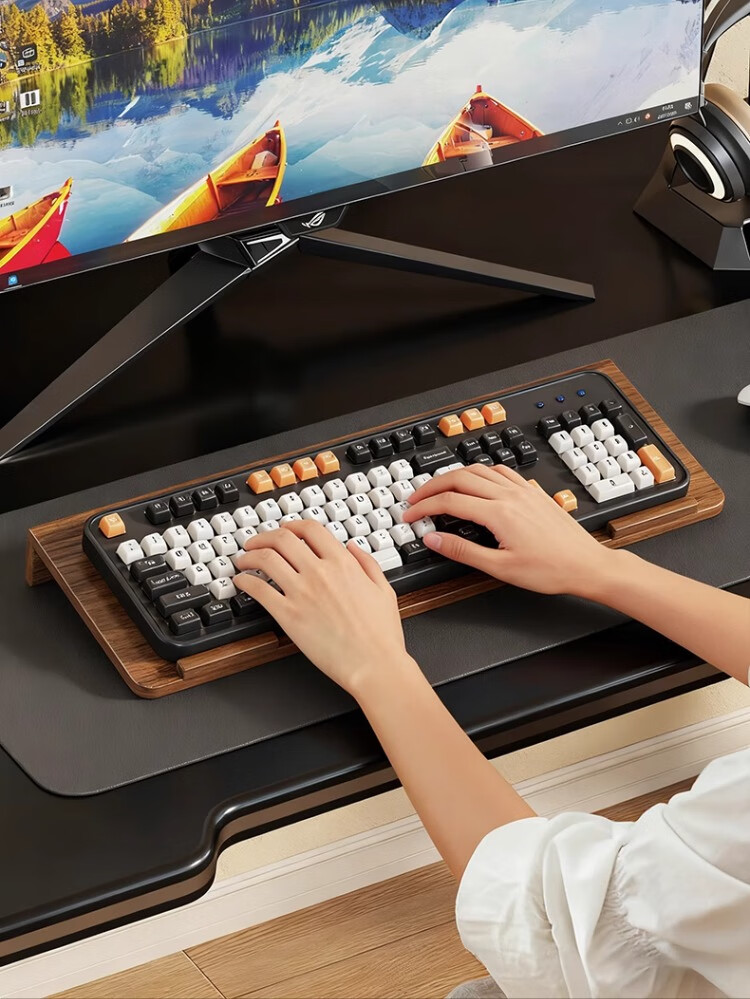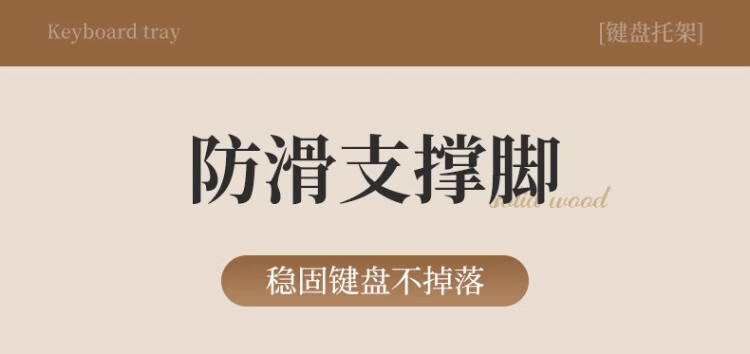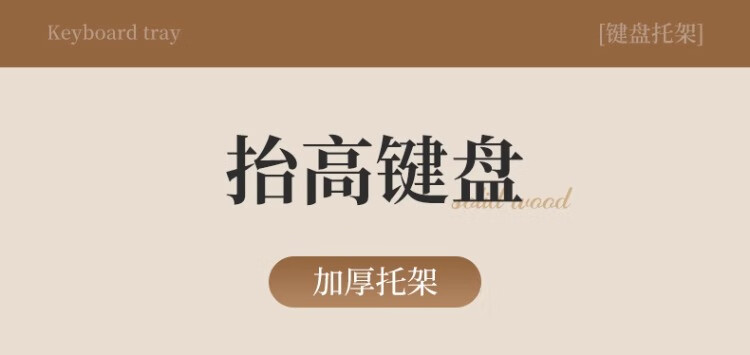 尔思家键盘托架增高支架办公室电脑倾斜桌面机械键盘垫电脑配件置物架 胡桃色小号【进口实木】