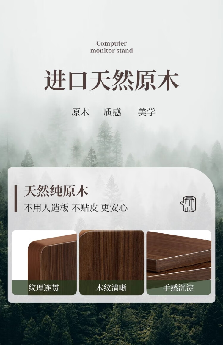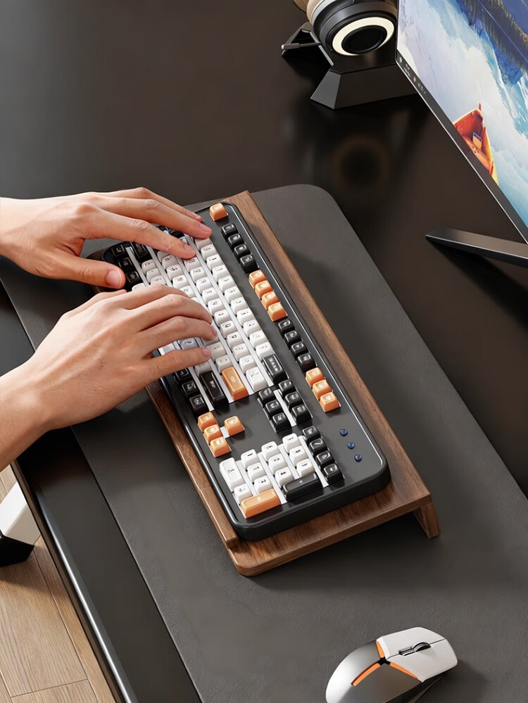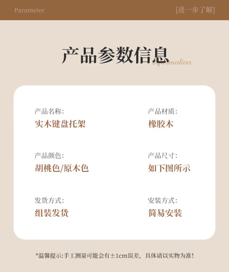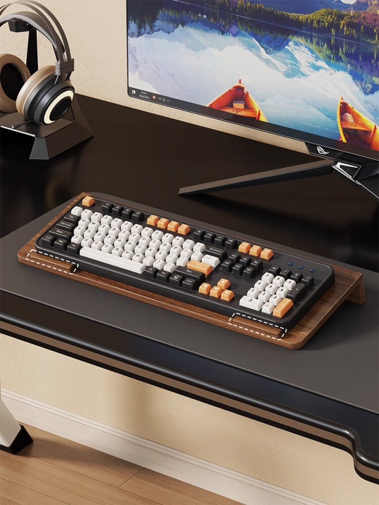 尔思家键盘托架增高支架办公室电脑倾斜桌面机械键盘垫电脑配件置物架 胡桃色小号【进口实木】