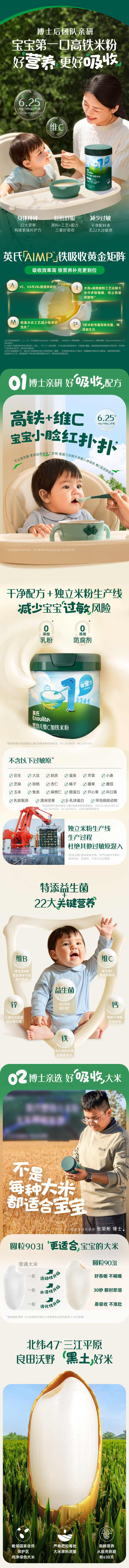 英氏米粉罐装套组婴幼儿高铁米粉6-12个月辅食宝宝营养米糊 1阶6月+第一口选维C加铁 258g*1罐