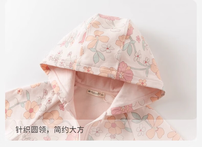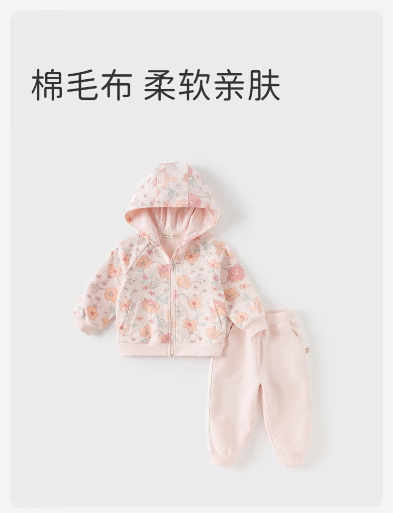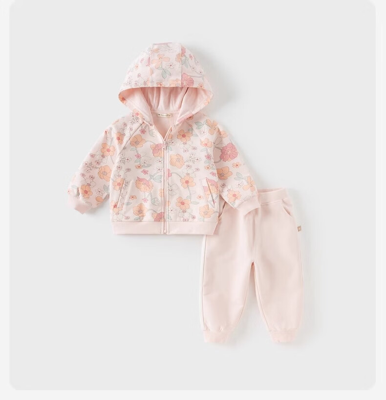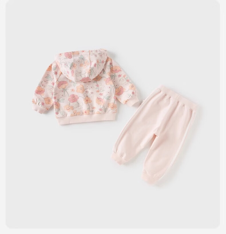 戴维贝拉儿童长裤套装秋装女童印花长袖连帽衫裤子两件套