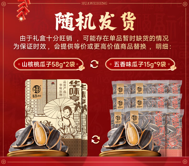 华味亨 1500g多口味葵瓜子 袋装瓜子3斤 坚果炒货葵花籽大颗粒香瓜子 500g焦糖味瓜子*3斤