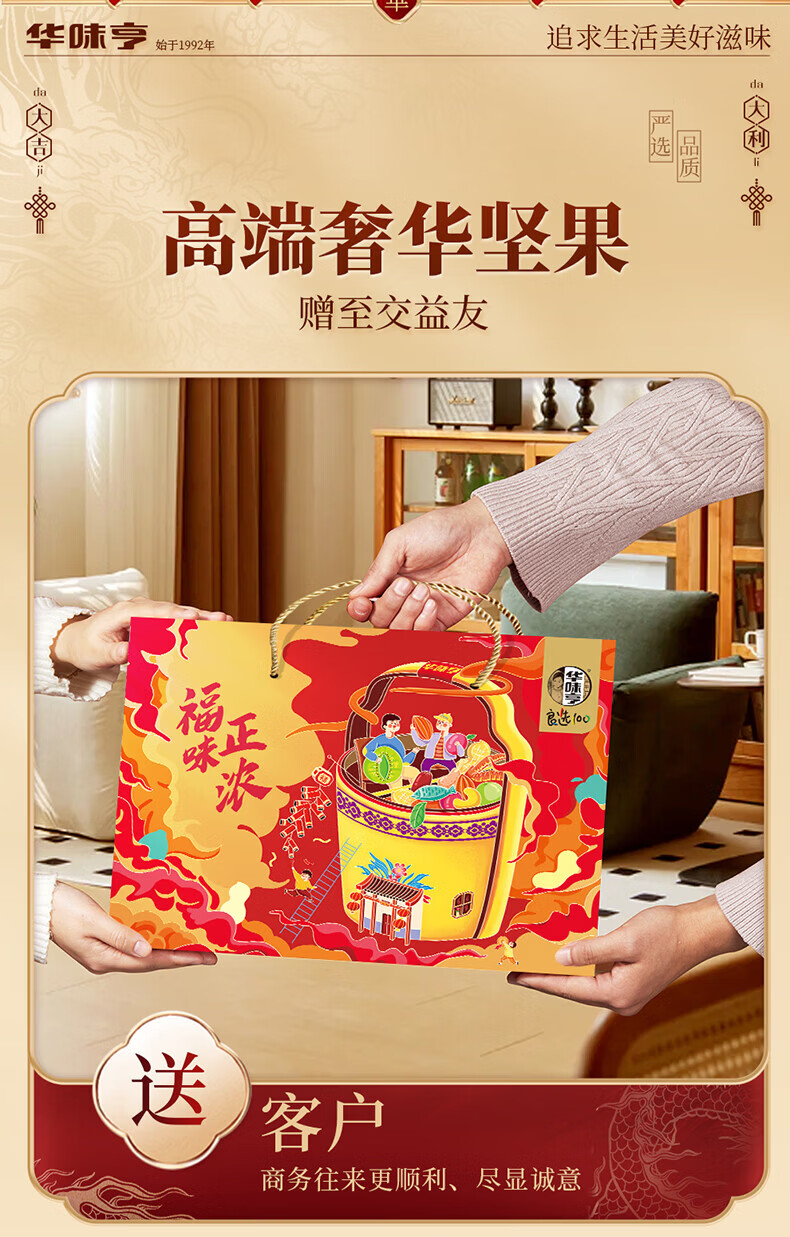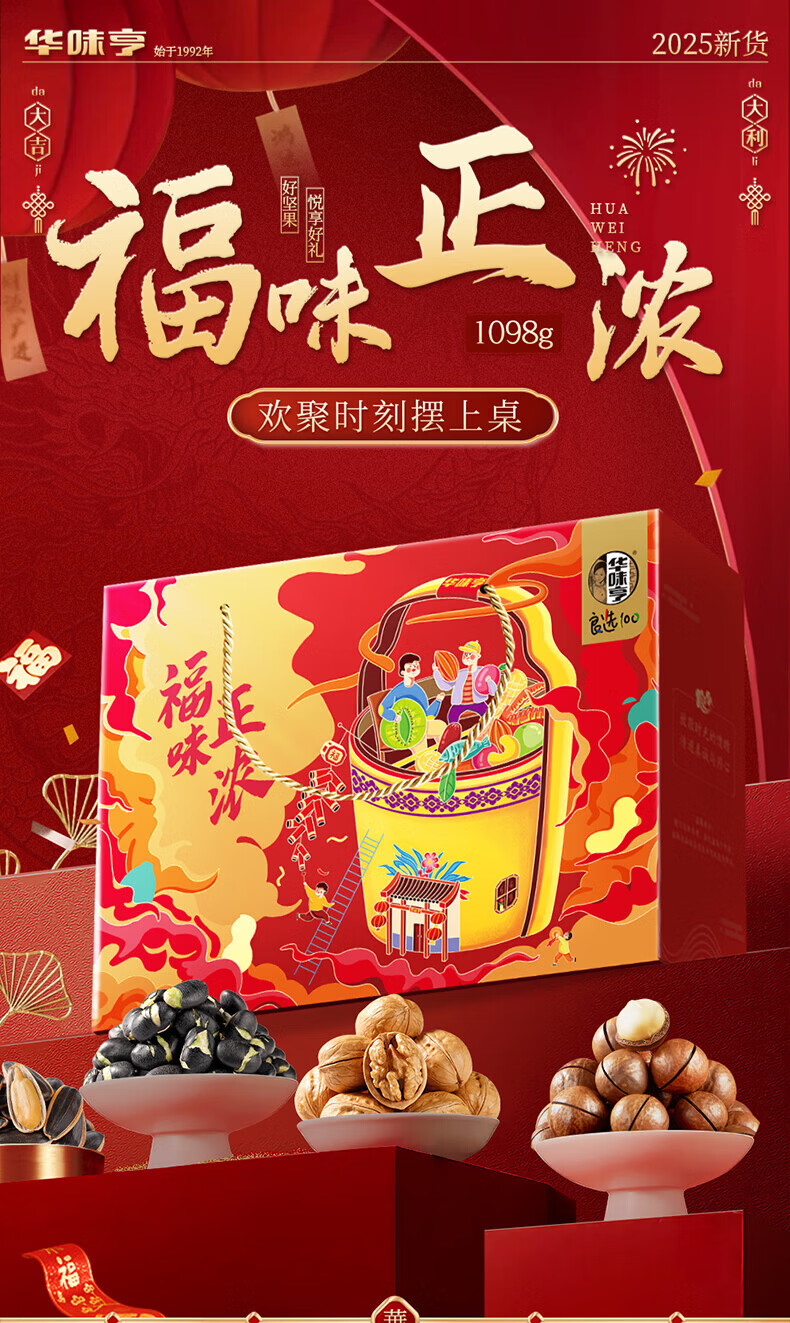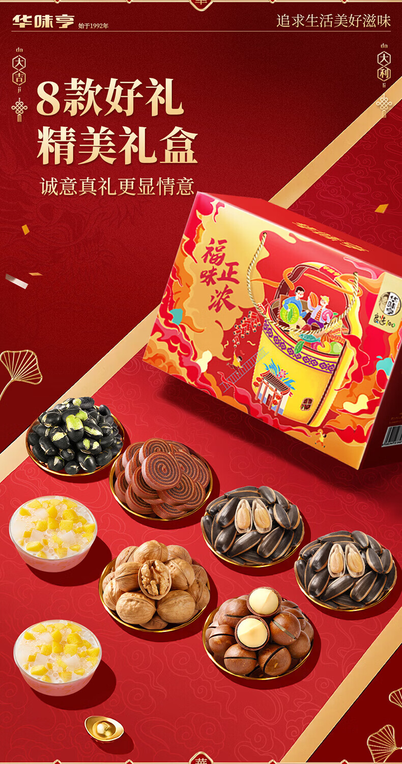 华味亨坚果礼盒1098g 团购送礼坚果炒货夏威夷果核桃仁休闲零食 【共8款】1098g礼盒