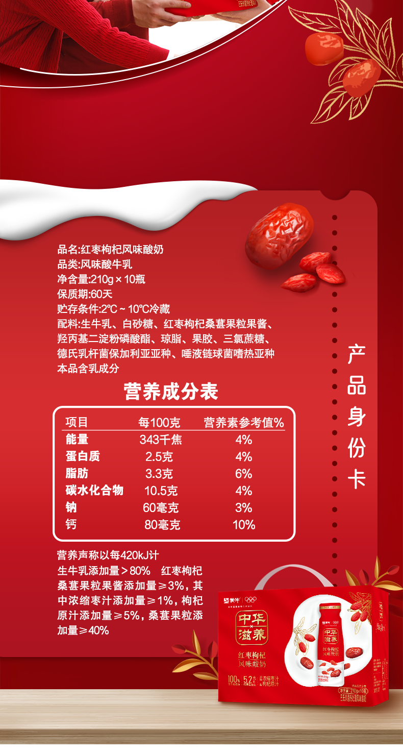 蒙牛(MENGNIU)中华滋养红枣枸杞风味酸牛奶 210g*10瓶 酸奶礼盒装