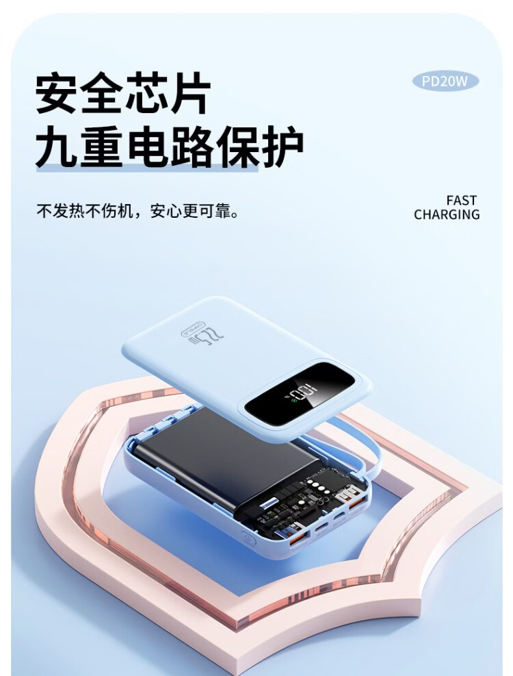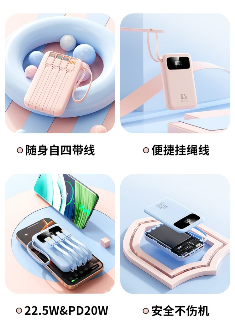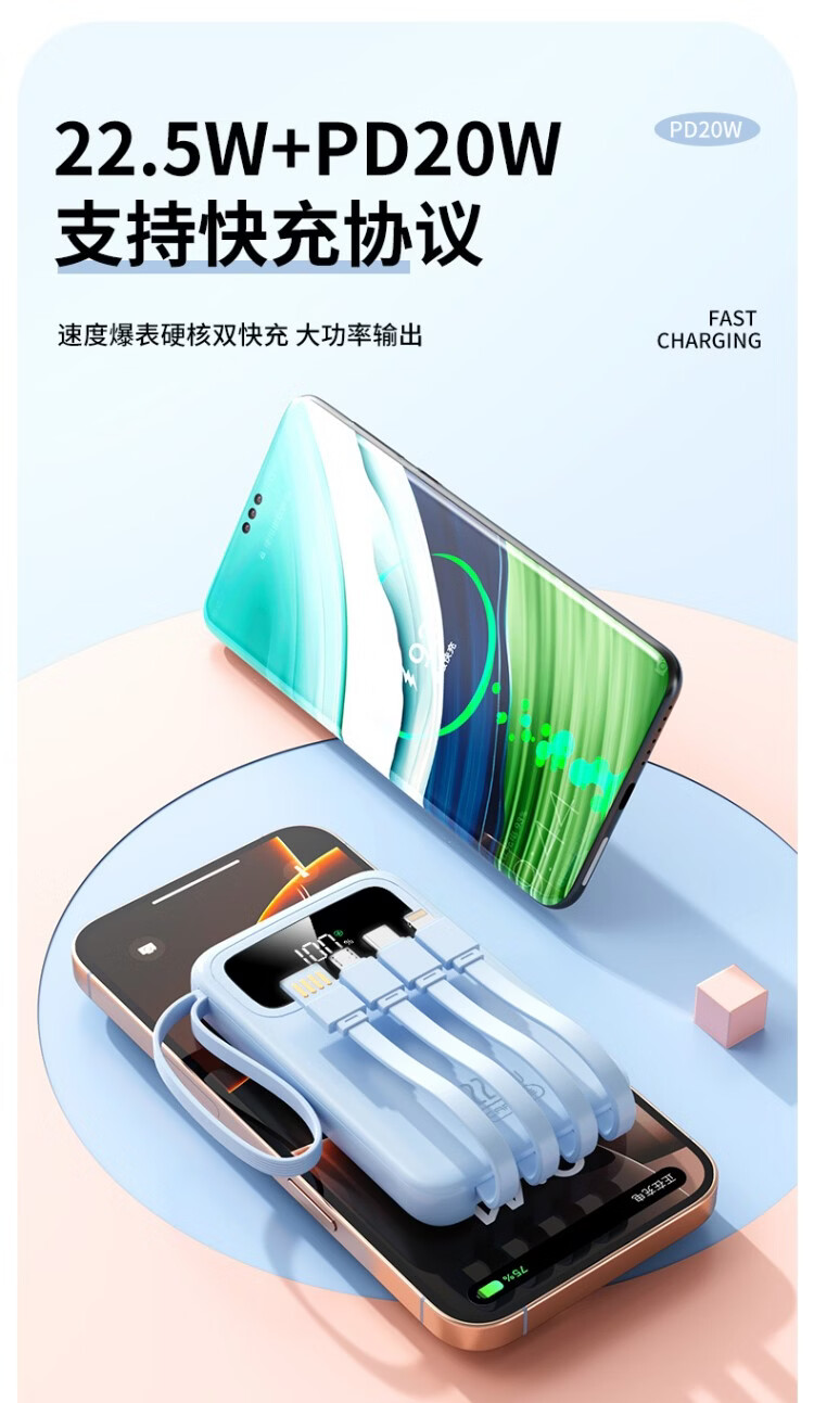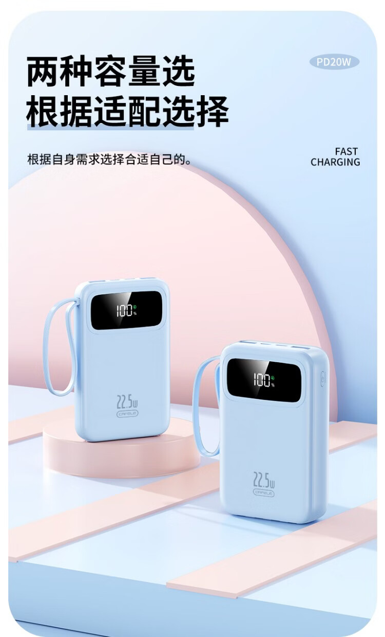 卡斐乐充电宝3C认证可上飞机20000毫安超大容量22.5W超级快充自带四线小巧便携适用安卓小米苹果VIVO 曜夜黑【至臻版|超级快充】提速999% 20000毫安【自带4线|国家3C认证】